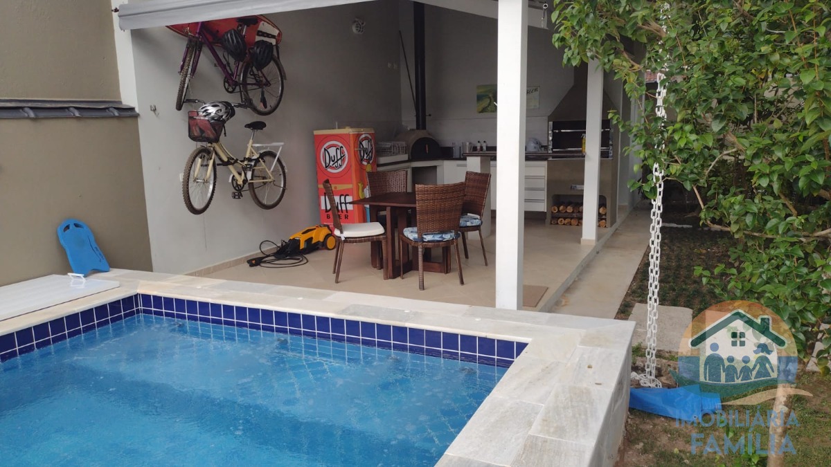 PARTE INFERIOR: Sala de estar, jantar, cozinha, dispensa ( cômodos com pé direito duplo) , banheiro social, garagem, duas suítes ( 1 com closet), área gourmet completa, integrada á uma espetacular piscina, além de garagem para quatro automóveis ( dois cobertos)