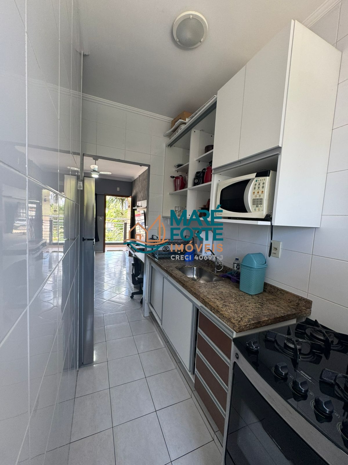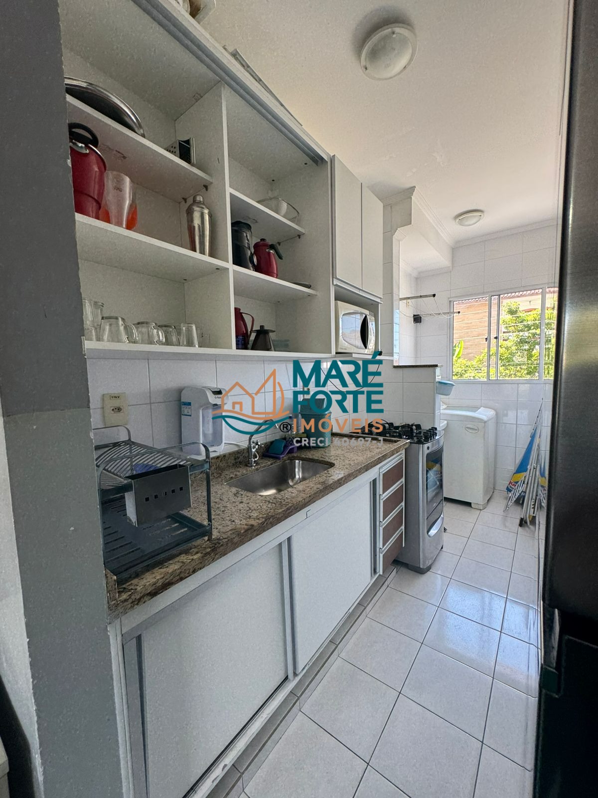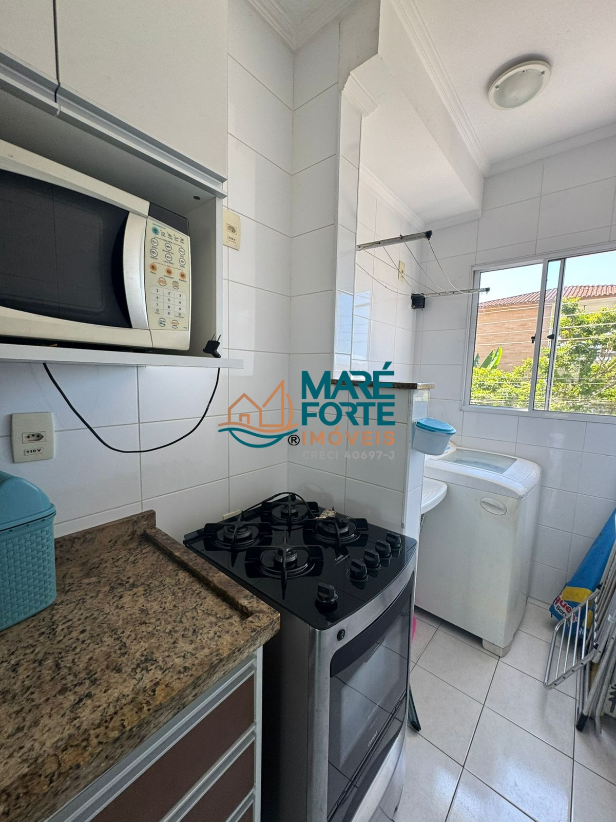 A cozinha é prática e funcional, e a área de serviço é bem distribuída.