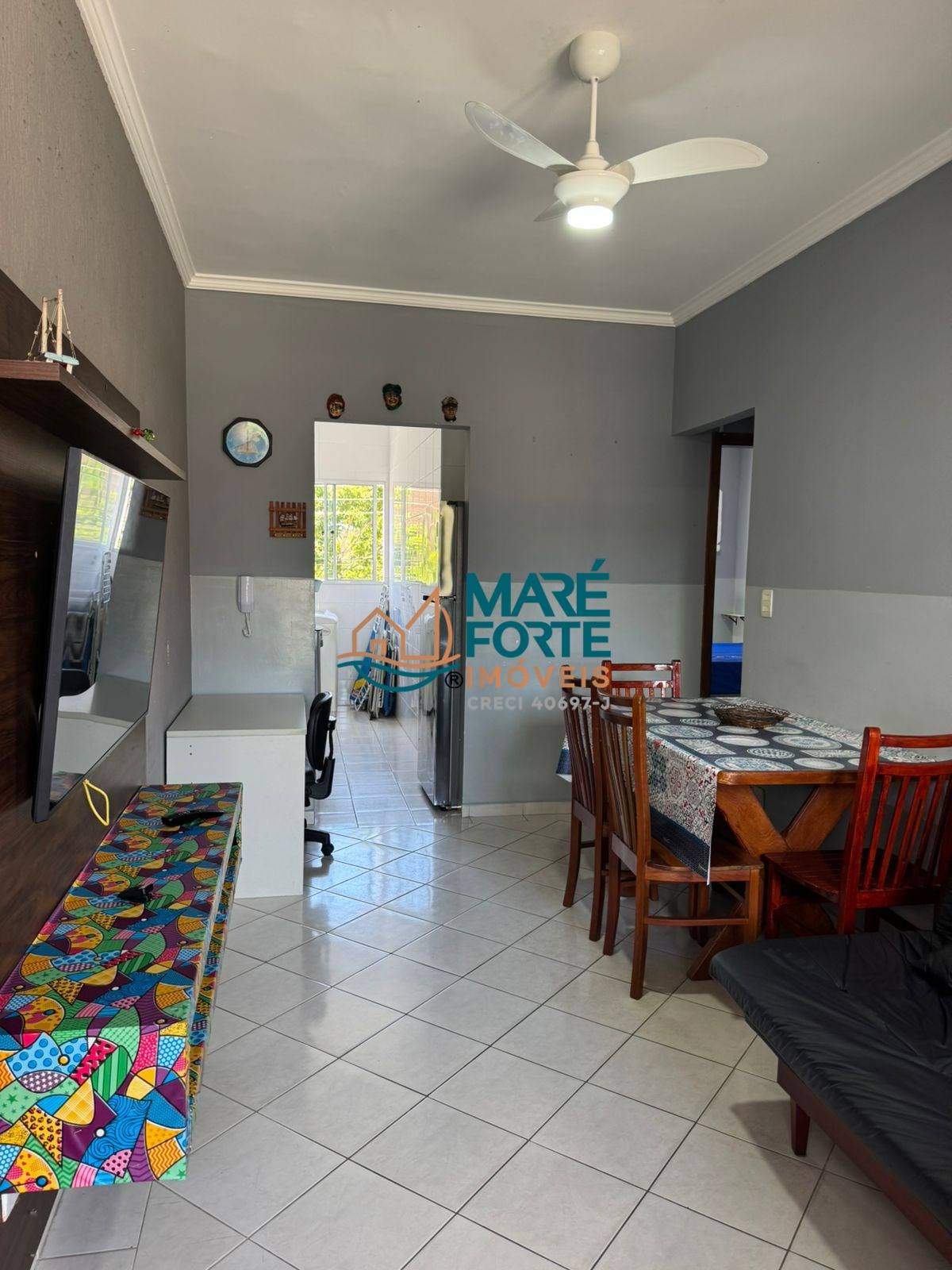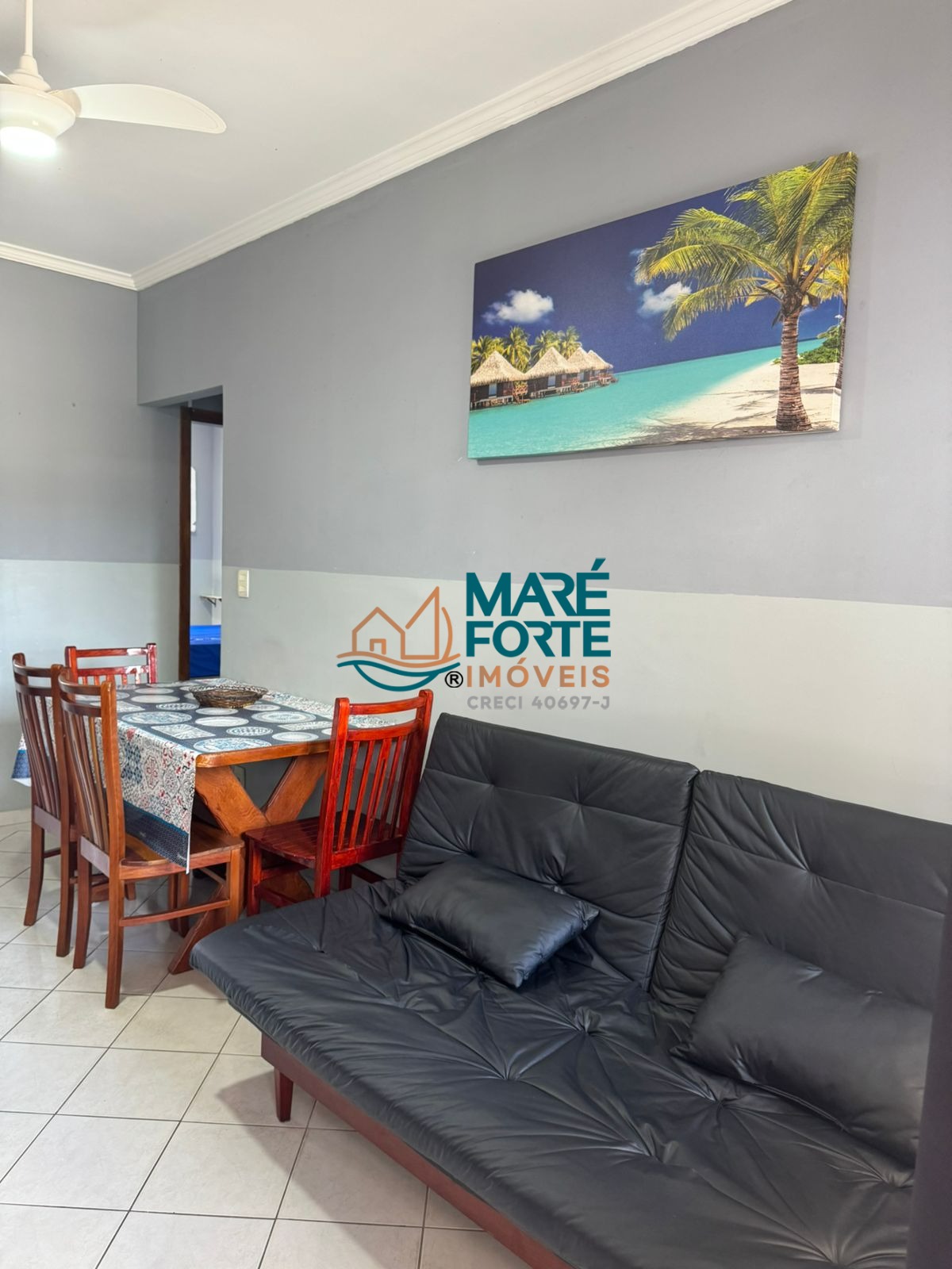 O imóvel é mobiliado e possui armário na cozinha, além de ventilador e ar condicionado, garantindo conforto em todas as estações.