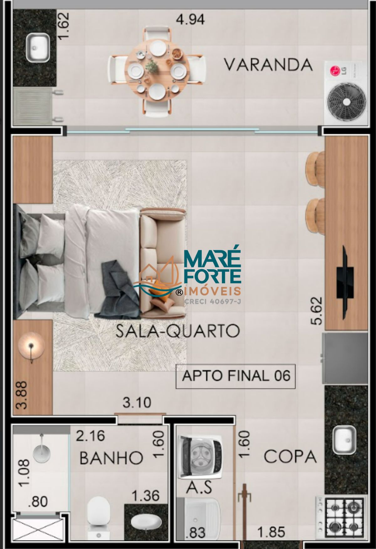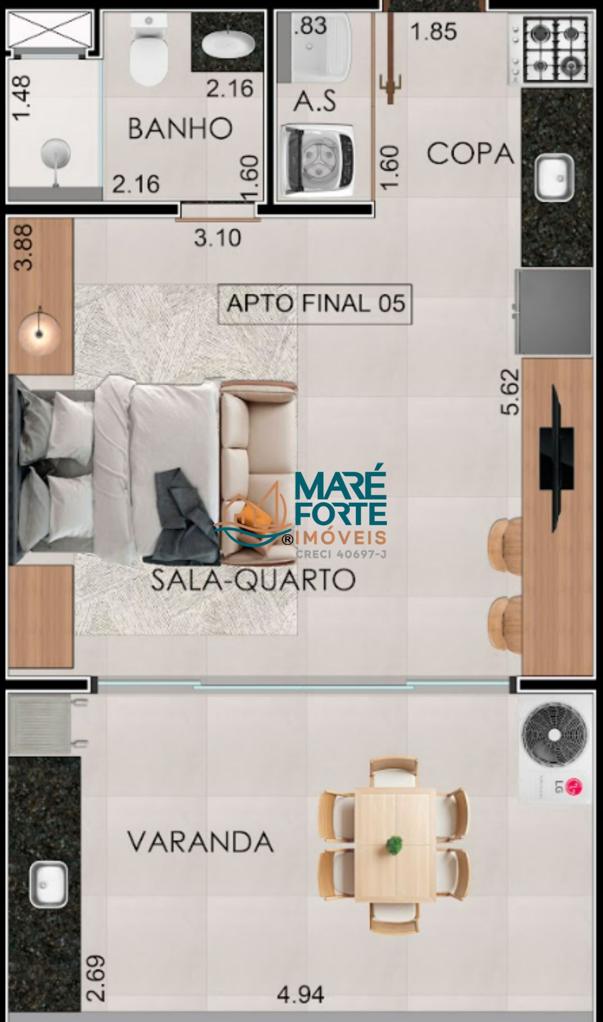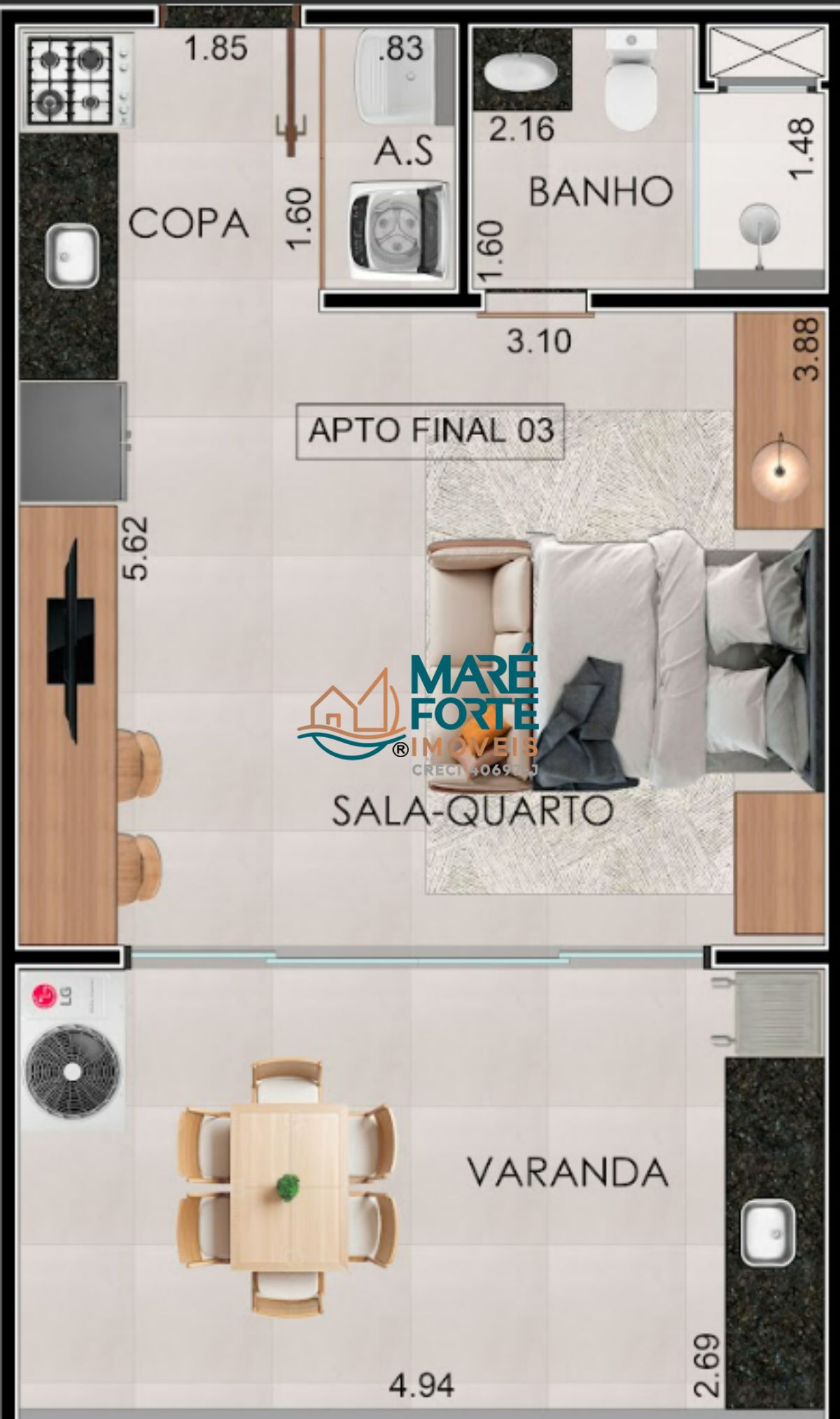 Studios: 37m², 47m² e 53m²