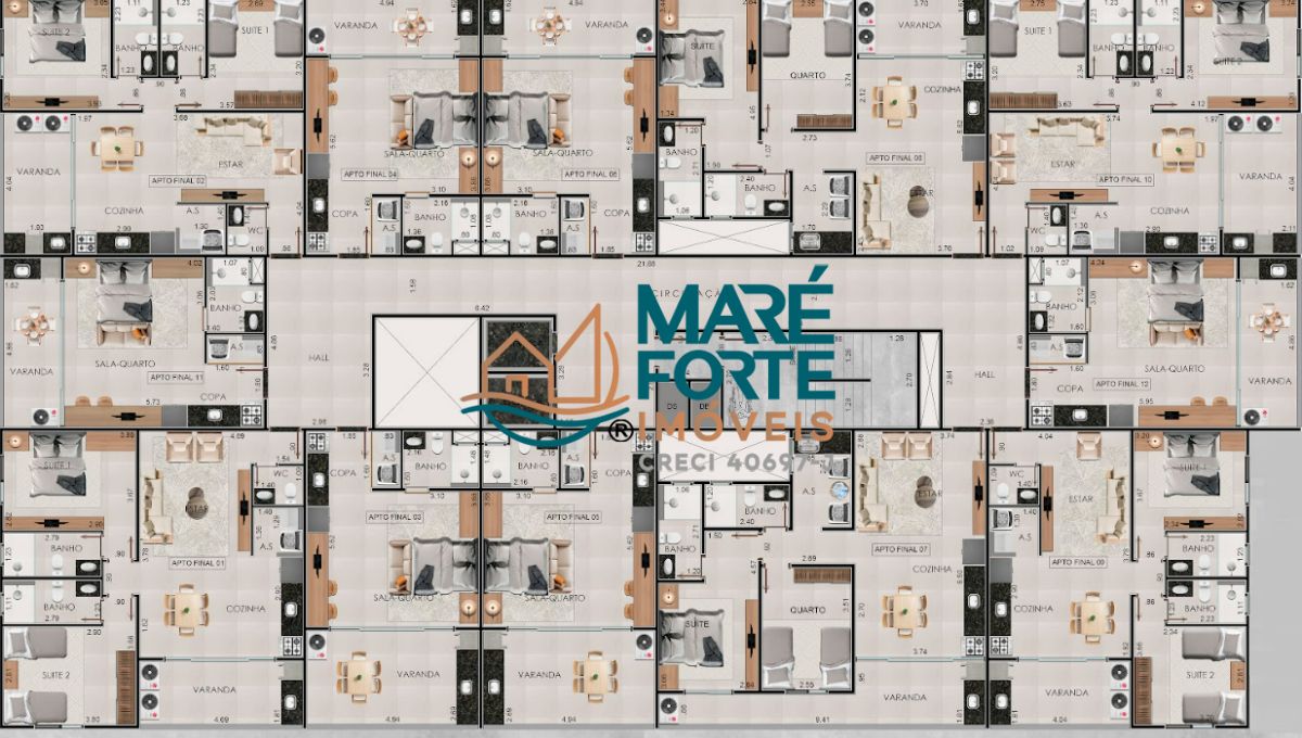 Apartamento tipo final 1, 2, 9 e 10: 76m²,66m², 65m² e 69m²