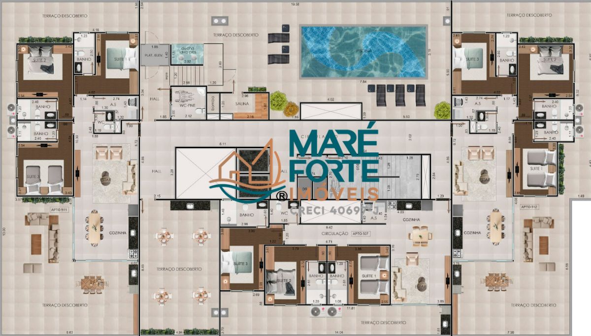 Coberturas: 188m², 123m² e 181m²