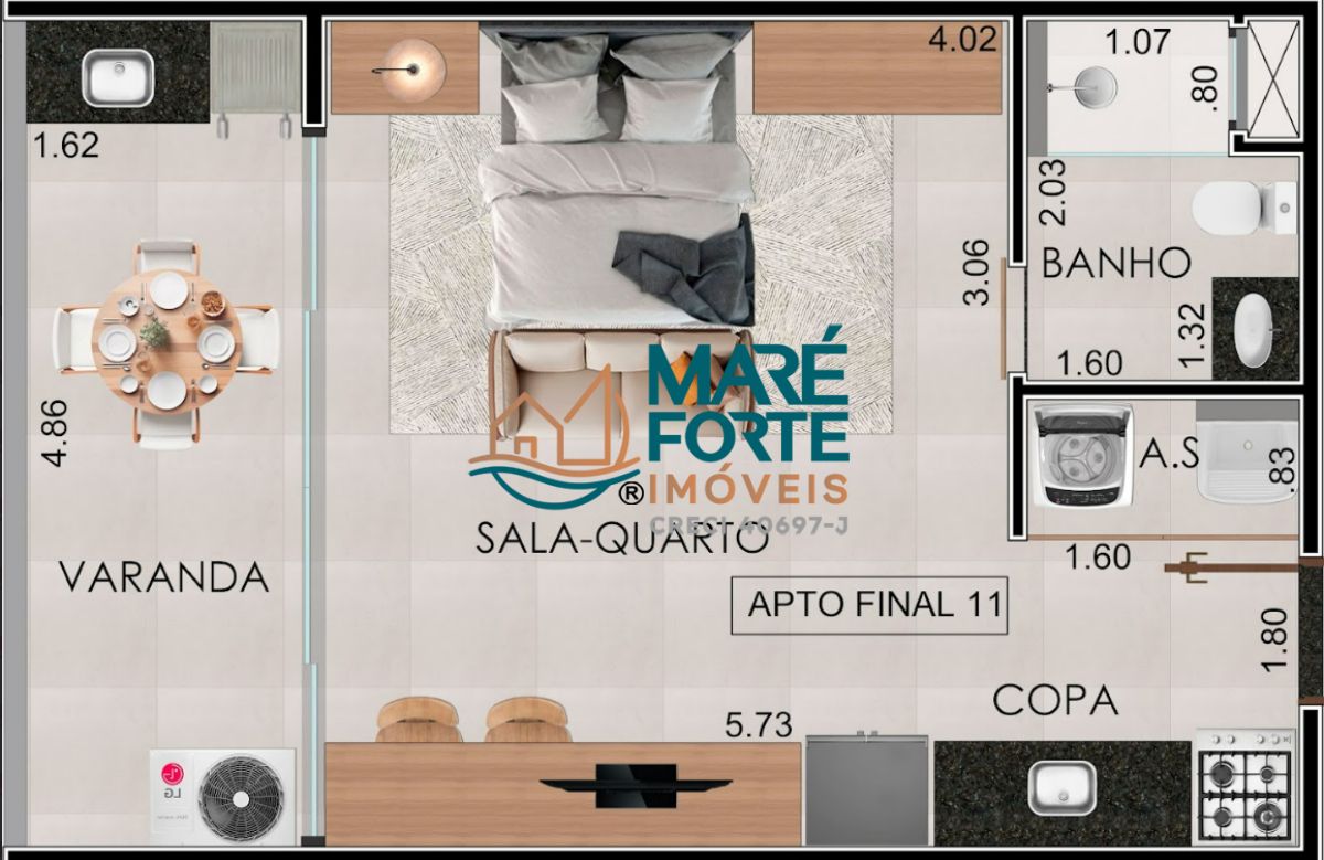 planta integrada com 1 banheiro