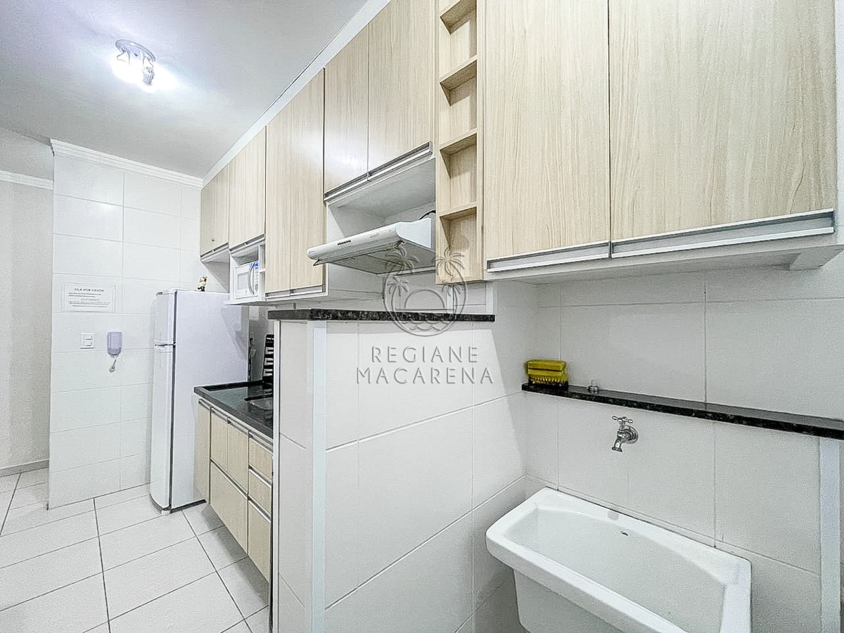 O condomínio oferece zeladoria, elevador e piscina, além de estar a poucos passos da praia e próximo a comércios em geral, como supermercados, restaurantes e lojas. Com 1 vaga de garagem.