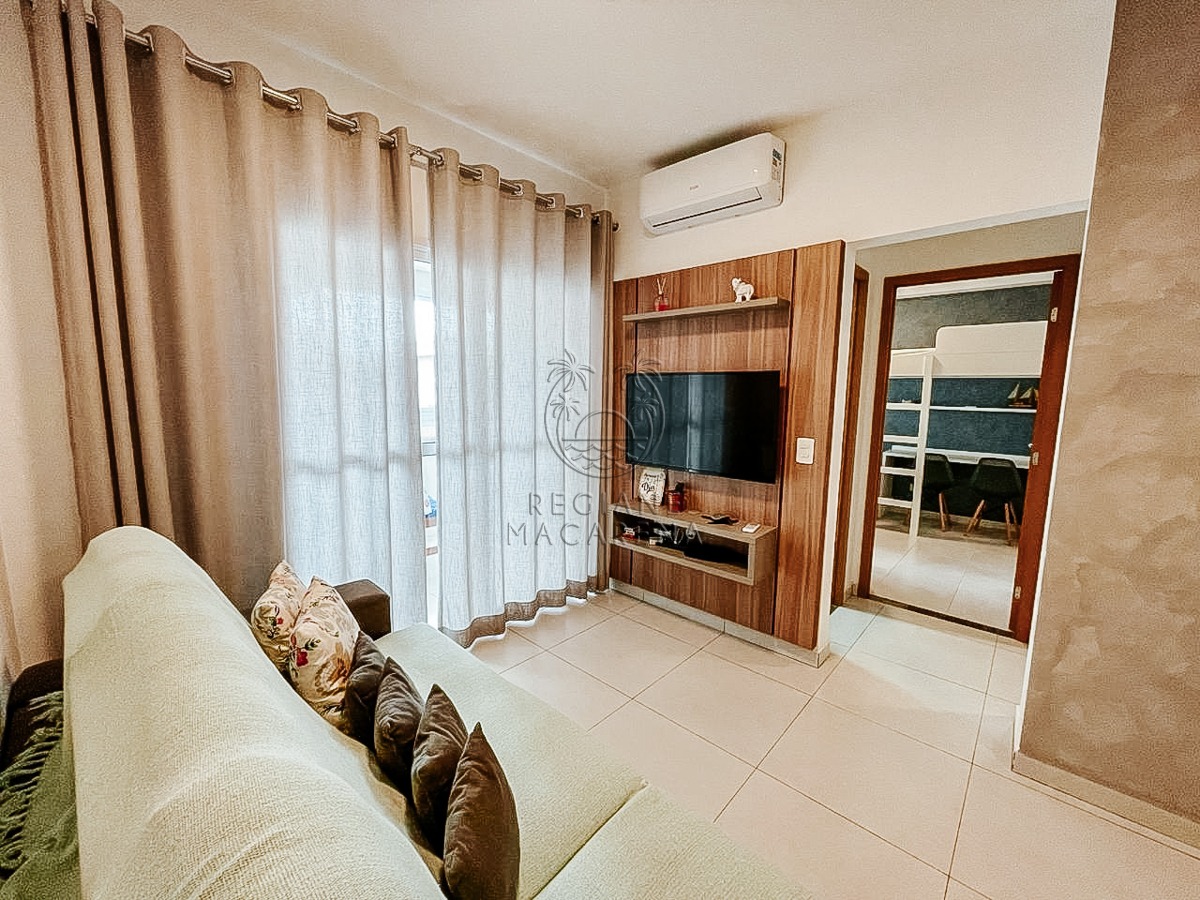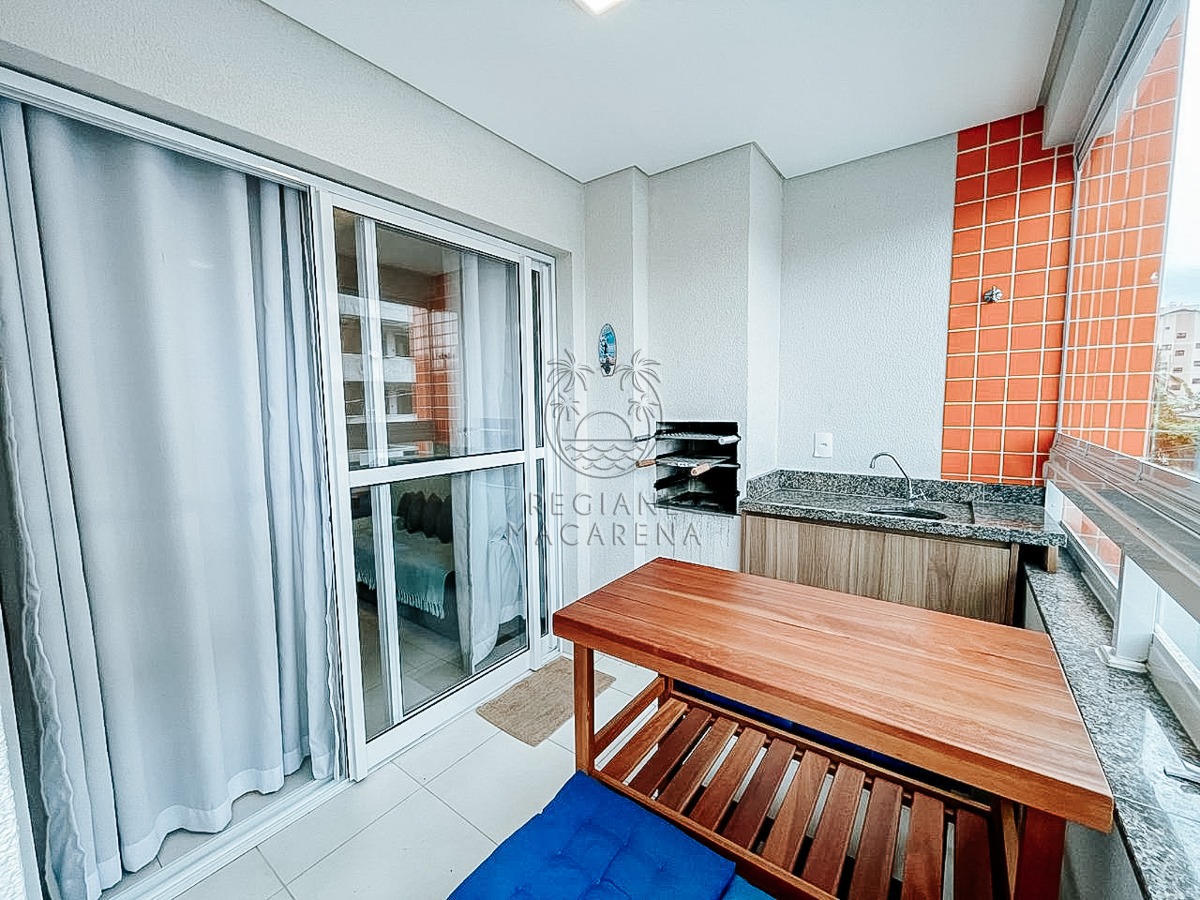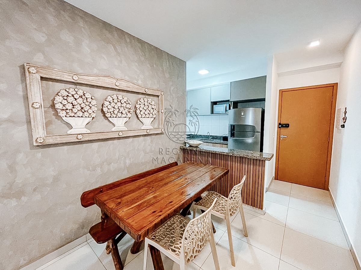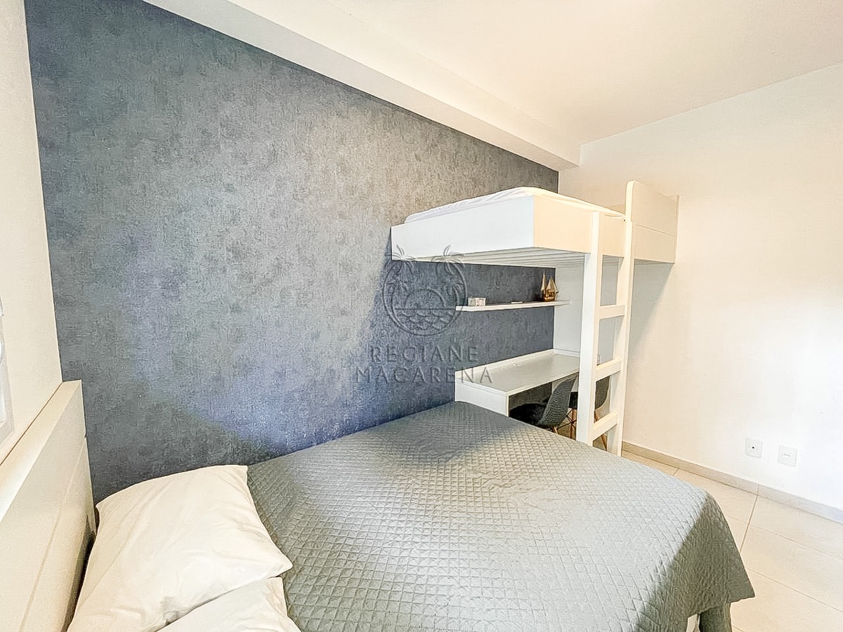 O apartamento possui móveis planejados de alta qualidade e ar condicionado, garantindo conforto térmico em todas as estações. A unidade entrega uma atmosfera leve e luminosa, ideal para quem busca um refúgio à beira-mar.