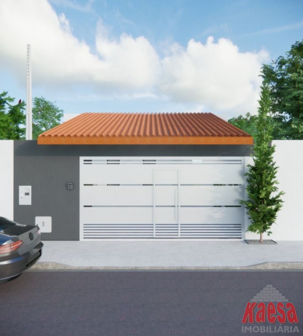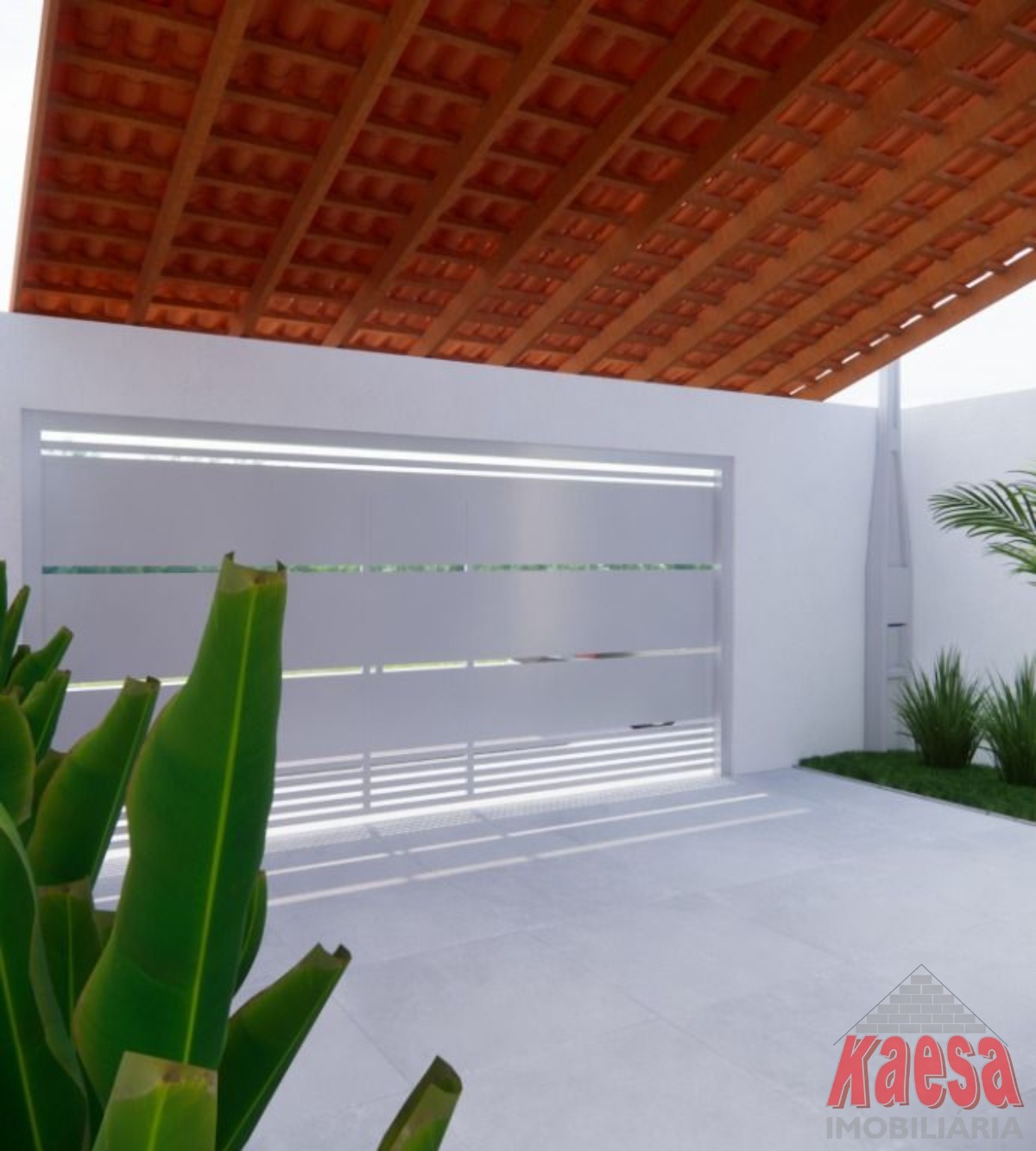 Garagem ampla e coberta Portão basculante largo