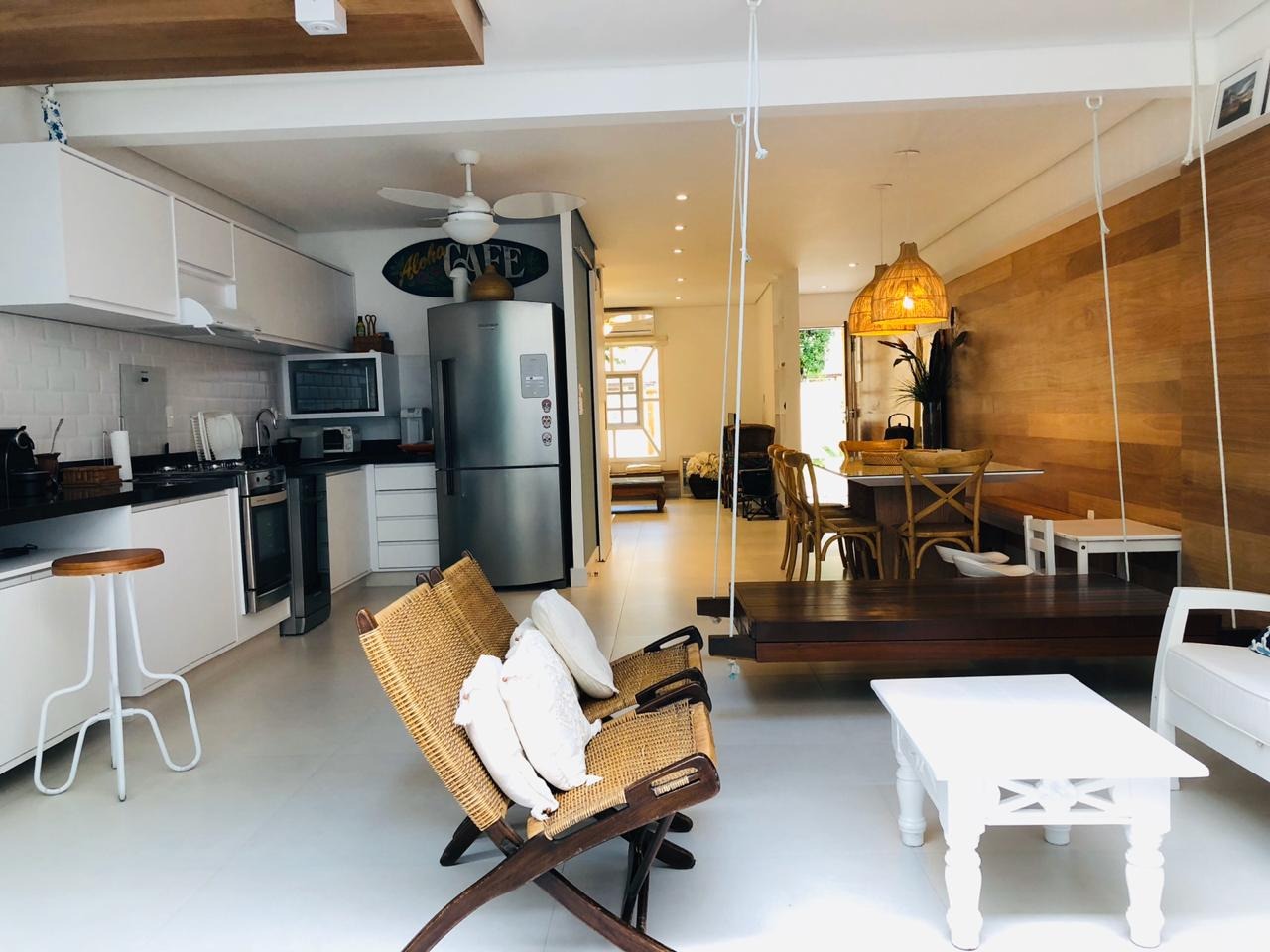 A casa está totalmente reformada e possuí 4 dormitórios, sendo 2 suítes, sala de tv, sala de estar, sala de jantar, cozinha completa e churrasqueira