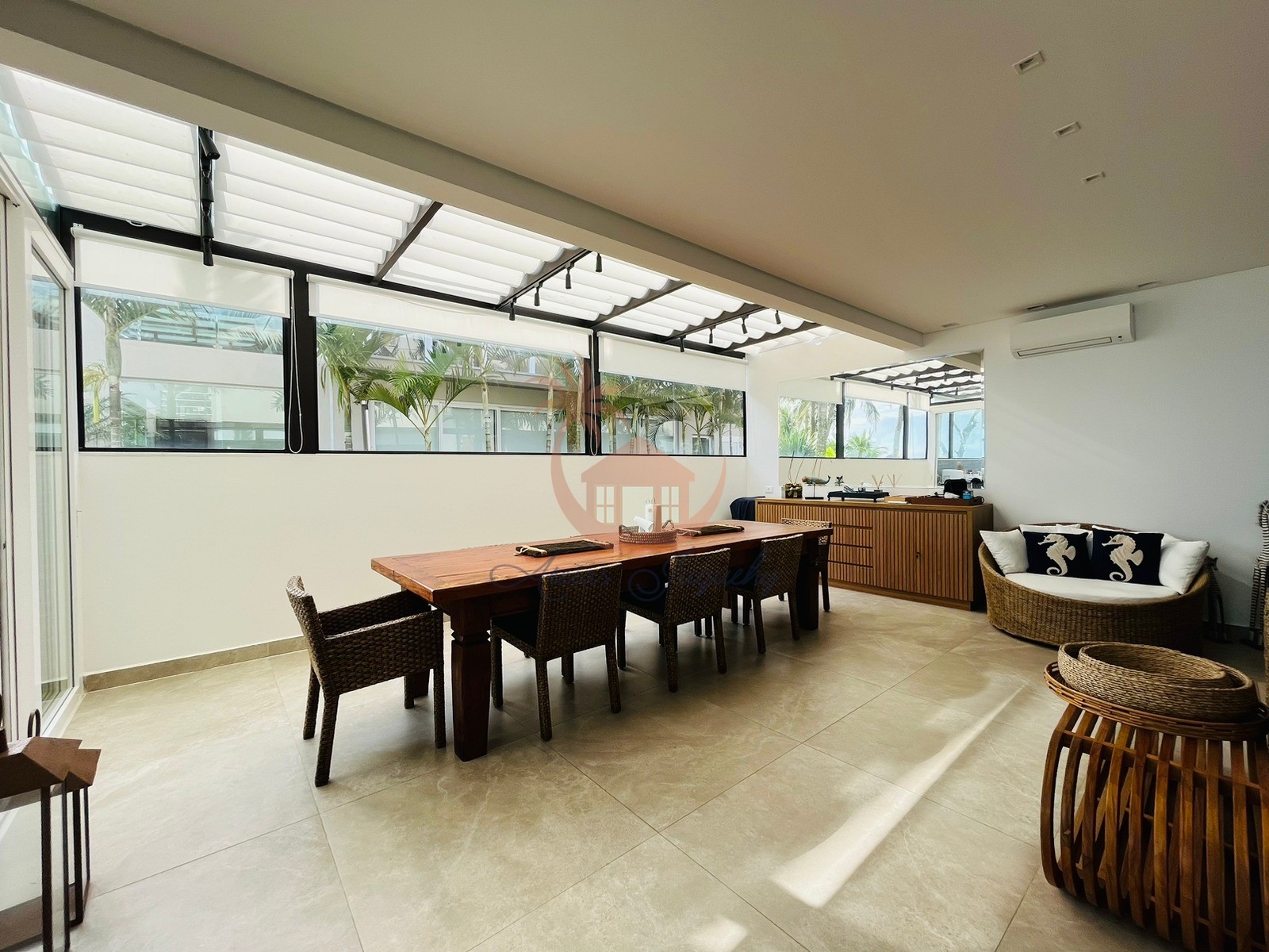 São 437,5m² de área construída, 5 suítes, sala de estar e sala de jantar, cozinha, terraço, spa exclusivo com hidromassagem e vagas de garagem no subsolo para 5 autos.