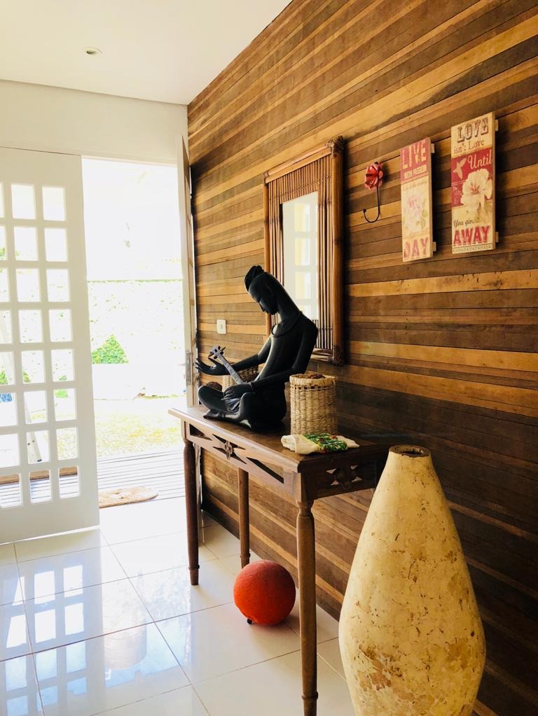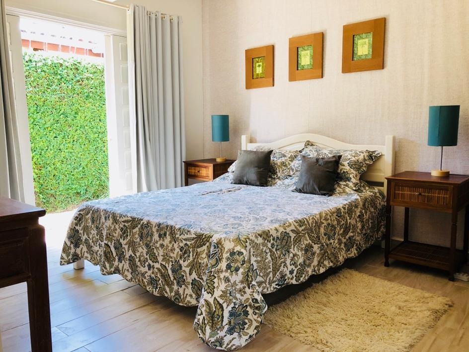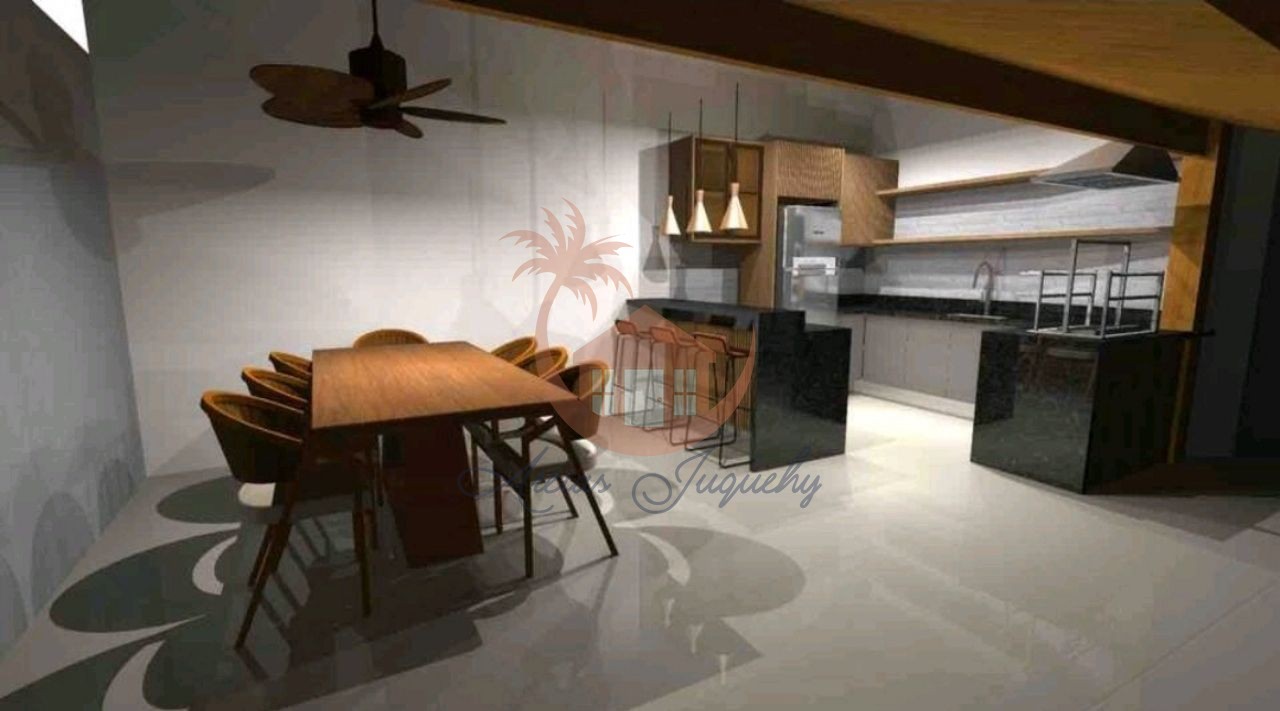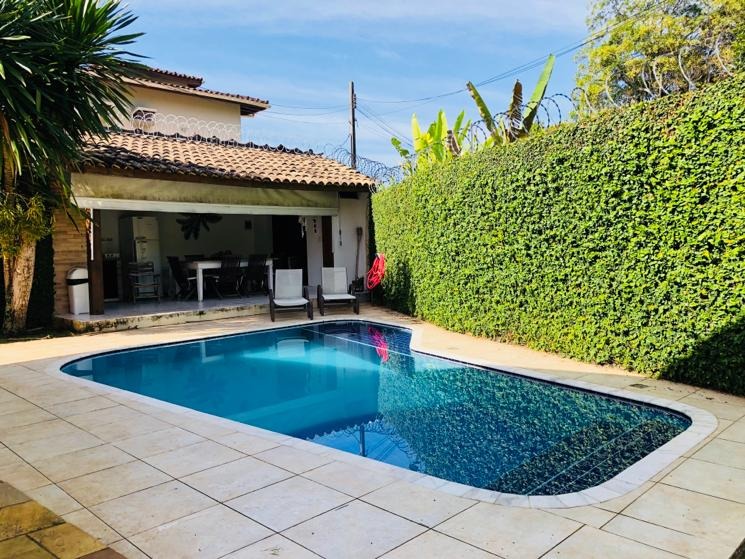 Totalmente térrea, possui 4 suítes, sala de Tv, sala de jantar, cozinha americana, área de churrasqueira e piscina.