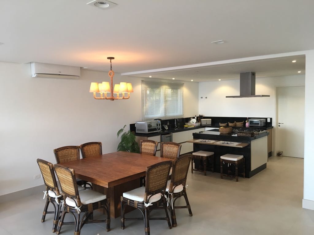 Casa térrea, com vista para o mar, possui 4 suítes, sala jantar e TV integradas com a cozinha e com vista direta para a praia. Oferece Wi-Fi, TV à cabo, churrasqueira e piscina privativa, cozinha bem equipada e lavanderia. Todos os ambientes com ar condicionado.