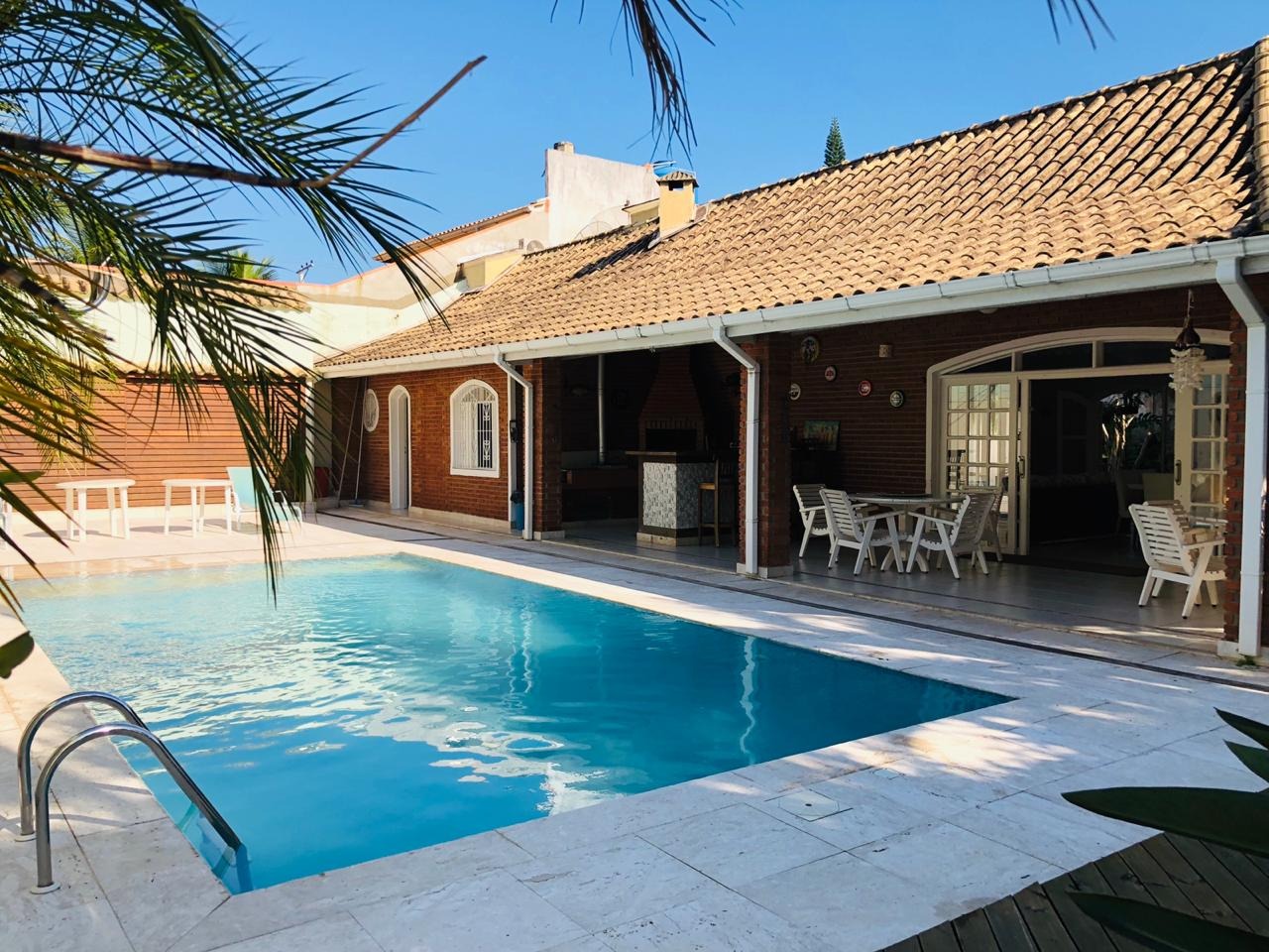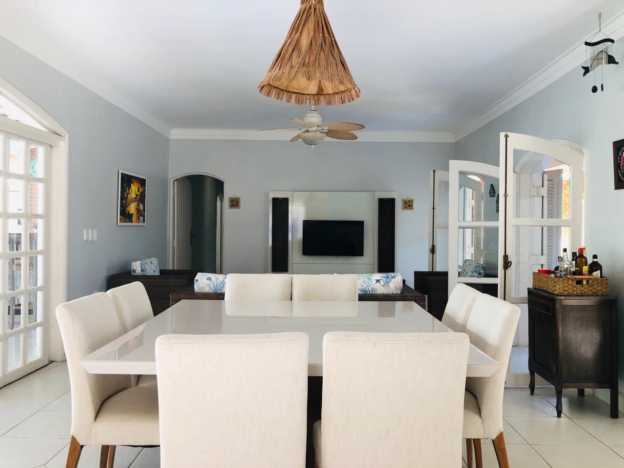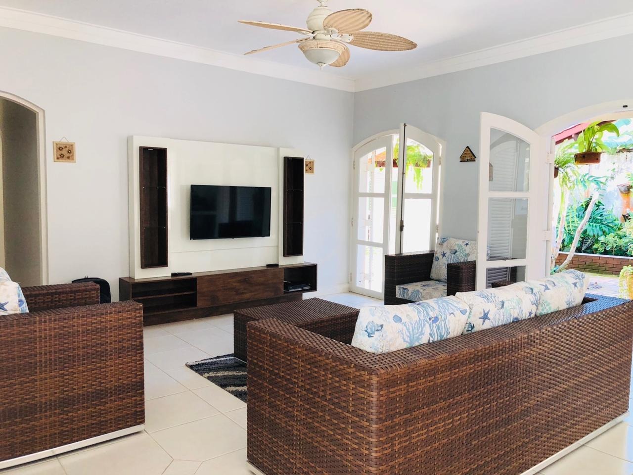 Casa disponível para locação de temporadas, bem decorada e completa, a unidade dispõe de ares condicionados nos quartos, sendo 4 suítes, cozinha completa, área gourmet, lavabo, além de piscina e vagas para veículos.
