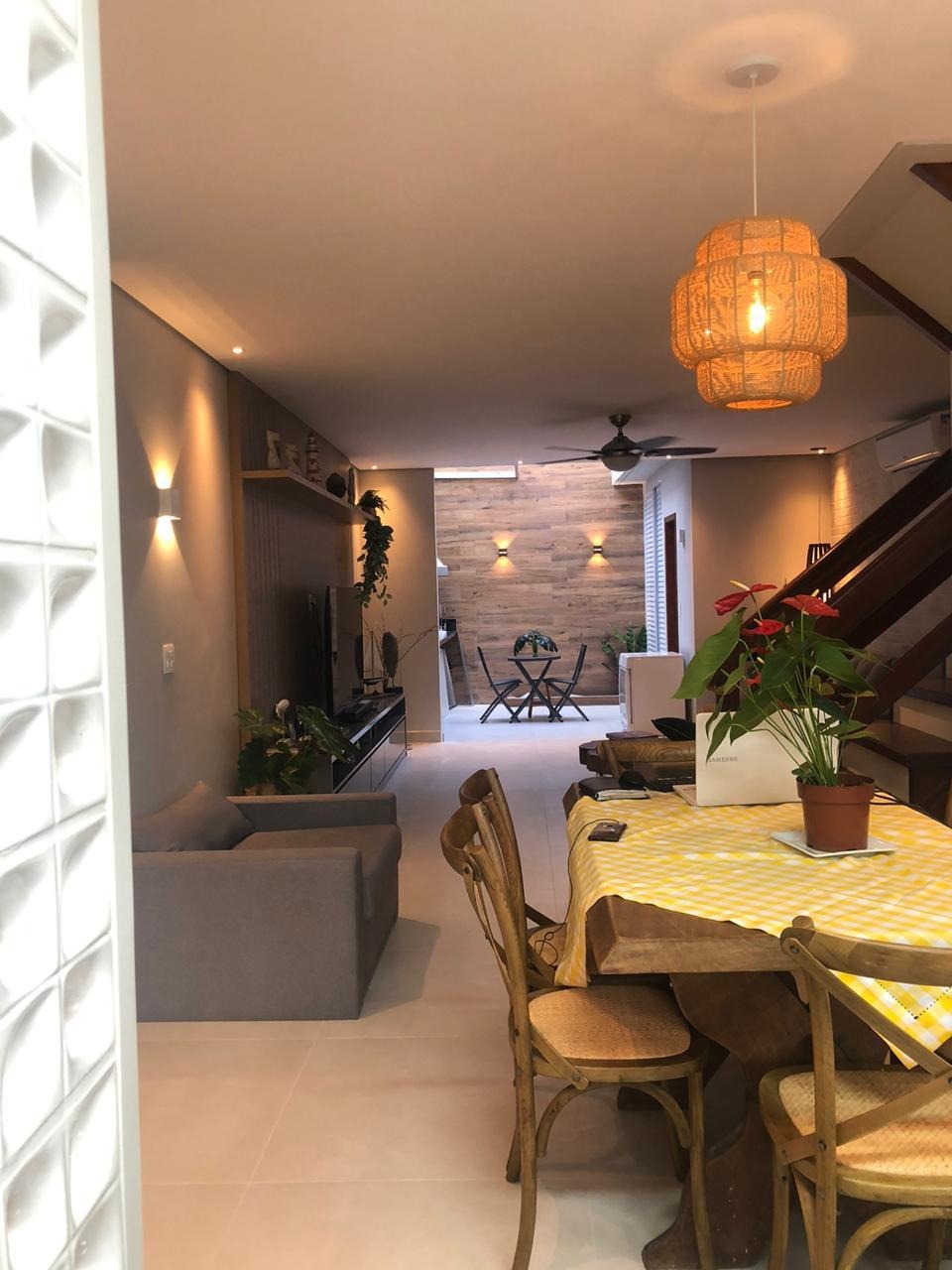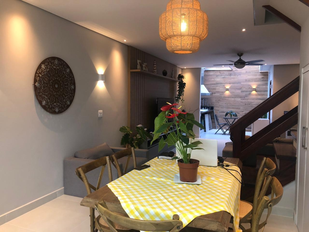 A casa possuí 3 suítes, sala de estar, sala de jantar, área de churrasqueira, cozinha completa e lavabo.