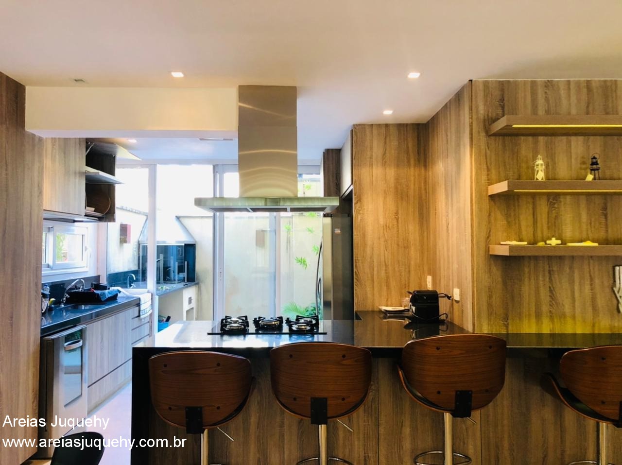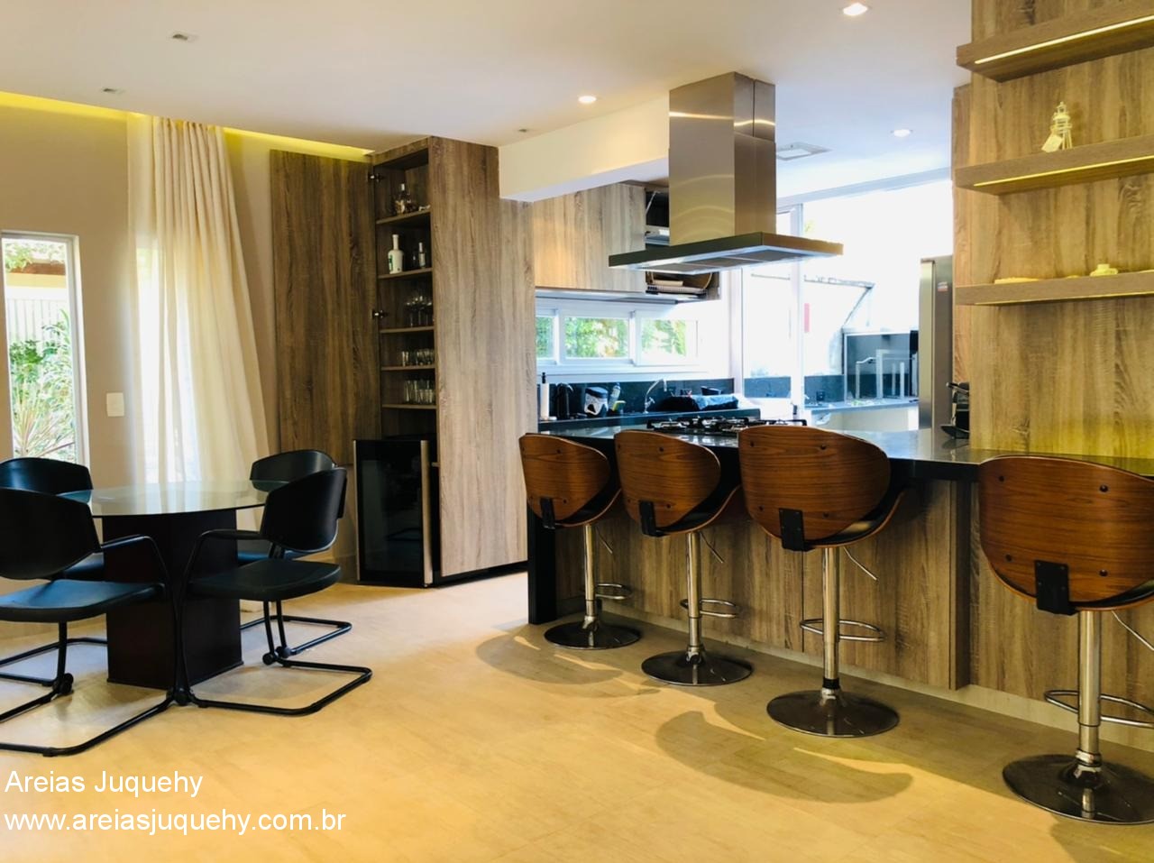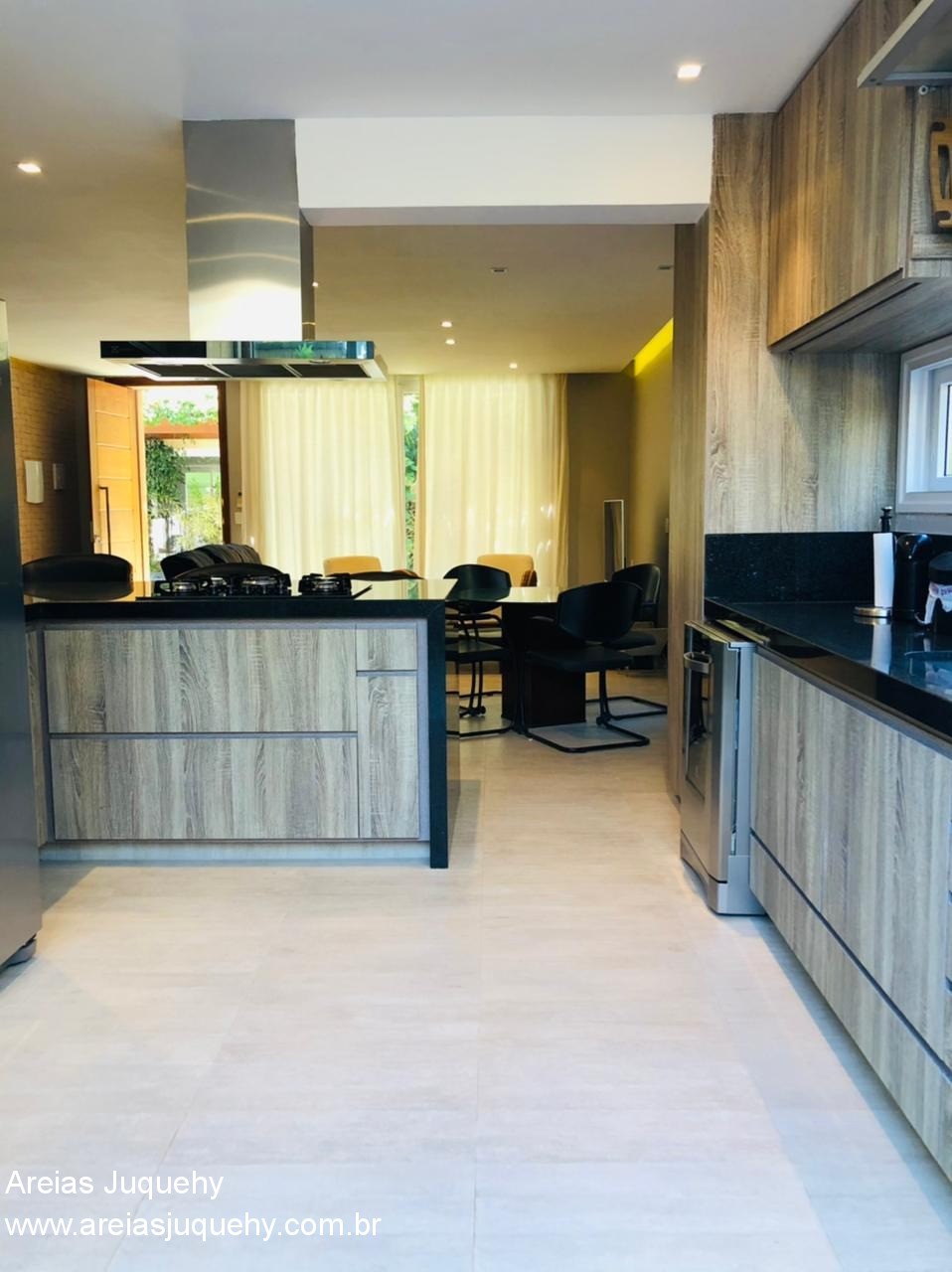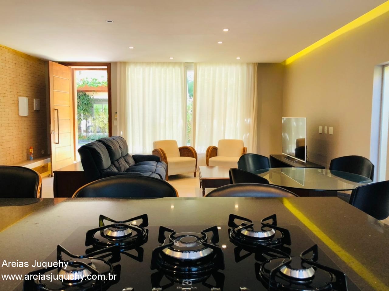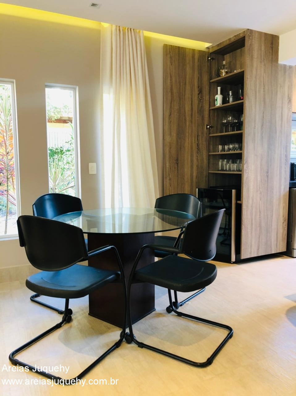 A casa possui sala ampla, lavabo, cozinha americana, 4 dormitórios (sendo 2 suítes), 3 banheiros, lavanderia, churrasqueira privativa, sacada, hidromassagem, ducha externa, garagem para 1 carro, mobiliada e com aparelhos de ar condicionado.