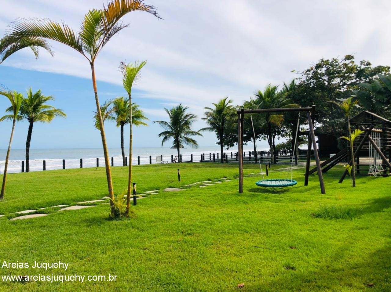 Área comum do condomínio com piscina adulto e infantil, com vista para o mar - sauna seca e úmida - salão de jogos - quadras de tênis - sala de TV - clube frente à praia com churrasqueira, playground, banheiros e área gourmet.
