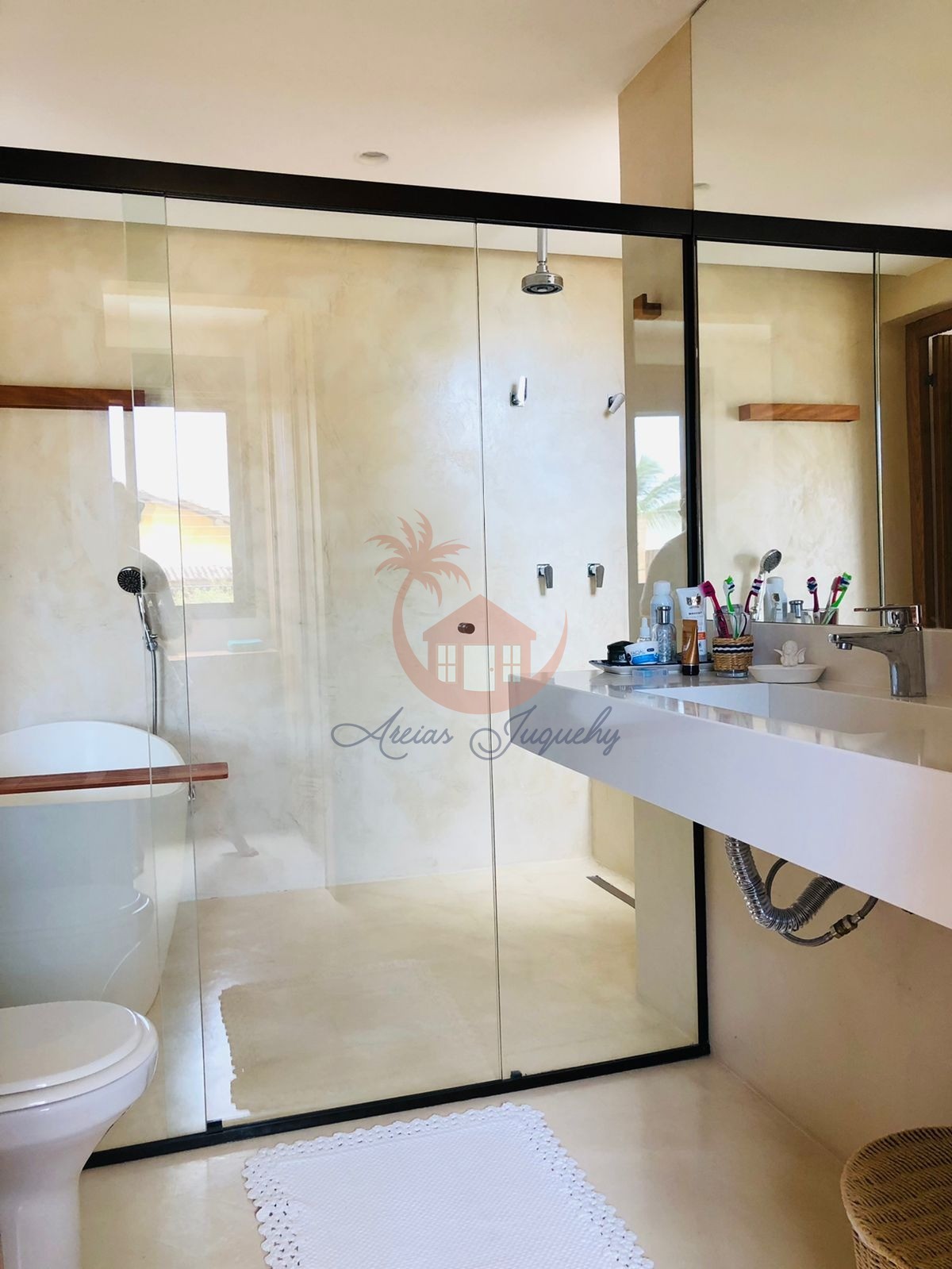 Casa decorada com piscina privativa, área gourmet, cozinha americana, sala de estar, sala de Tv, 4 suítes, uma com vista para o mar e varanda com possibilidade de instalar uma hidromassagem, com vista para o mar.
