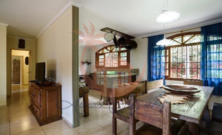 A casa possui 3 quartos, sendo 2 suítes. Sala da TV e sala de jantar, piscina e churrasqueira.