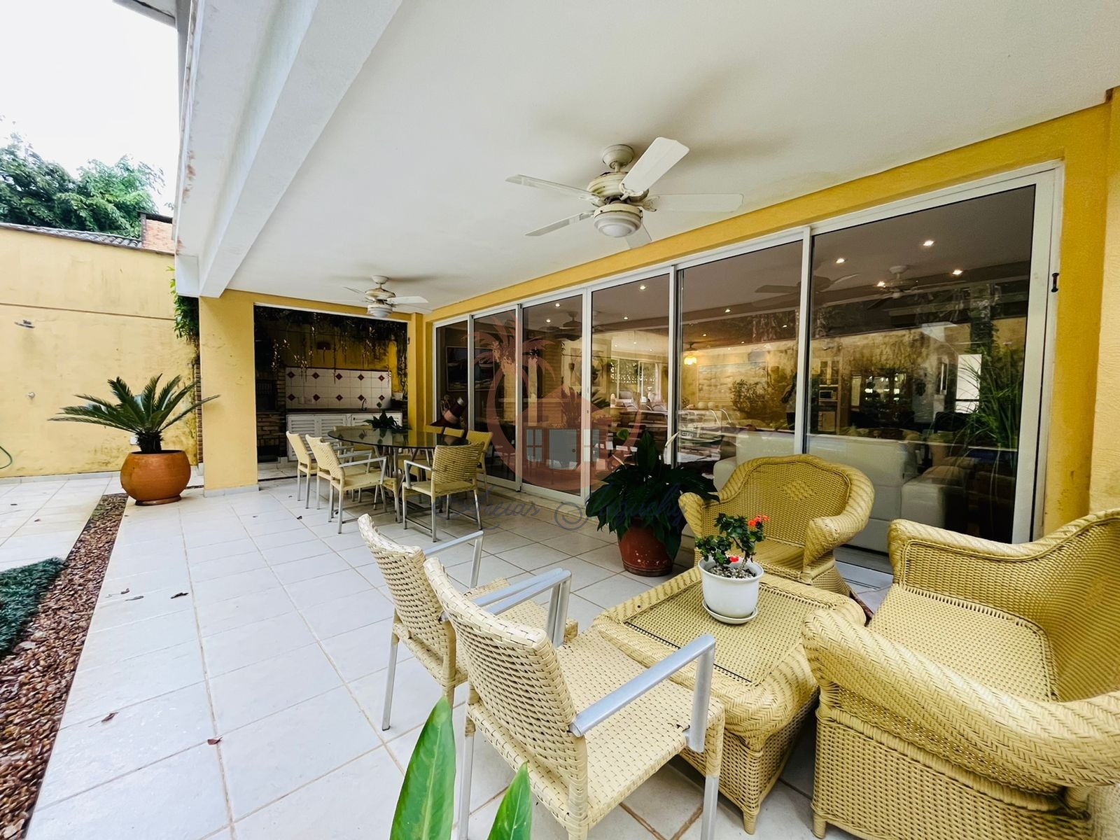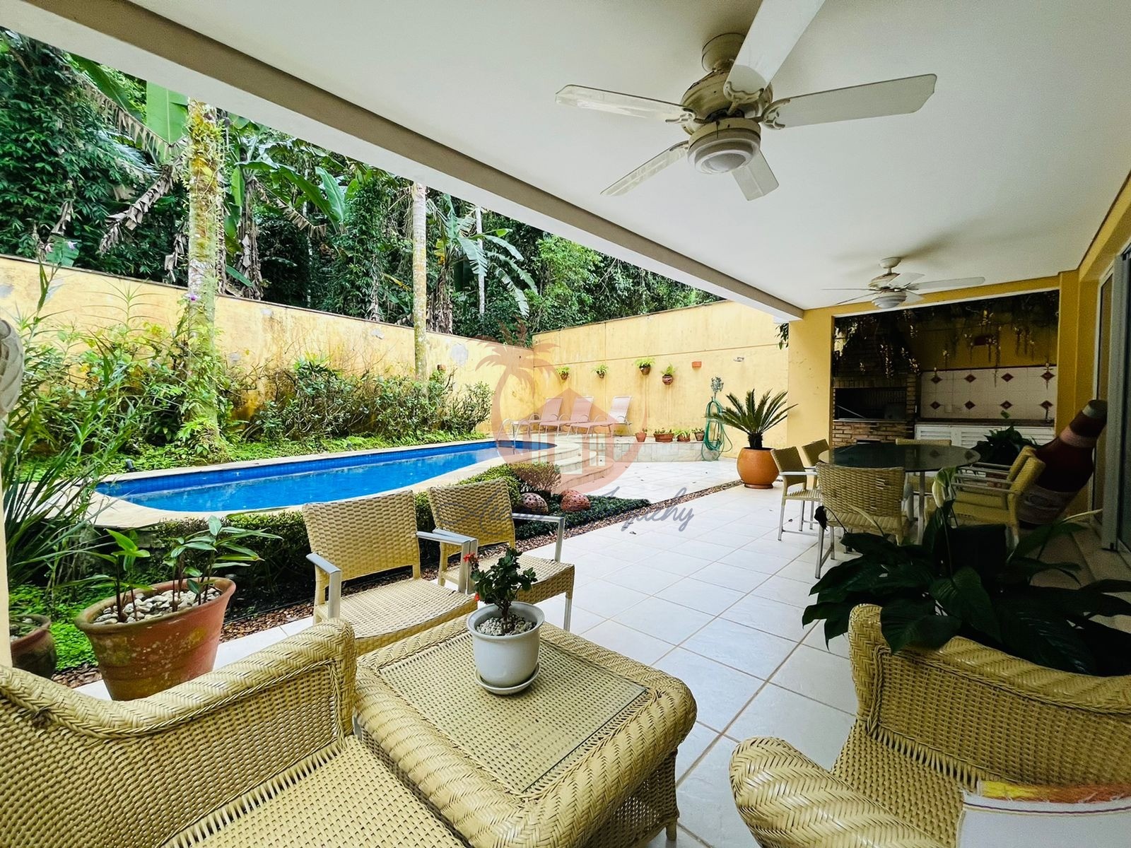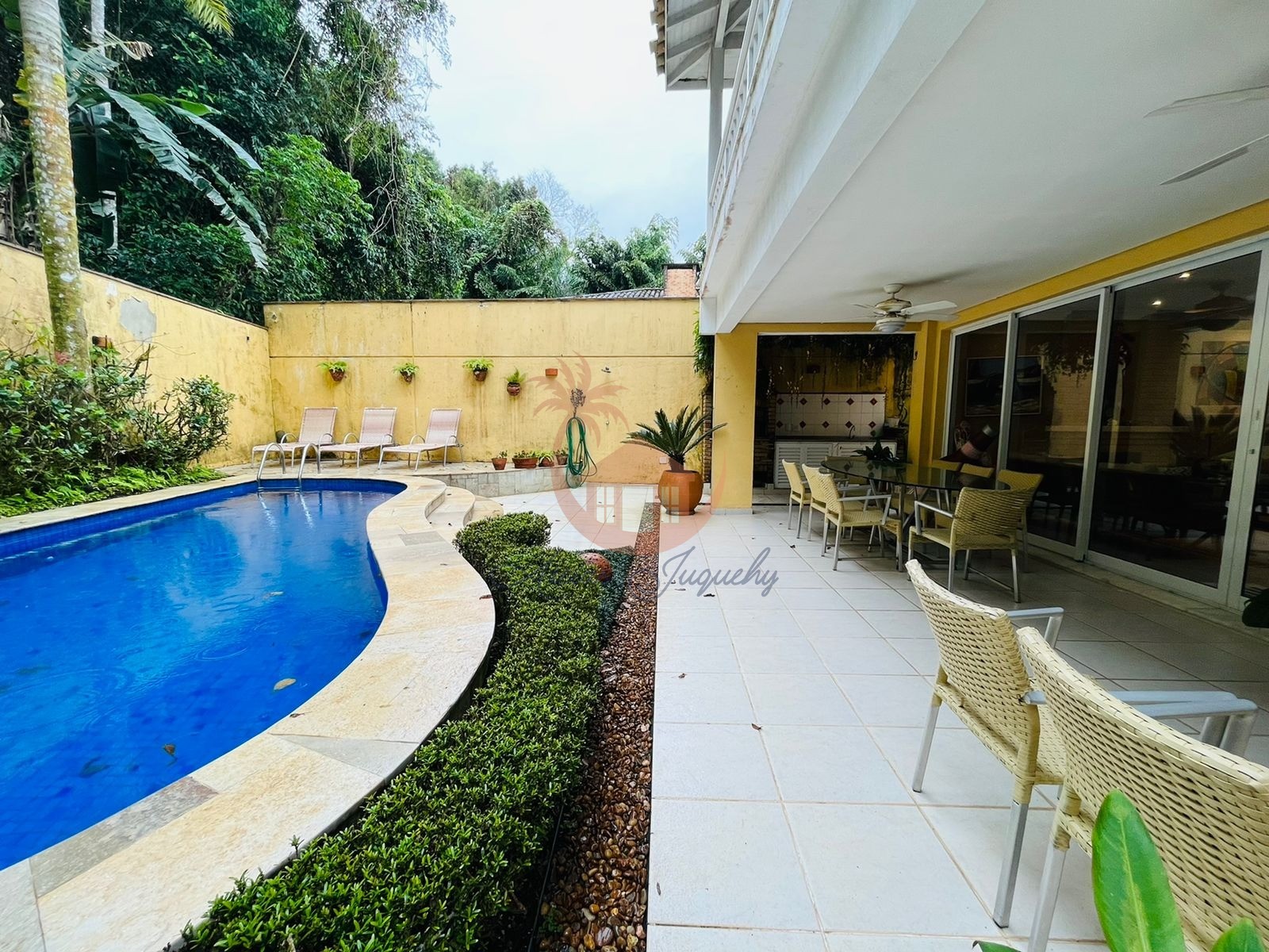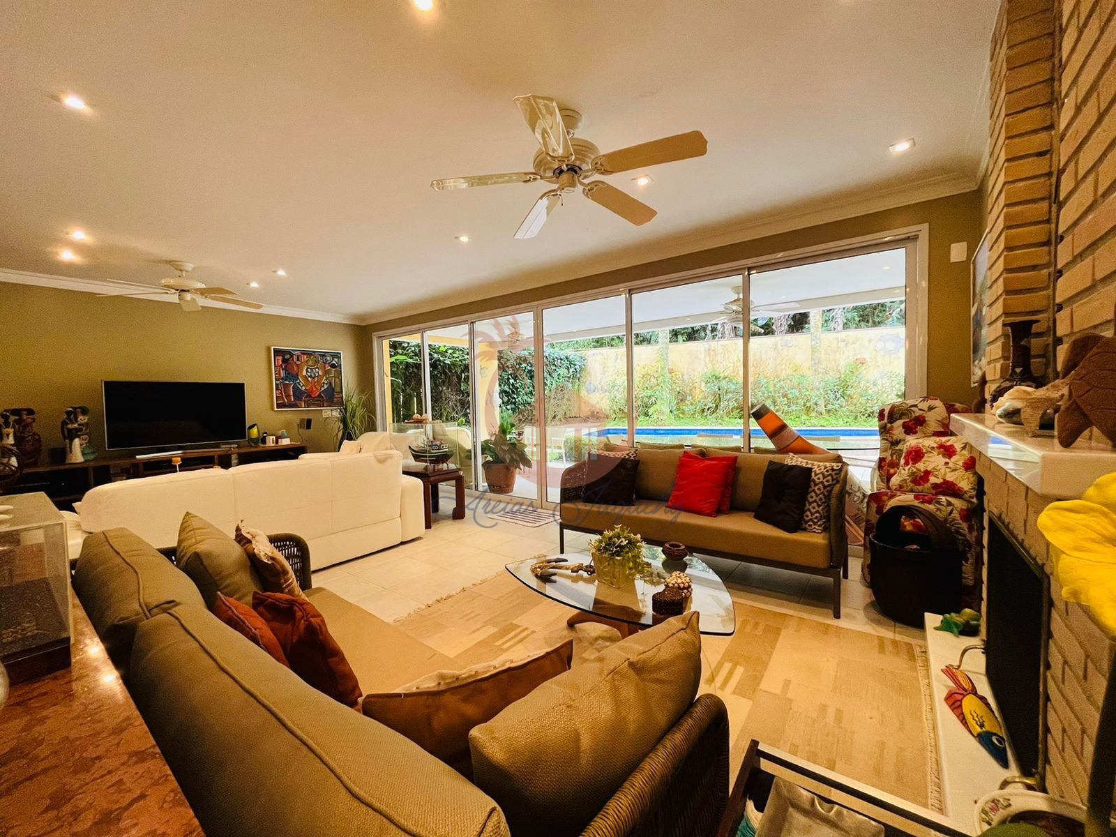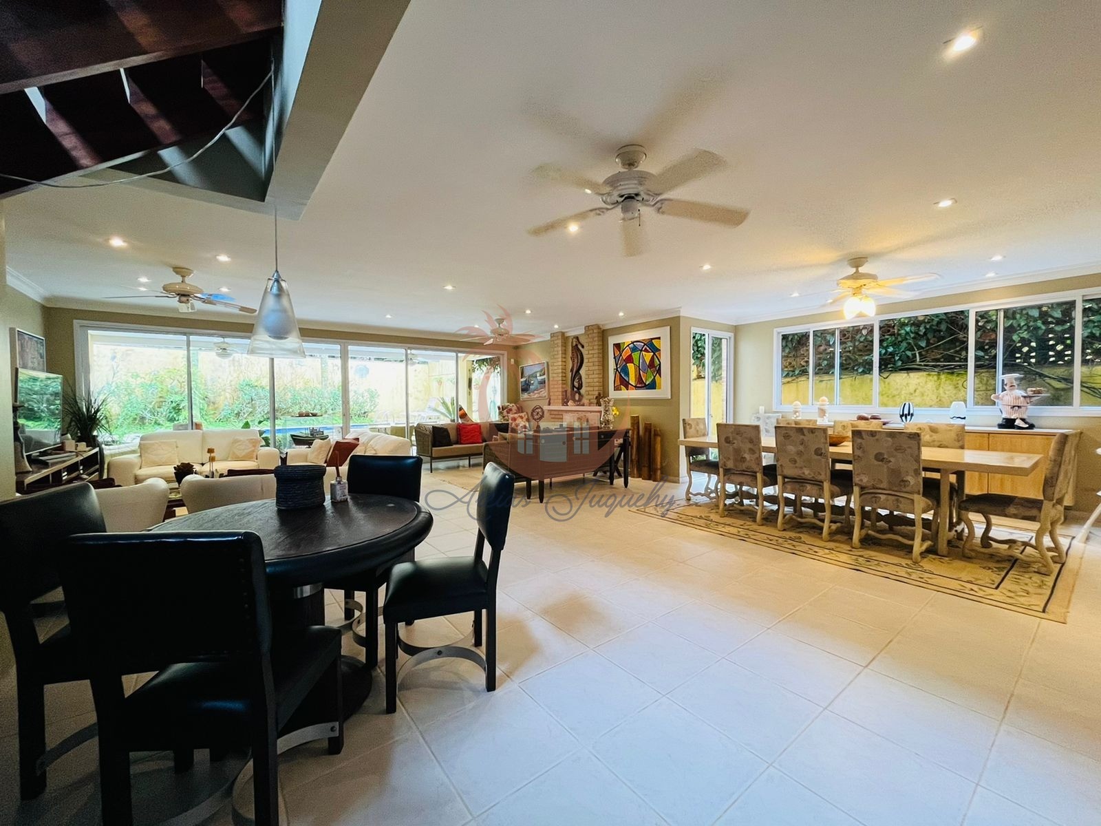A casa possui 5 suítes, lavabo, sala de TV, sala de jantar, área gourmet com churrasqueira e piscina privativa, o condomínio possui zeladoria, salão de jogos, sauna e serviço de praia.