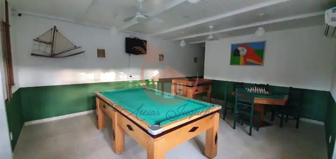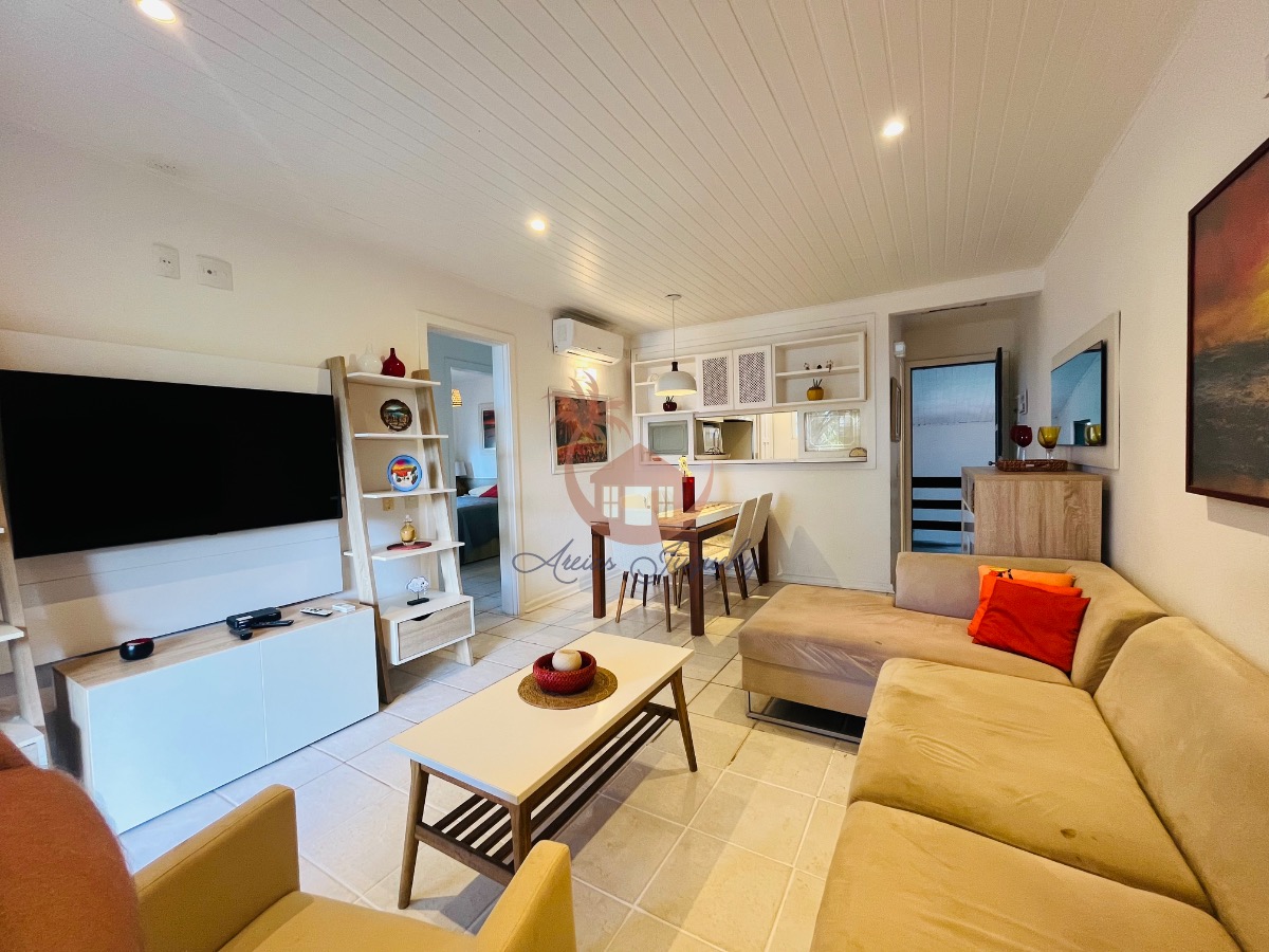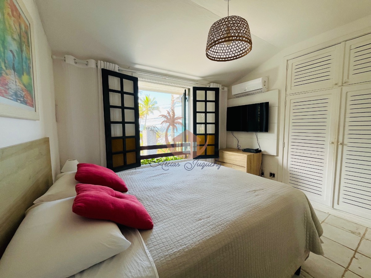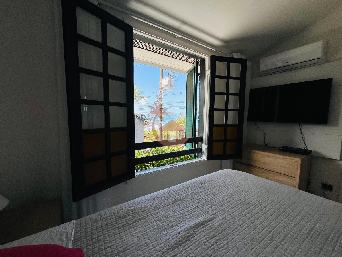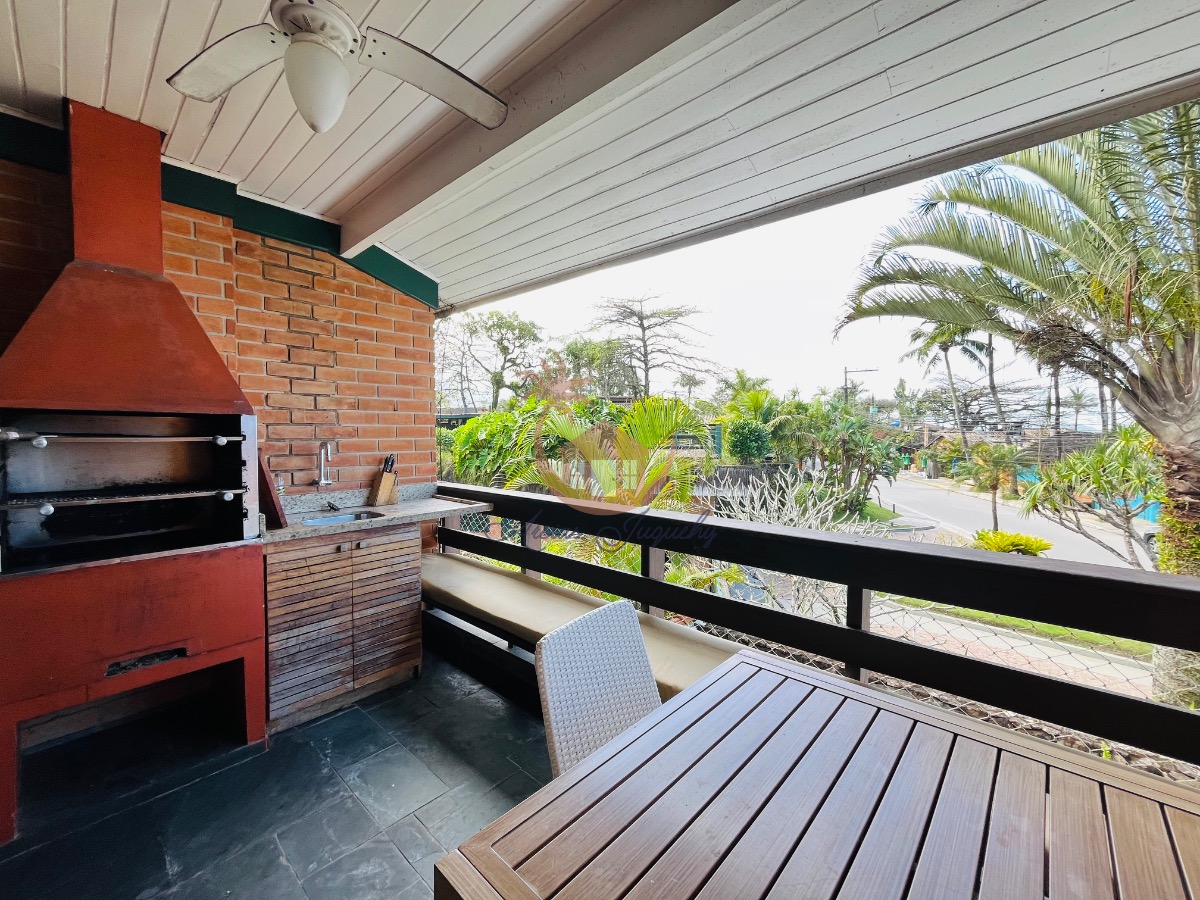 O imóvel ainda possui uma churrasqueira, ventiladores e ar-condicionado, além de uma sacada e varanda que permitem desfrutar da brisa do mar.