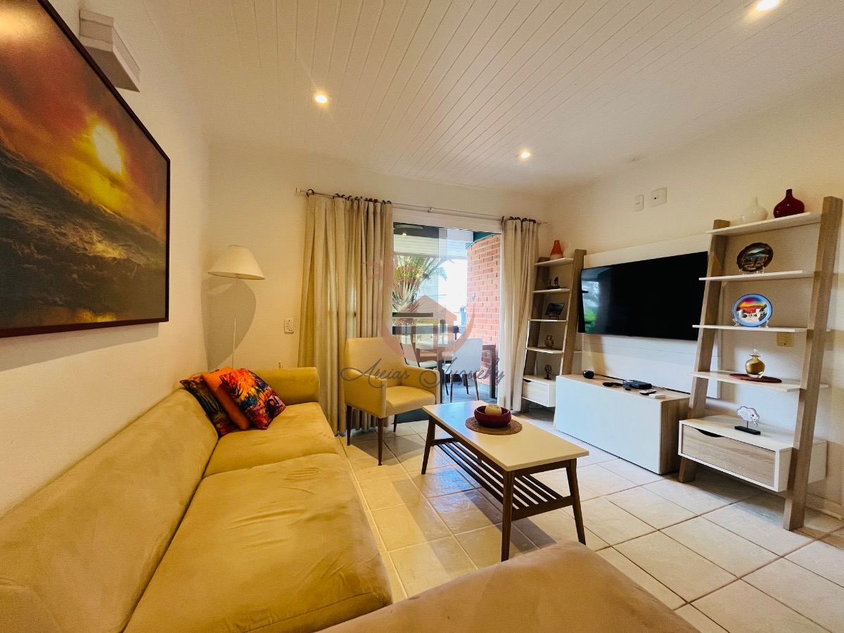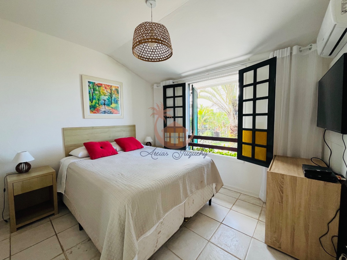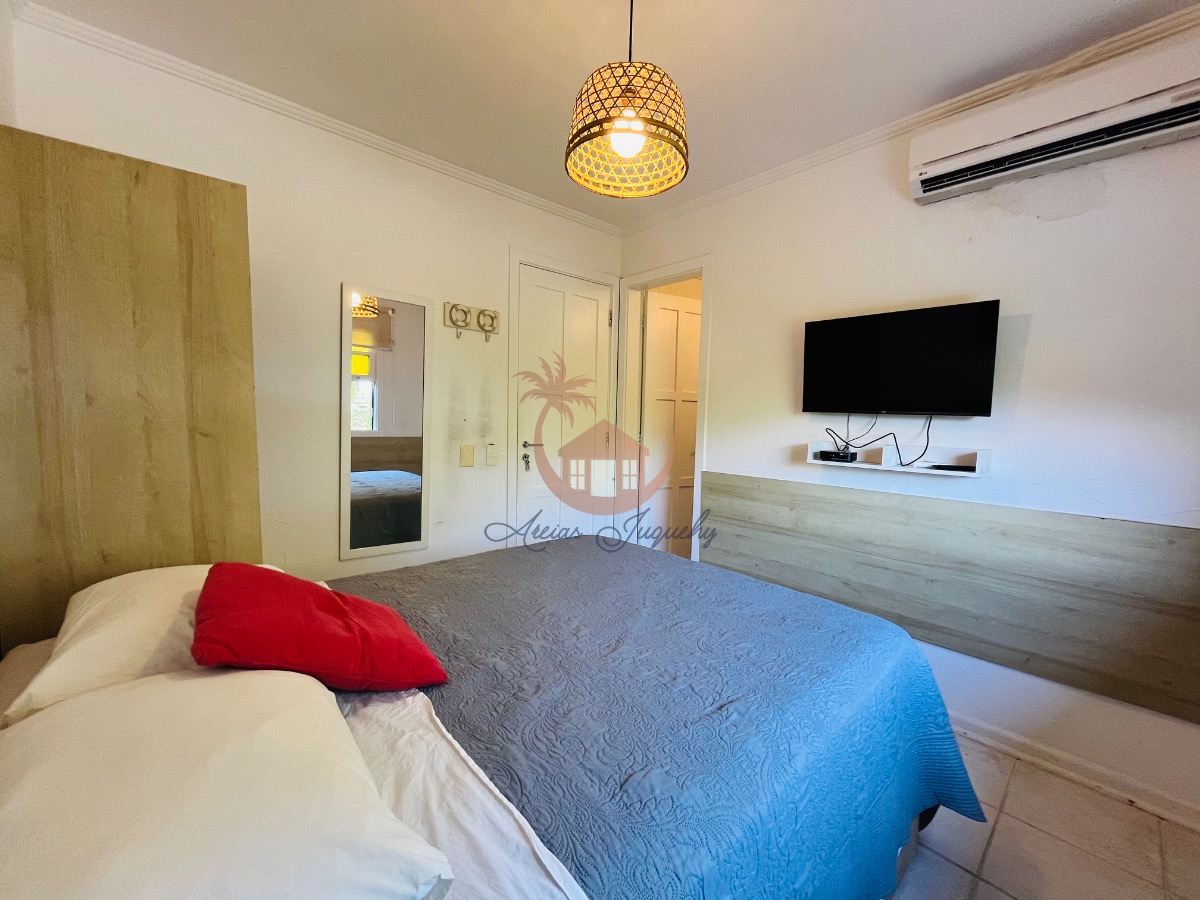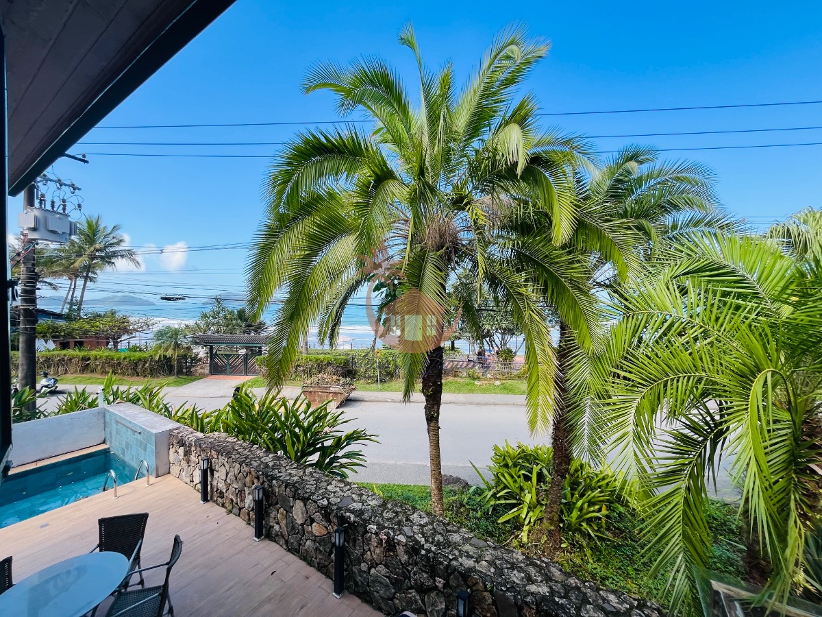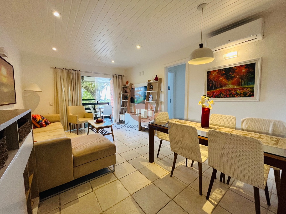 O imóvel ainda possui uma churrasqueira, ventiladores e ar-condicionado, além de uma sacada e varanda que permitem desfrutar da brisa do mar.