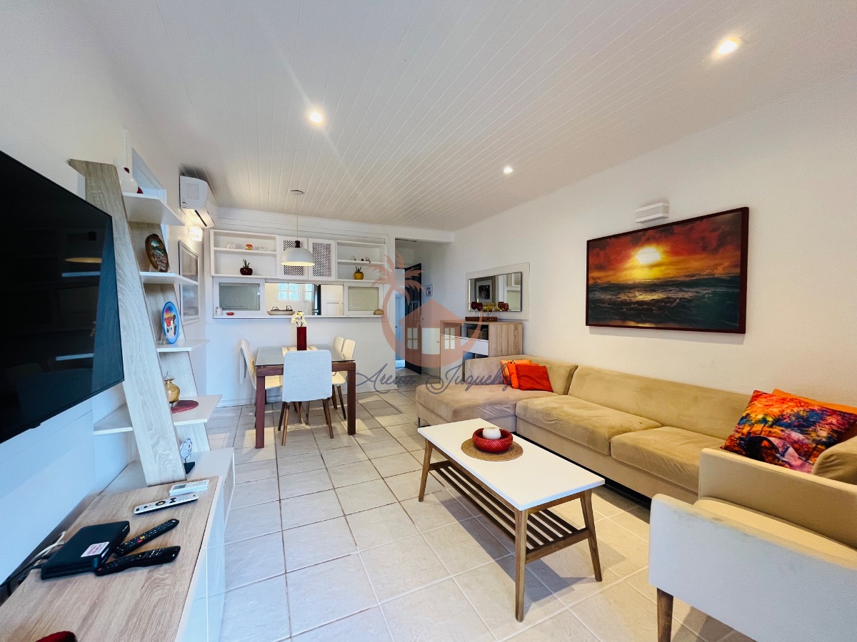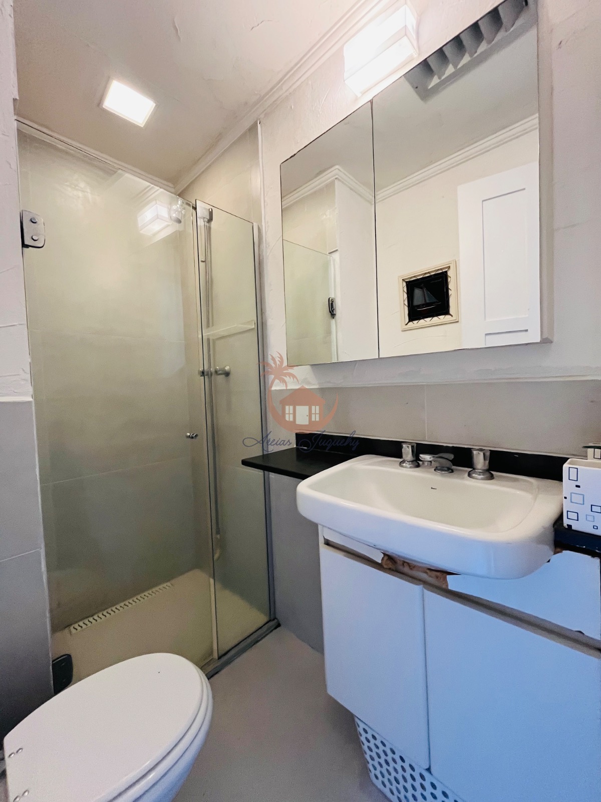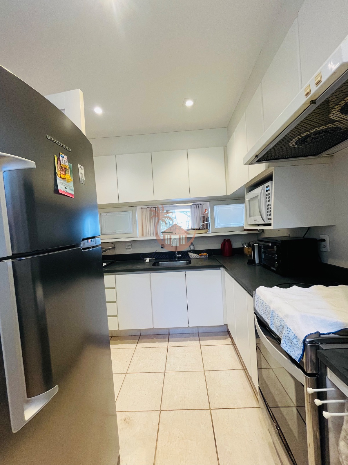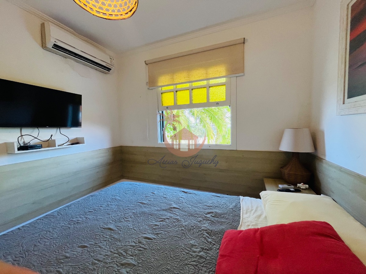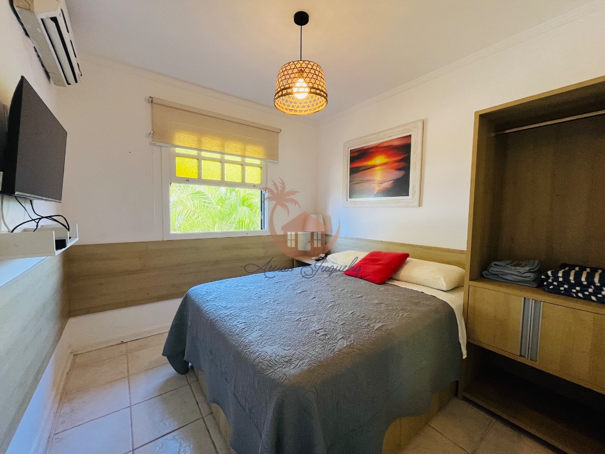 O imóvel ainda possui uma churrasqueira, ventiladores e ar-condicionado, além de uma sacada e varanda que permitem desfrutar da brisa do mar.