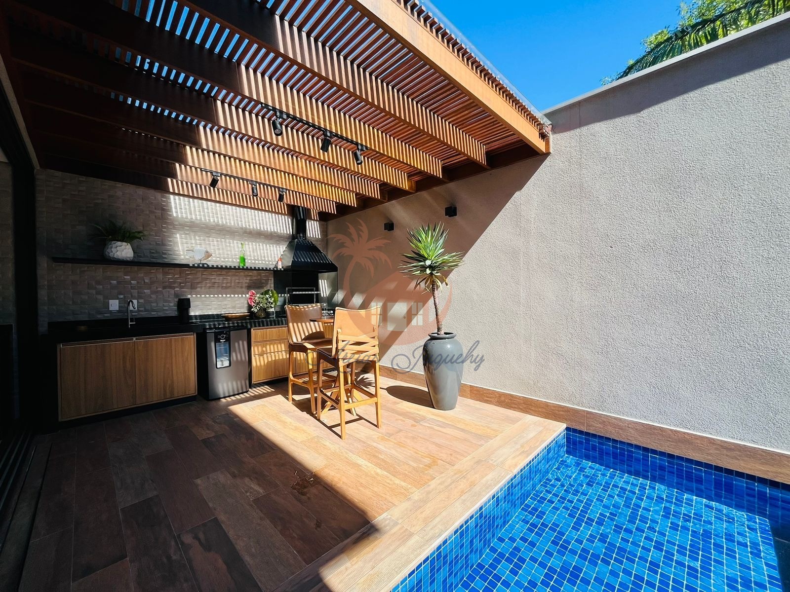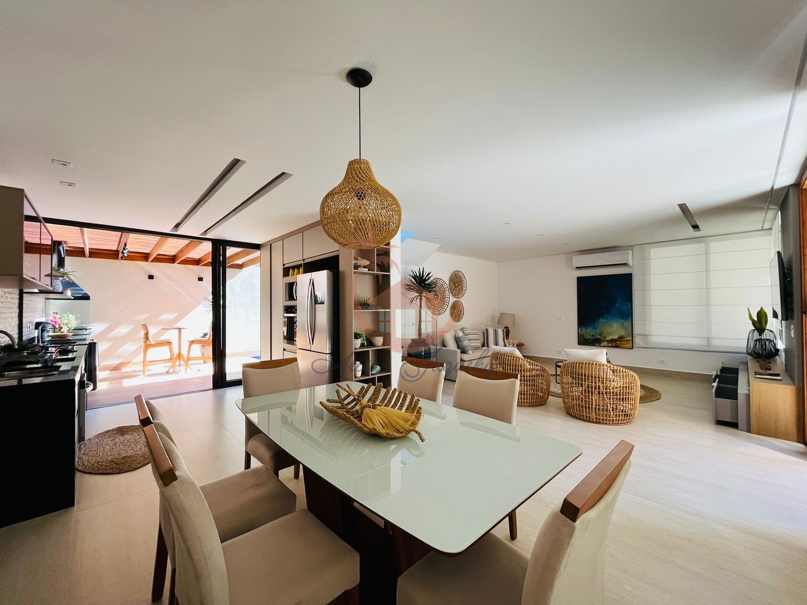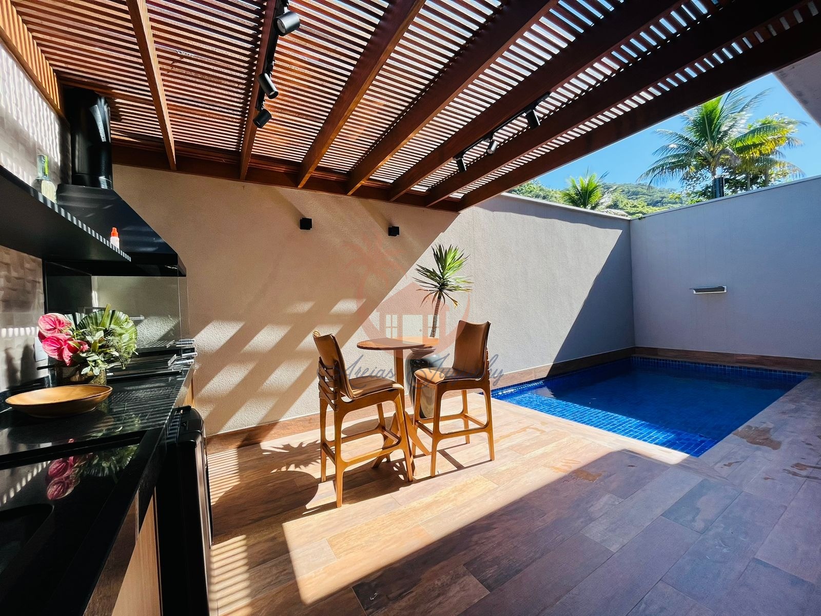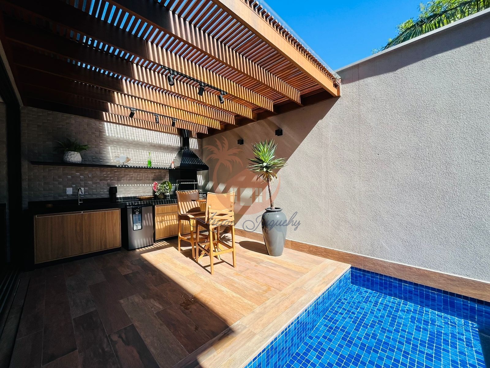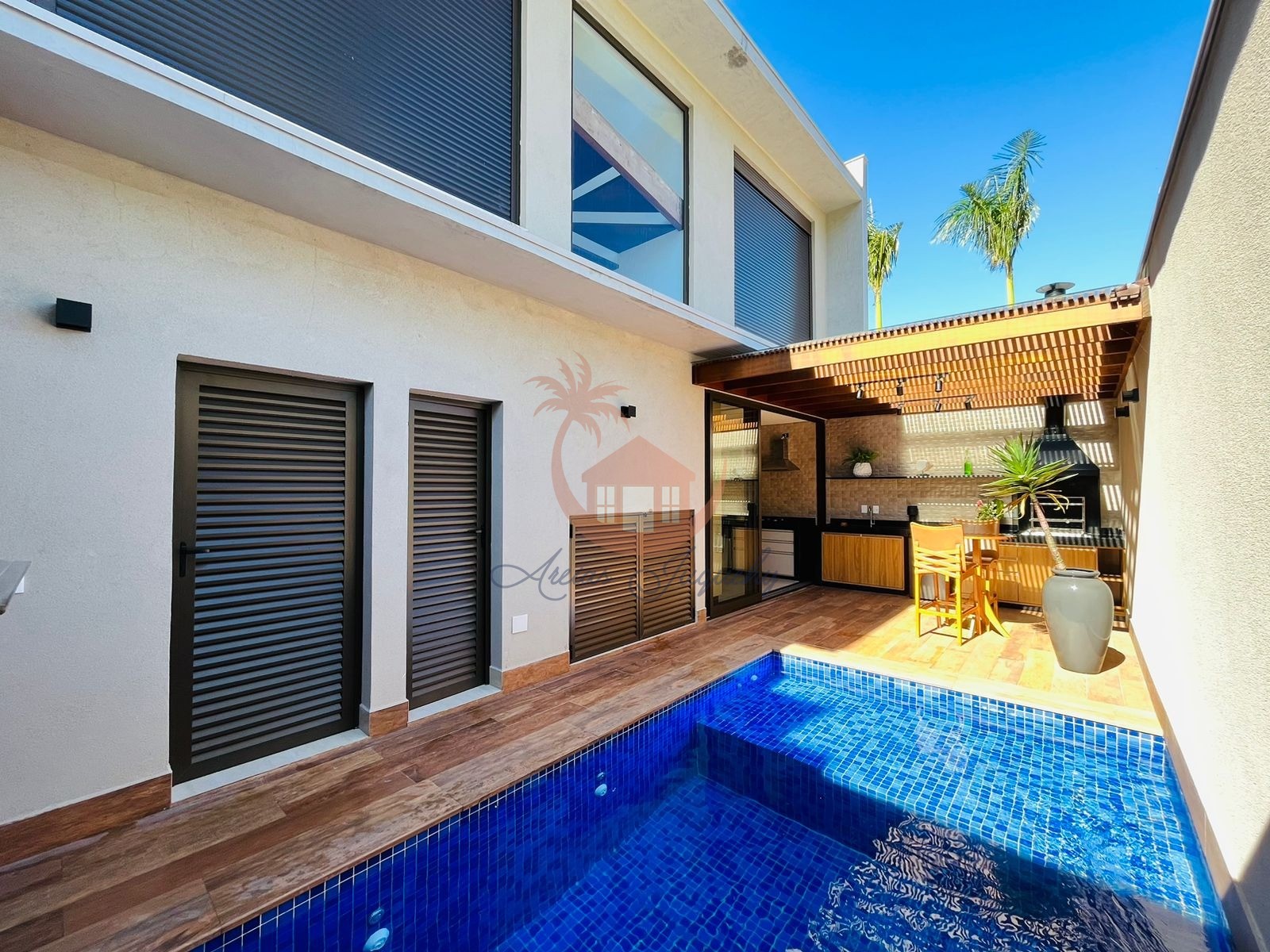 O Imóvel possuí 4 suítes, sala de Tv, cozinha americana com ilha, área de churrasqueira e piscina privativa.