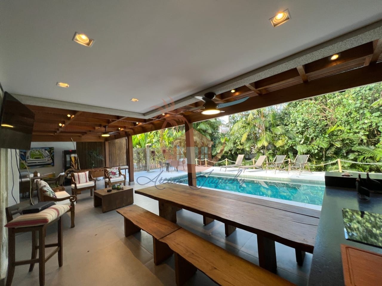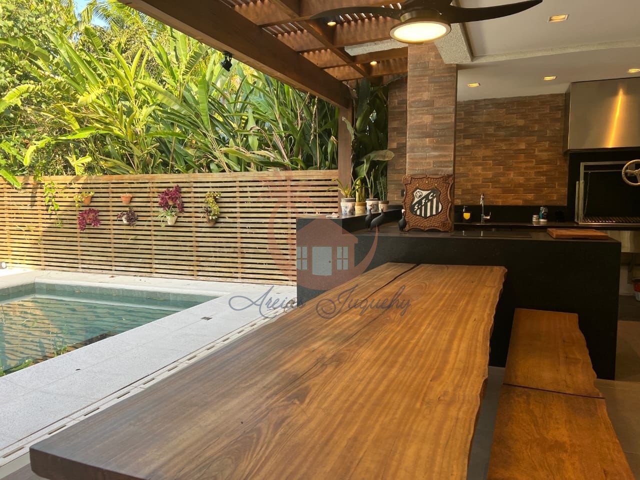5 suítes, lavabo, cozinha completa, área gourmet com churrasqueira.