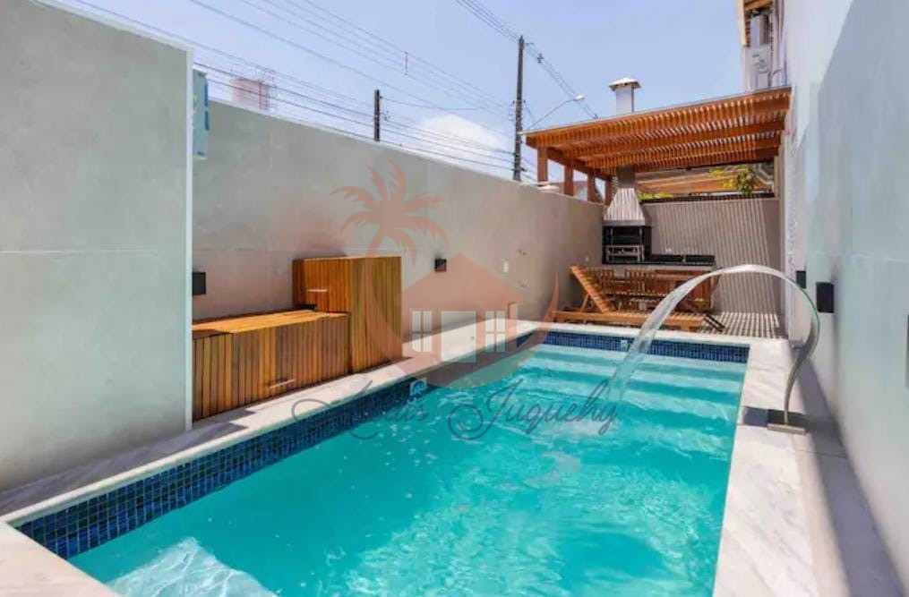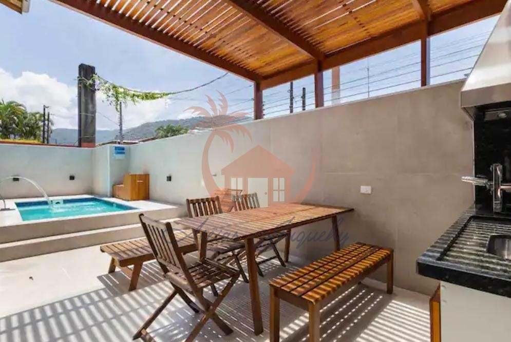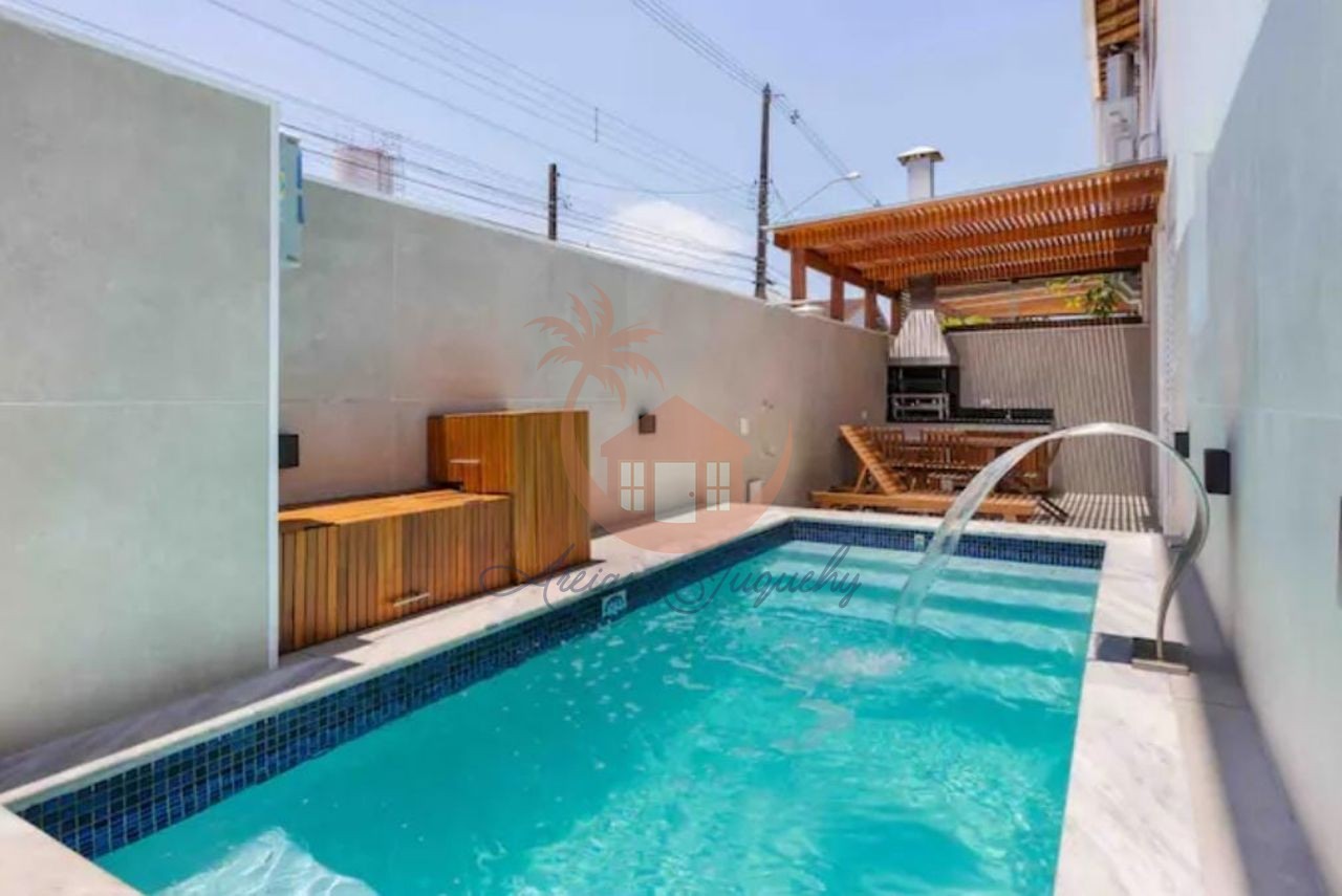 Casa em condomínio disponível para locação. O imóvel possui piscina privativa e aquecida, ar condicionado em todos os cômodos, lavabo, sala de TV e sala de jantar integradas, 4 dormitórios sendo 2 suítes mais 2 banheiros completos. 700m da praia, 300m do centro comercial