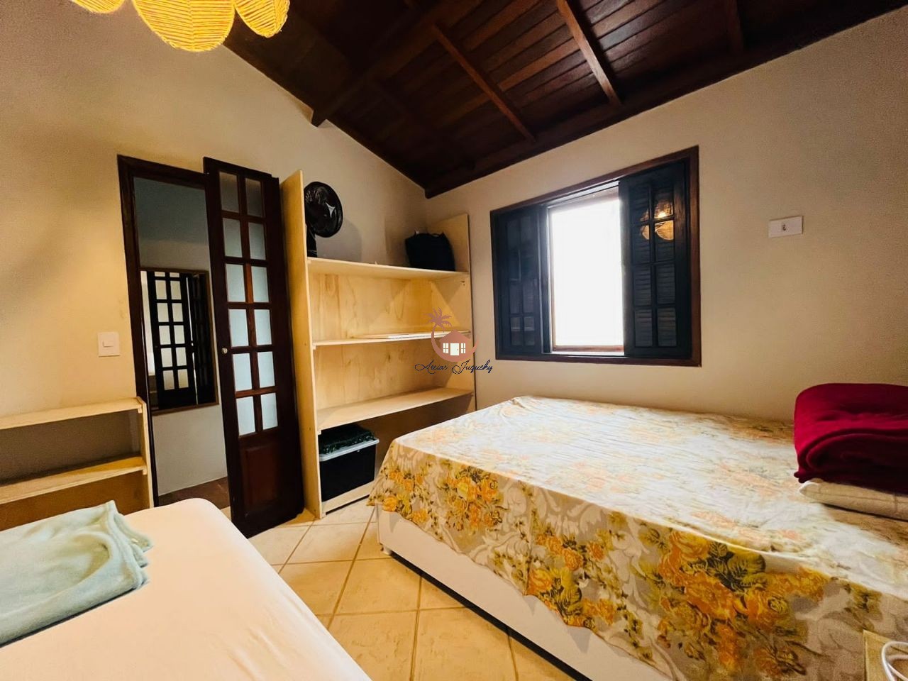 1 Quarto, 1 banheiro completo, sala com TV, área coberta com churrasqueira e frigobar