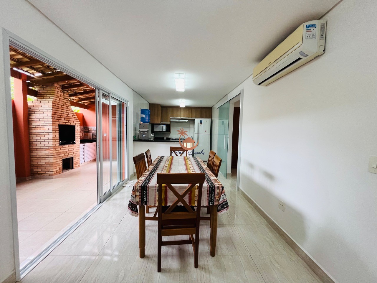 Possui 4 dormitórios, sendo 2 suítes e 2 quartos térreos.Sala de estar, sala de jantar integrada a cozinha americana, área de churrasqueira e um espaço para construção de Piscina Privativa