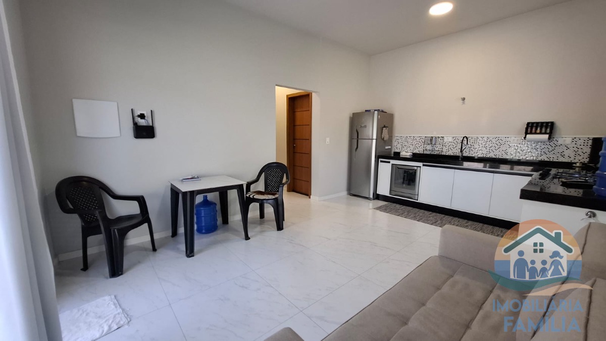 Casa nova com dois dormitórios( 1 suíte), sala,cozinha equipada, um banheiro além de terraço.