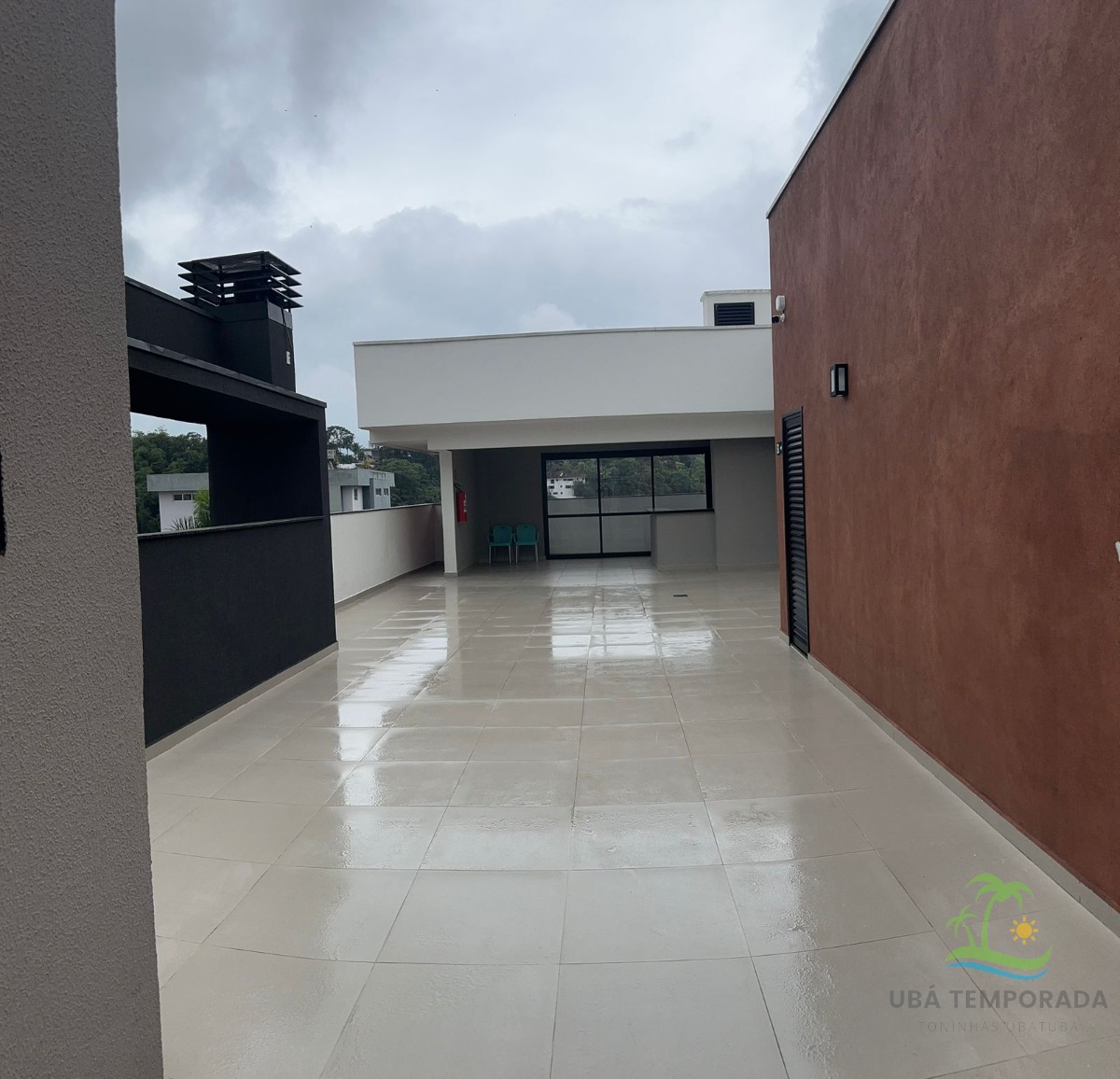 Apartamento de meio andar com área total de 70 m² e 70 m² de área útil, mobiliado localizado em rua asfaltada no bairro Tenório em Ubatuba para locação temporada e acomoda até 8 pessoas. sendo 6 adultos e 2 crianças