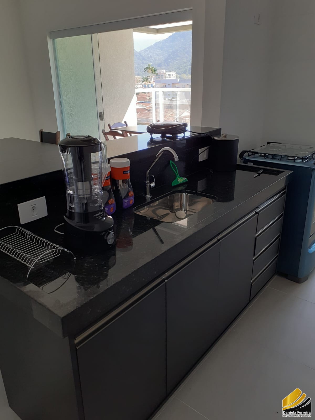 Área de lazer no 5° andar com espaço gourmet, com vista para o mar.