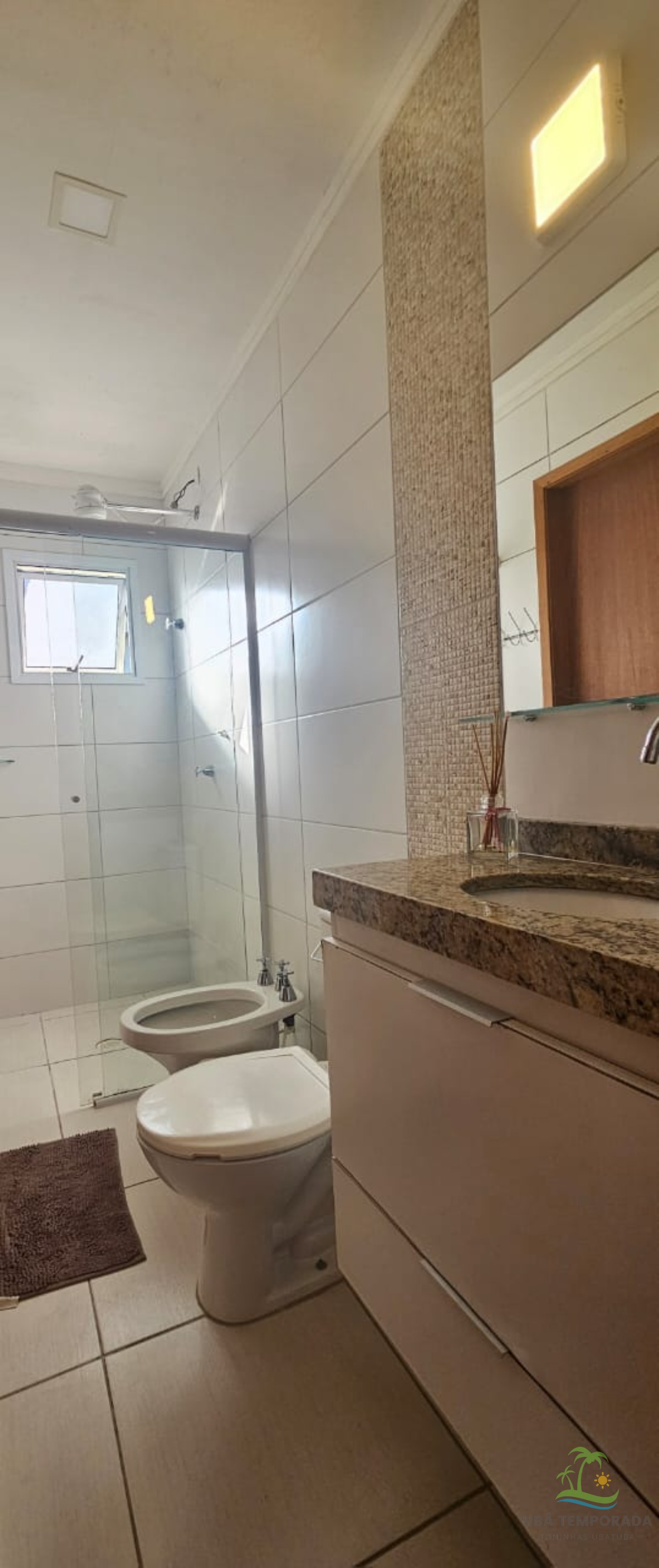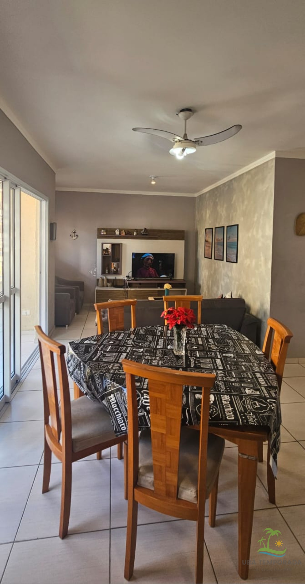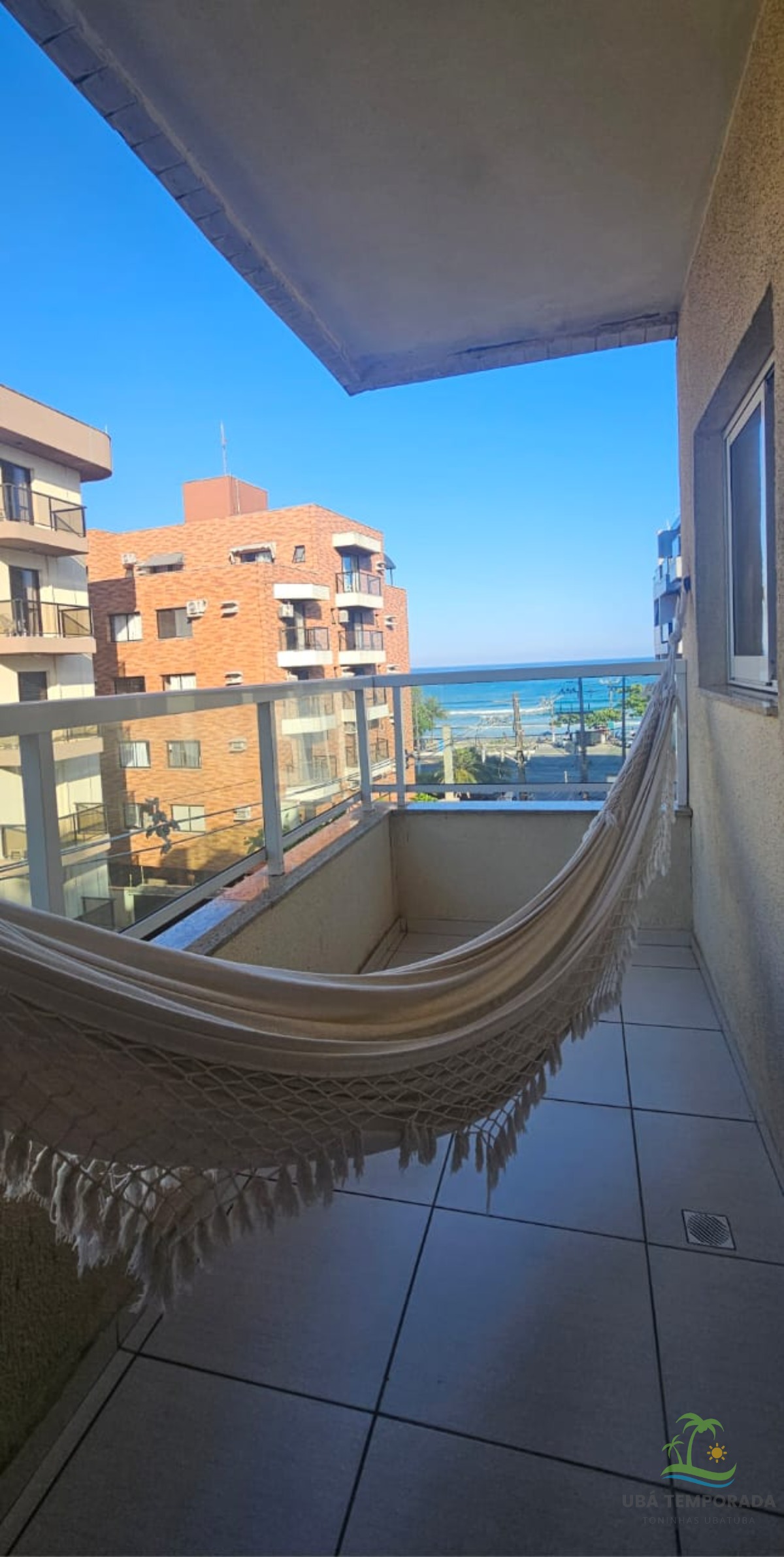 Apartamento mobiliado de esquina, localizado em rua asfaltada no bairro Praia Grande em Ubatuba para locação diária e acomoda até 14 pessoas.