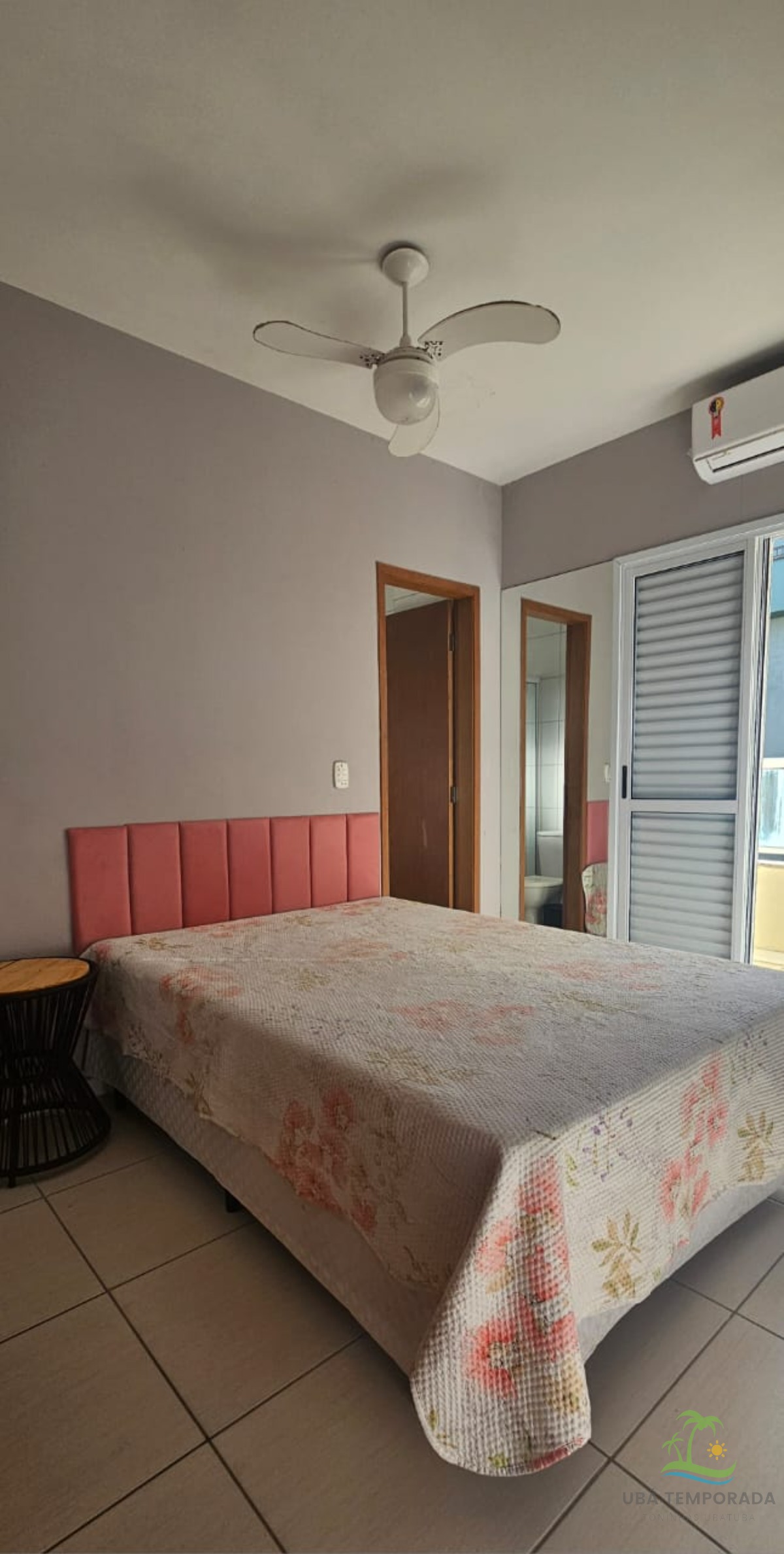1 cama de casal , ar-condicionado , ventilador de teto e sacada e banheiro