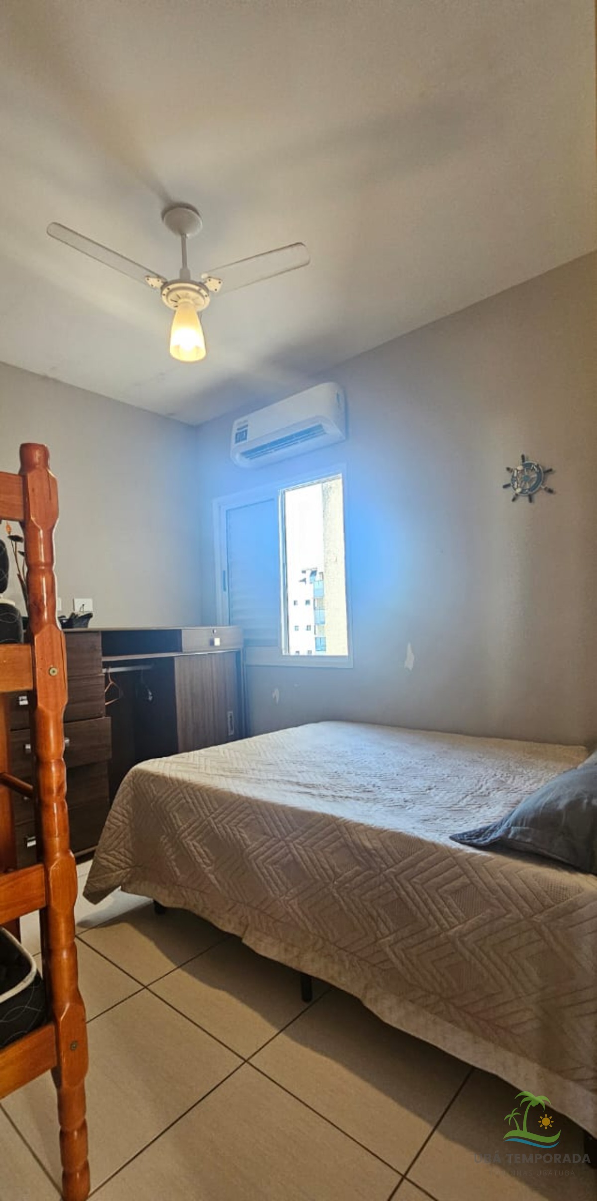 1cama de casal , 1 beliche , 2 colchões de solteiro, Cômoda , ar-condicionado , ventilador de teto , banheiro