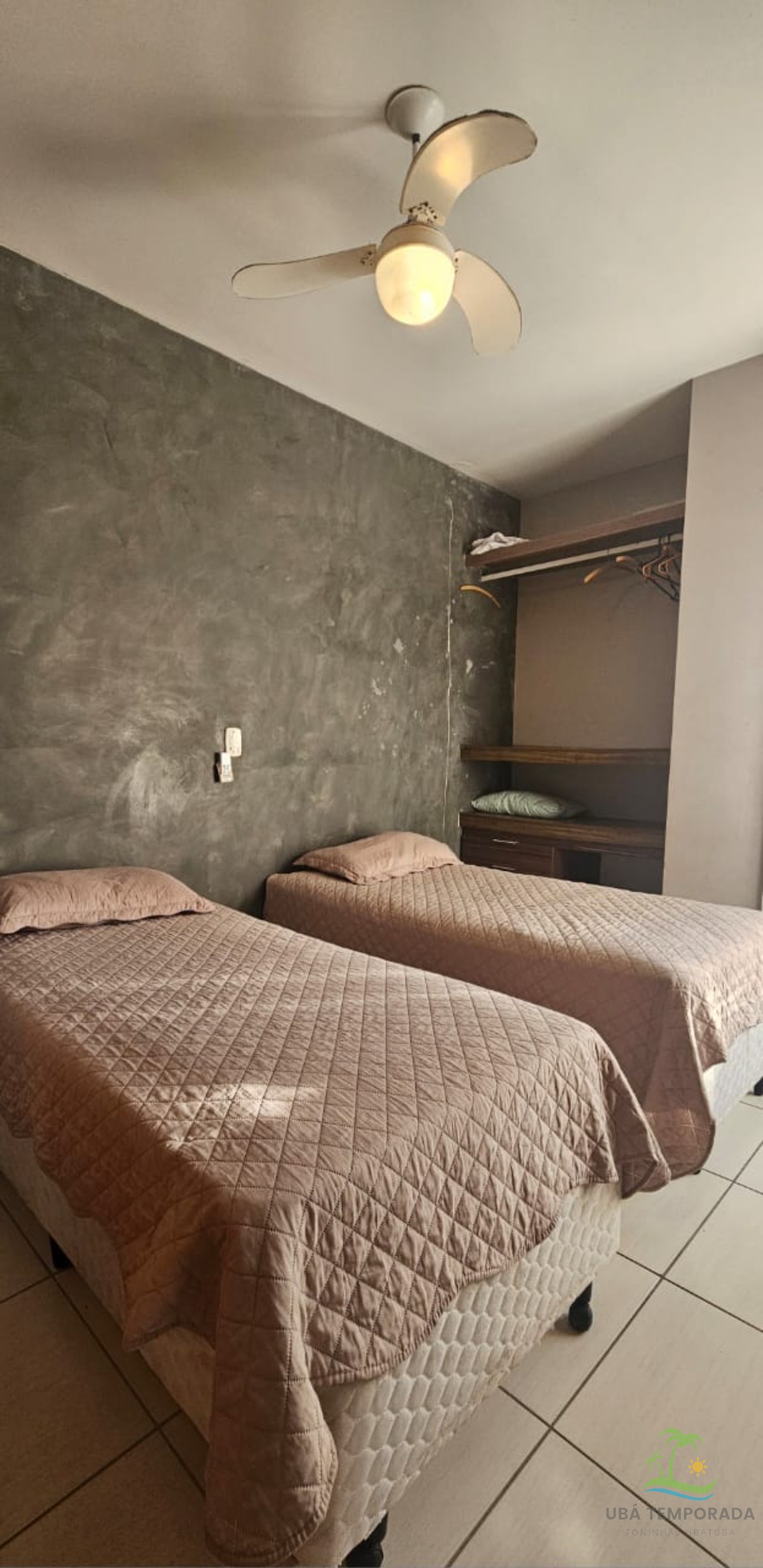 2 Bicamas , ar-condicionado , ventilador de teto ,armário , cabideiro e sacada e banheiro