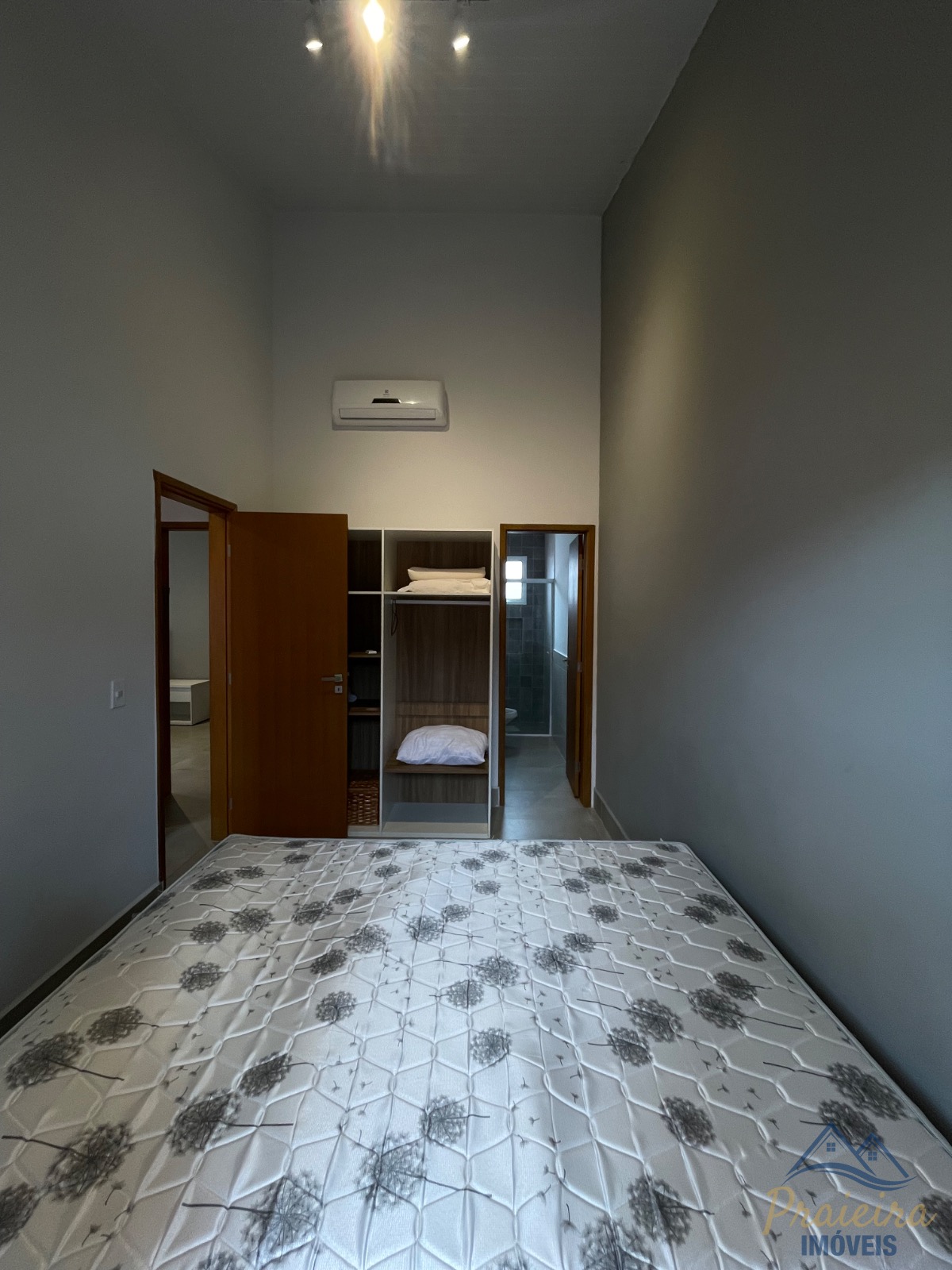 No andar superior, a casa conta com 3 suítes e no condomínio dispõe de uma piscina compartilhada para aproveitar os dias de sol.