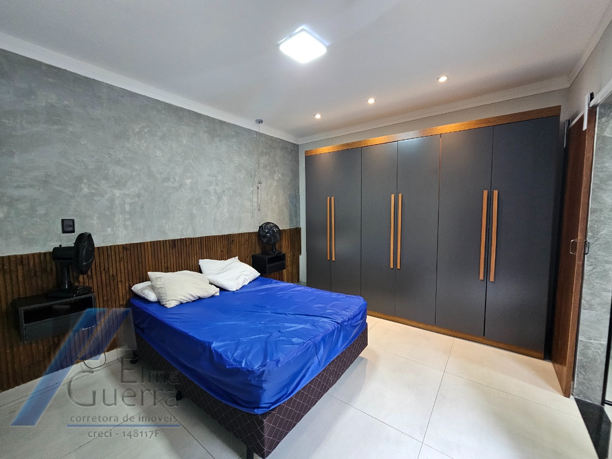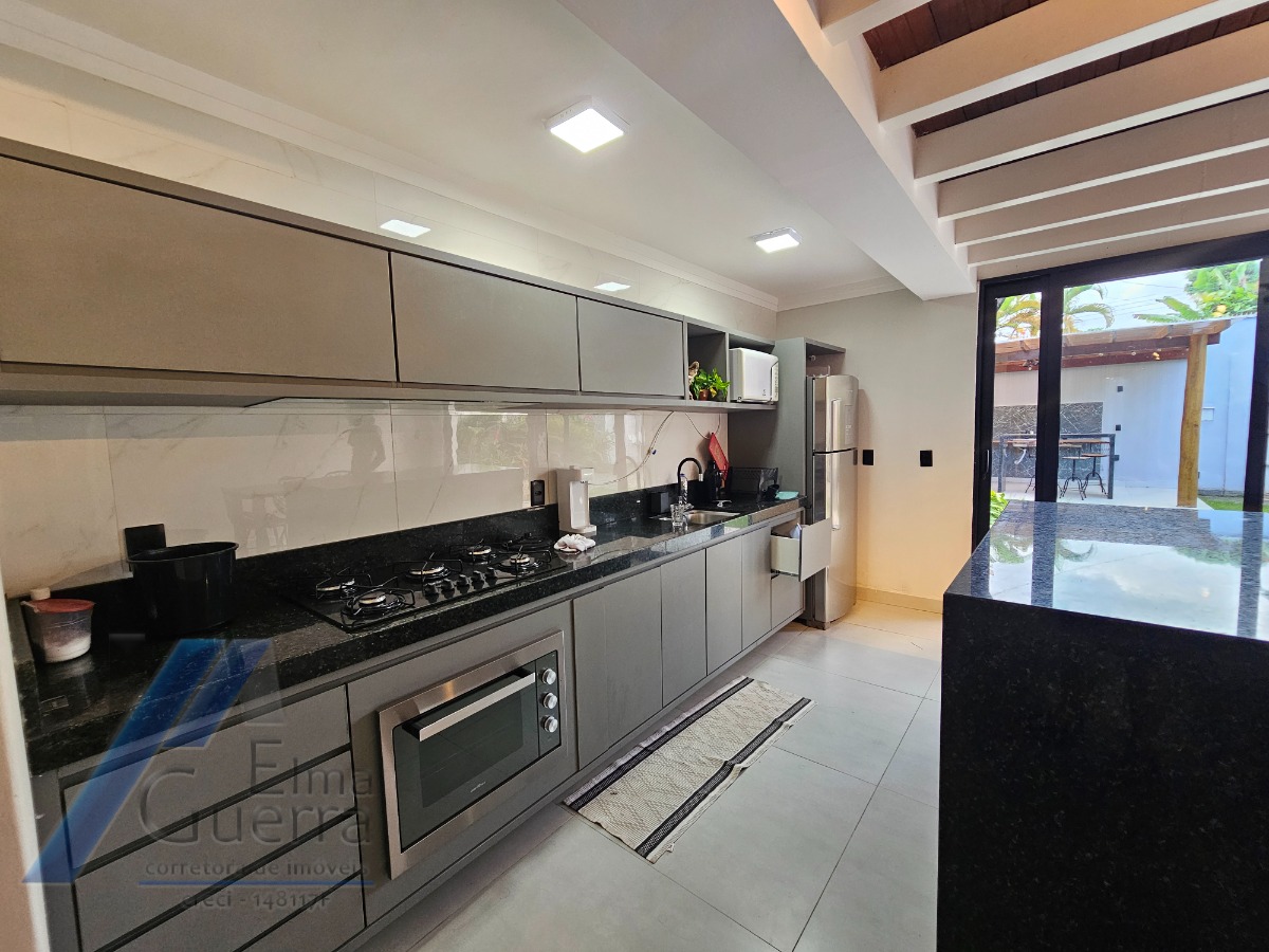 Imóvel com 03 dormitórios, sendo 01 suíte, 01 banheiro, sala de estar, sala de jantar, cozinha planejada, copa, área de serviço, ar condicionado, ventiladores, área gourmet com churrasqueira, quintal, ducha externa e 04 vagas de garagem.