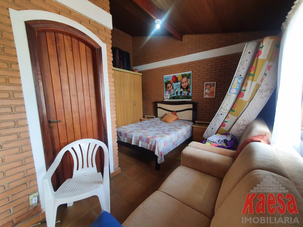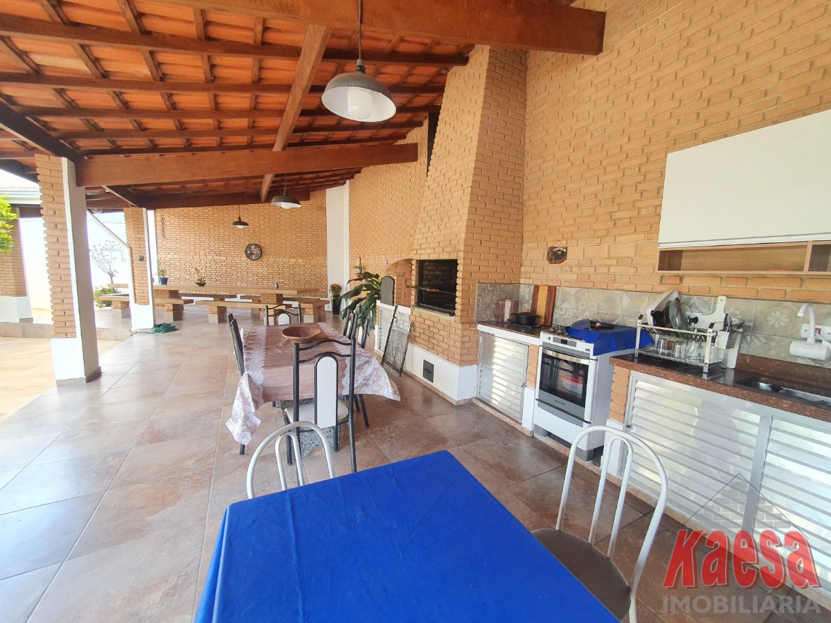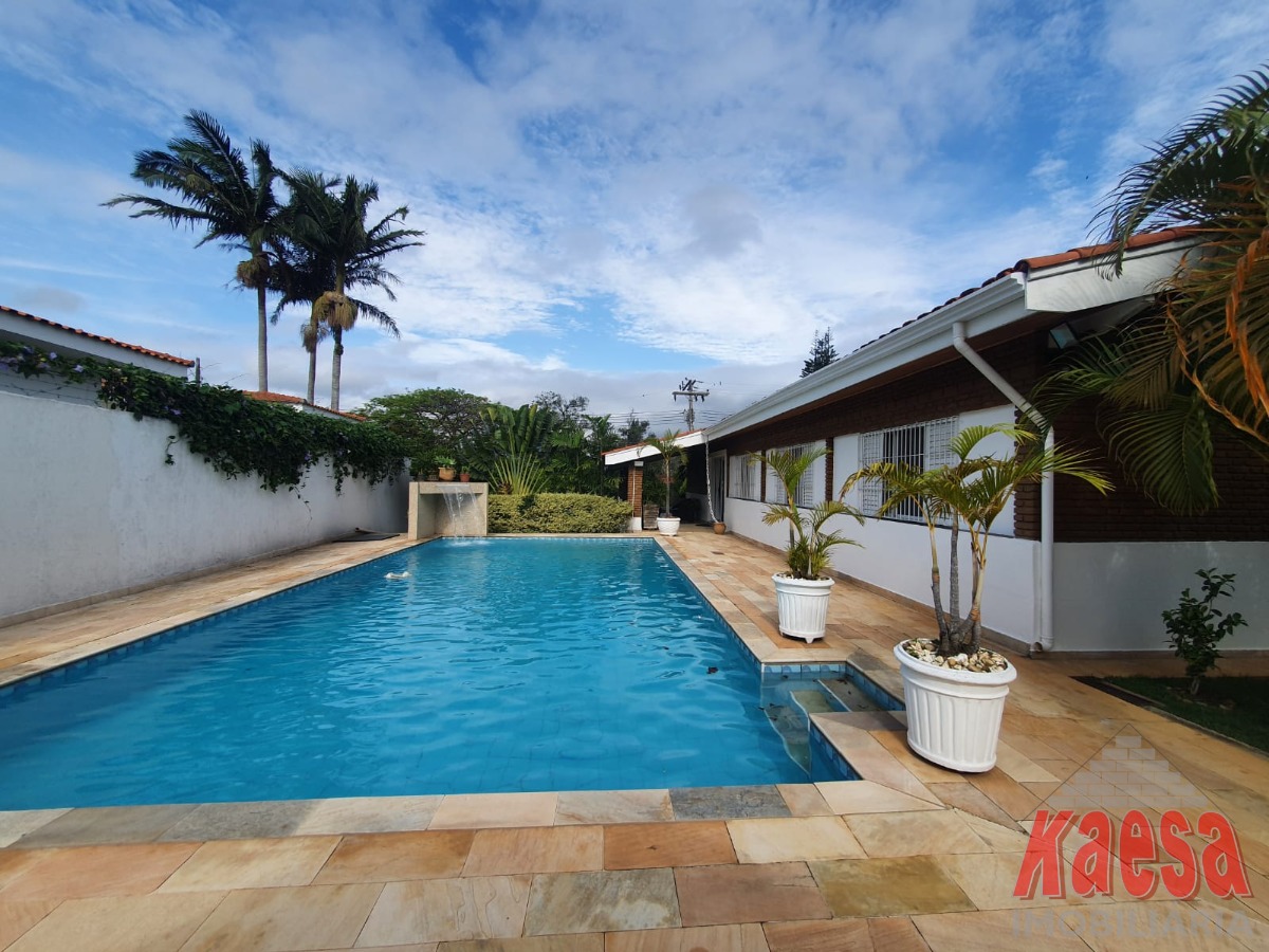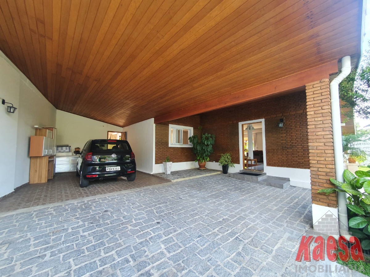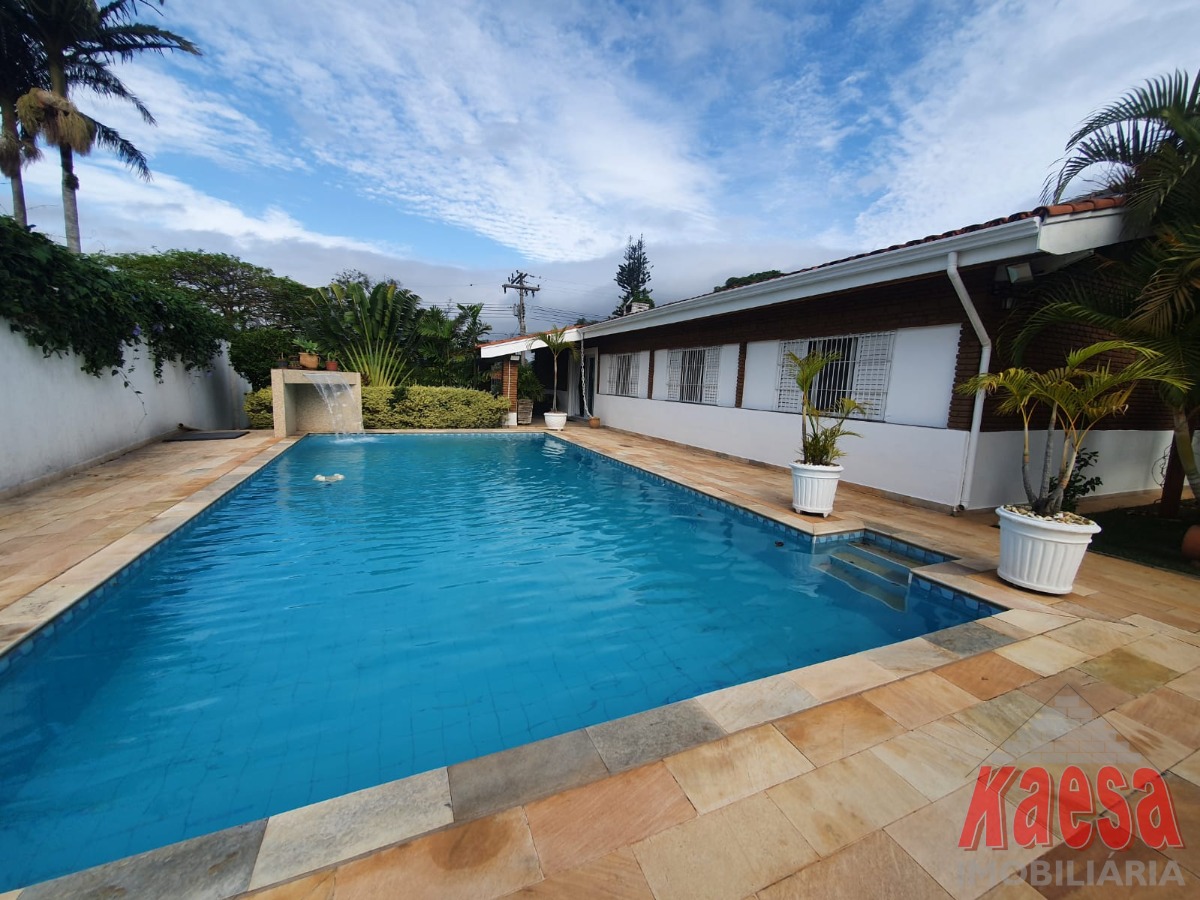 Na área externa, o lazer é completo: piscina com cascata, espaço gourmet amplo com churrasqueira e forno a lenha, perfeito para receber amigos e familiares. O imóvel ainda dispõe de edícula com suíte e vestiário, quarto de ferramentas, despensa, quarto de empregada, garagem para até 5 carros, além de jardim e pomar, que reforçam o verdadeiro clima de chácara.