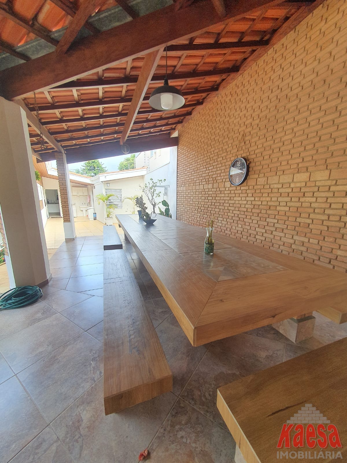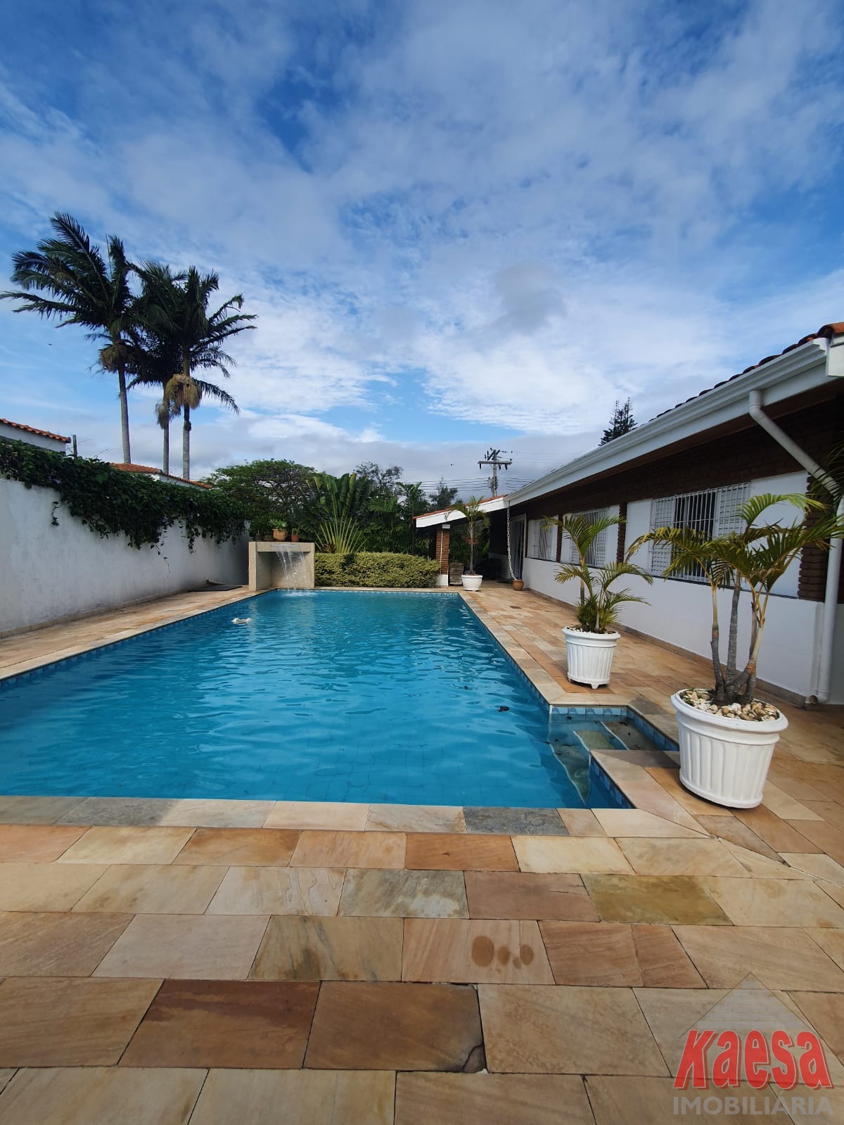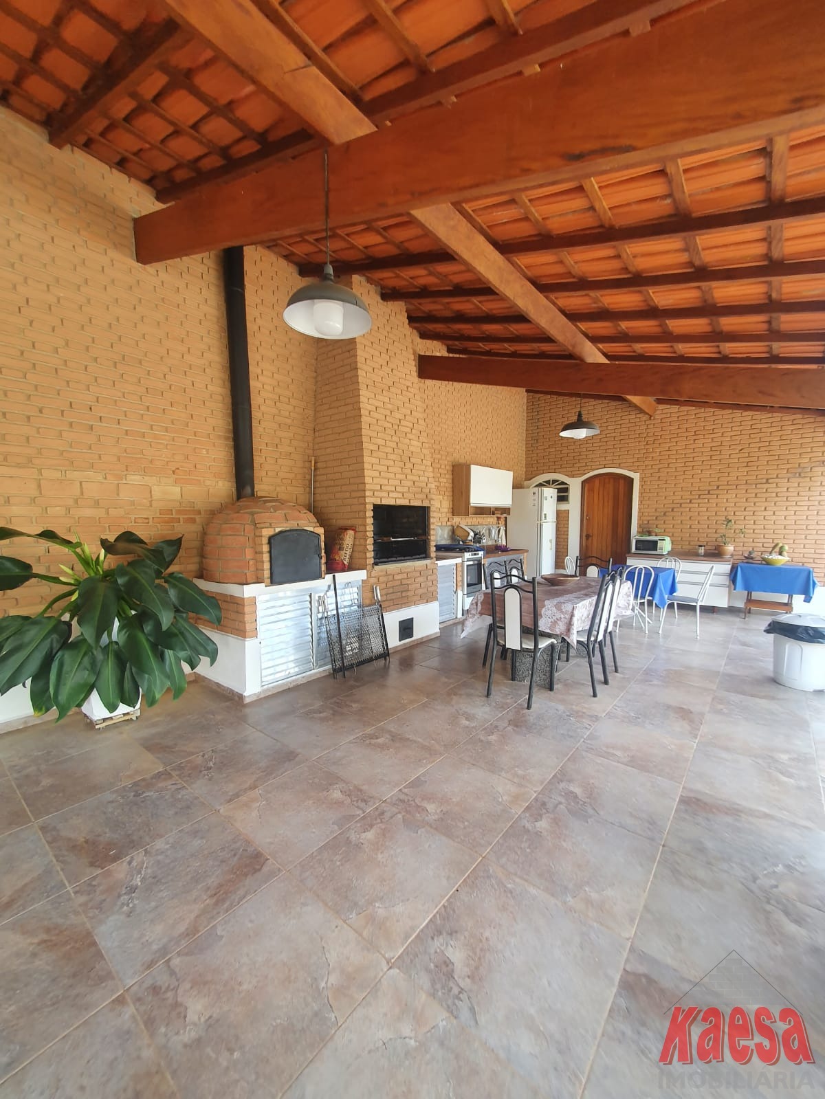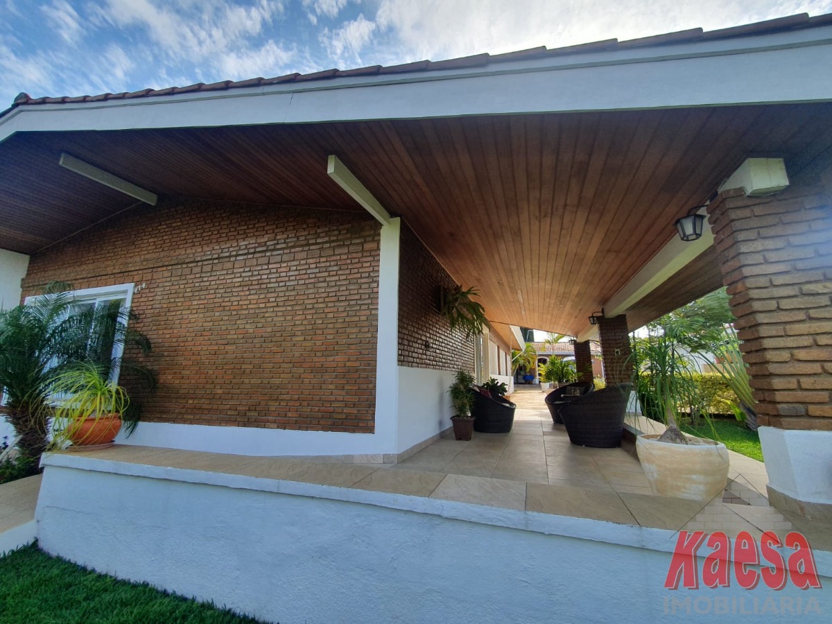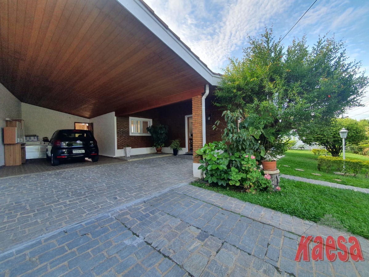 Na área externa, o lazer é completo: piscina com cascata, espaço gourmet amplo com churrasqueira e forno a lenha, perfeito para receber amigos e familiares. O imóvel ainda dispõe de edícula com suíte e vestiário, quarto de ferramentas, despensa, quarto de empregada, garagem para até 5 carros, além de jardim e pomar, que reforçam o verdadeiro clima de chácara.