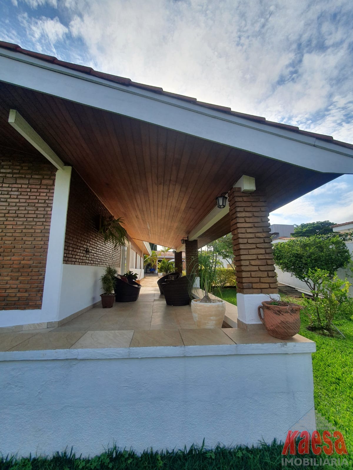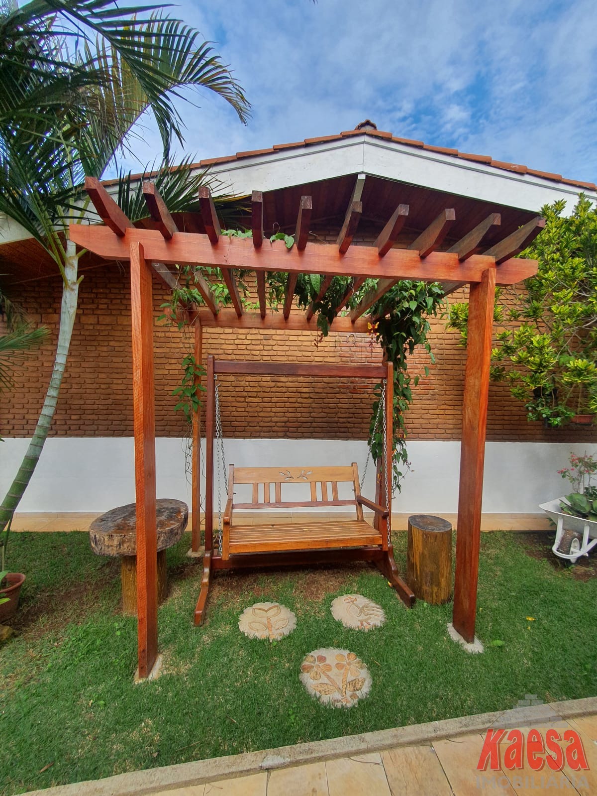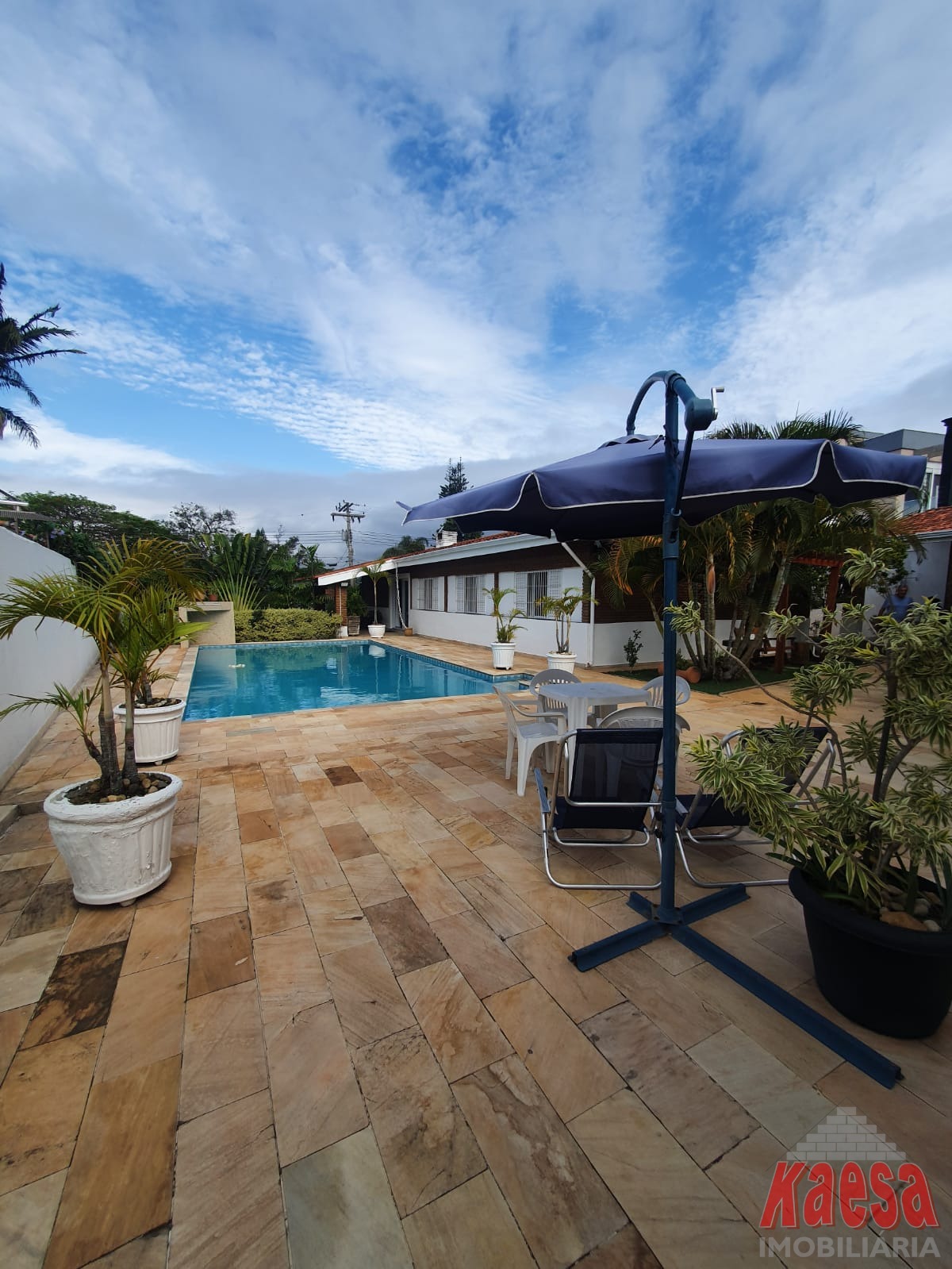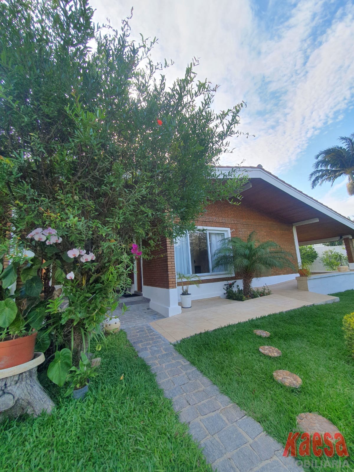Na área externa, o lazer é completo: piscina com cascata, espaço gourmet amplo com churrasqueira e forno a lenha, perfeito para receber amigos e familiares. O imóvel ainda dispõe de edícula com suíte e vestiário, quarto de ferramentas, despensa, quarto de empregada, garagem para até 5 carros, além de jardim e pomar, que reforçam o verdadeiro clima de chácara.