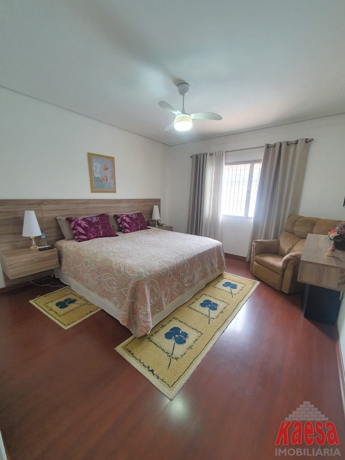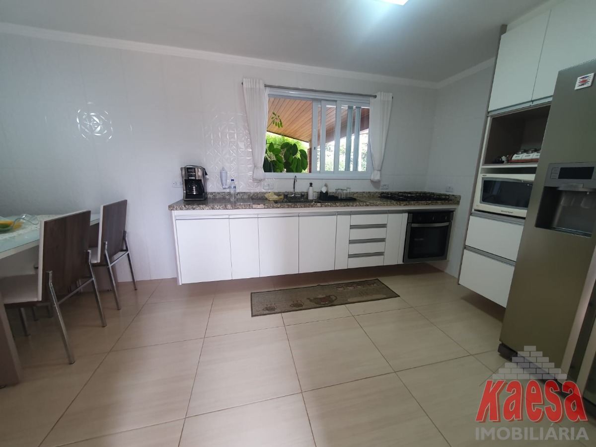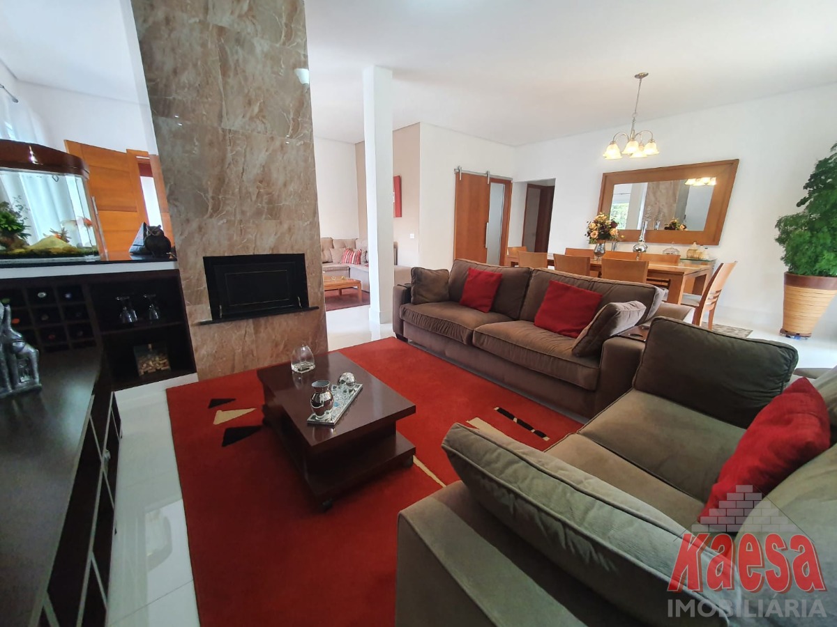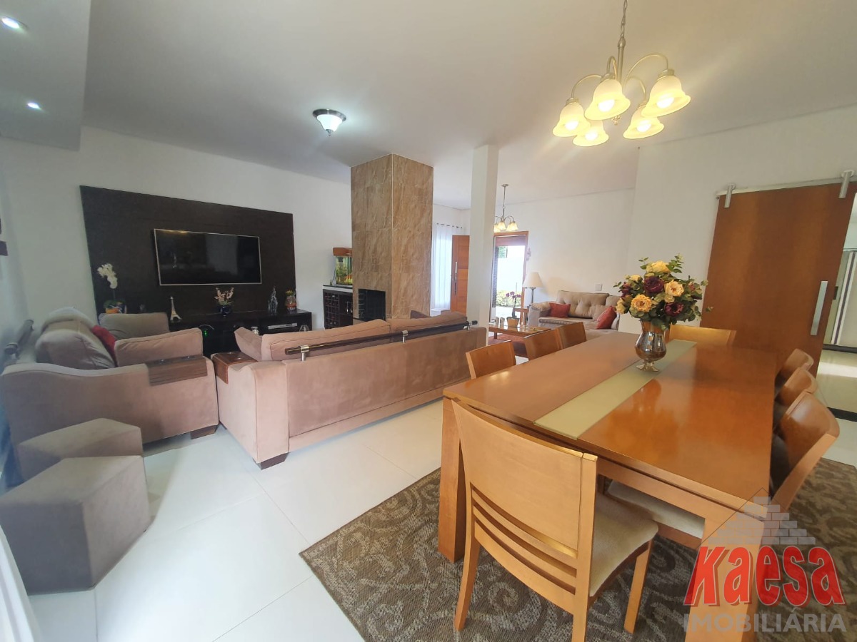 A residência conta com 4 dormitórios, sendo 1 suíte com closet, além de banheiro social e lavabo. A sala com três ambientes e lareira proporciona charme e aconchego, ideal para momentos especiais em família. A cozinha planejada alia funcionalidade e bom gosto.