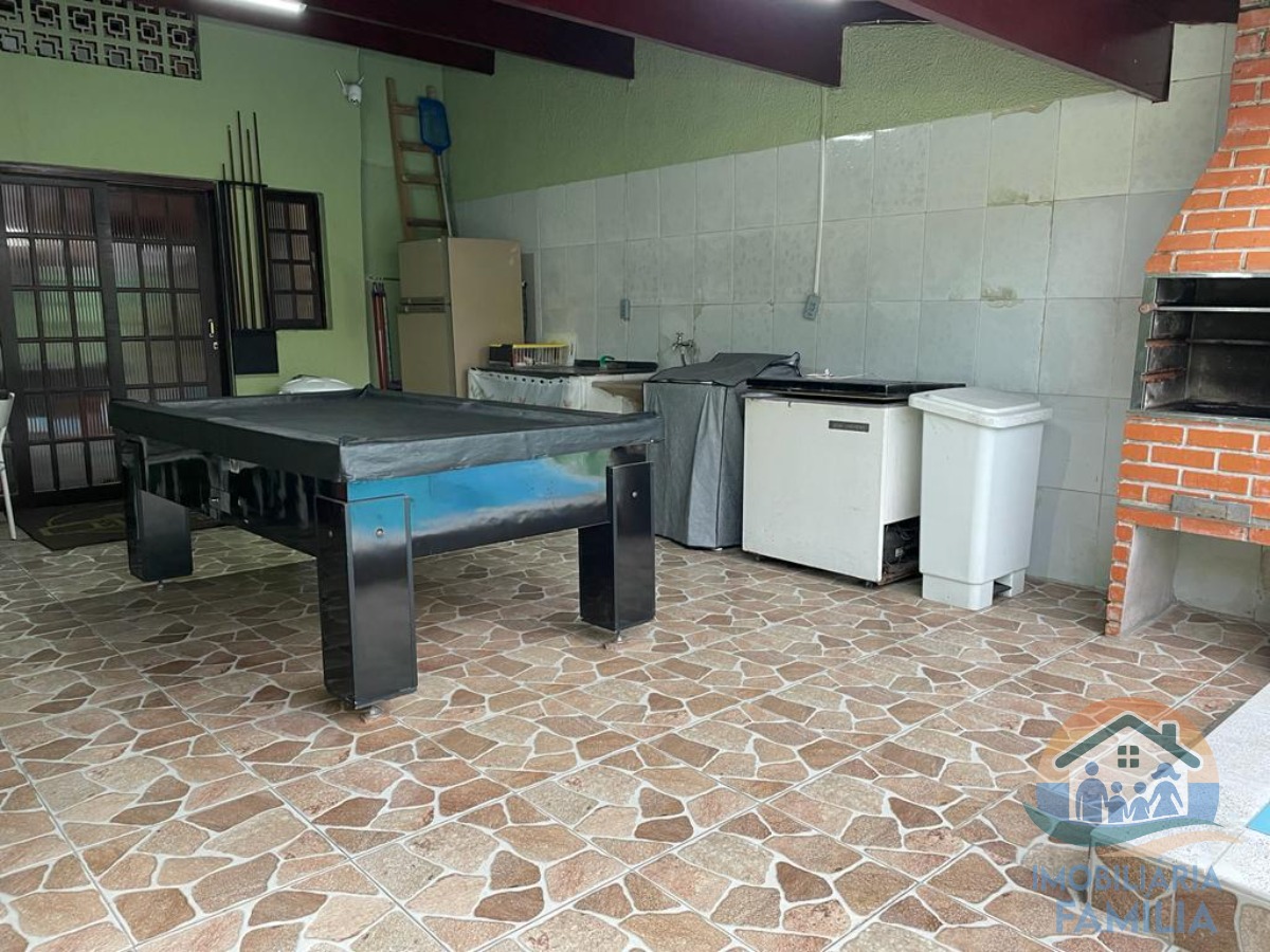 Contendo dois dormitórios amplos (1 suíte) , sala de estar integrada com a de jantar, cozinha, três wc, área de serviços, três vagas de garagem, além de amplo quintal com mesa de bilhar e área gourmet com churrasqueira.