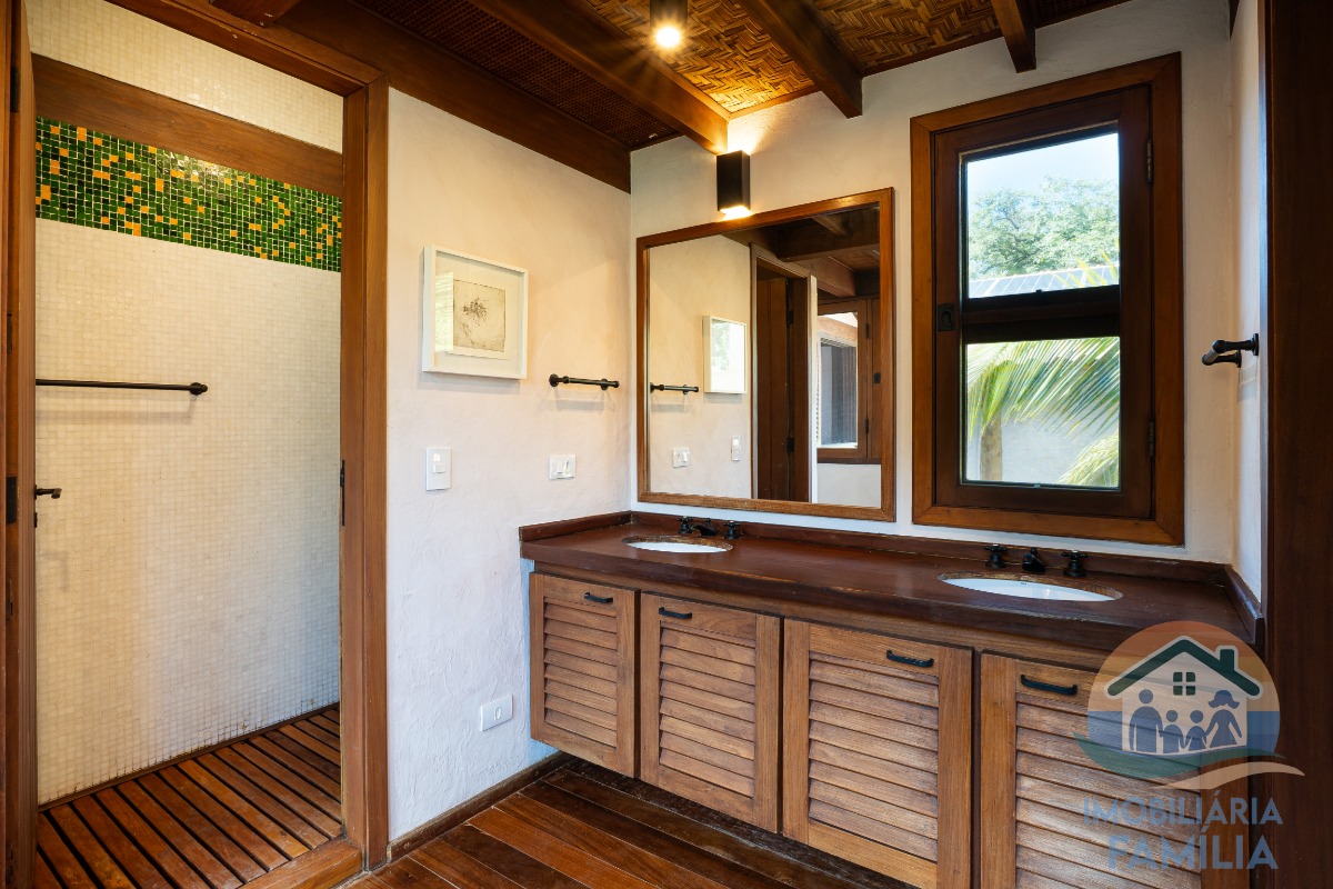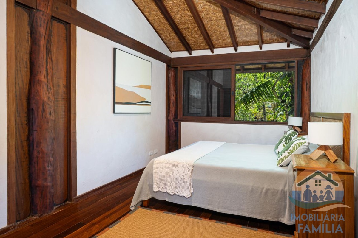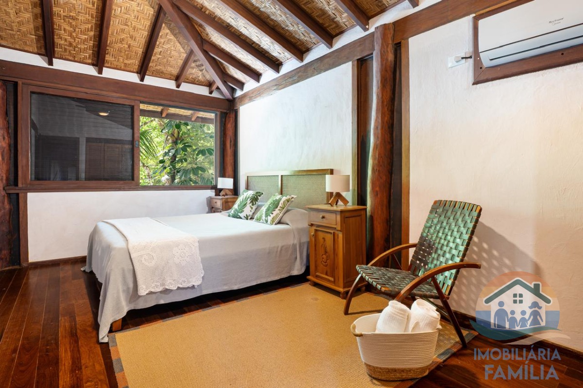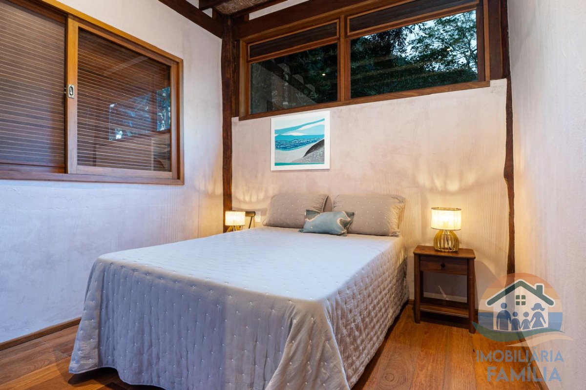 Lindíssima casa frente ao mar na maravilhosa praia de Toque Toque Grande um verdadeiro paraíso. Há casa projetada pelo arquiteto paulista Marcos Acayaba, responsável pela arquitetura sustentável orgânica, prezando pela preservação e bem estar, tem estrutura e sustentação suspensa em majestosos pilares de aroeira, proporcionando uma ventilação natural em toda a casa. As portas e janelas são de Ipê. A integração da piscina com a vista para o mar e o deck, além da imersão no ambiente natural da mata atlântica, fazem deste imóvel algo único.