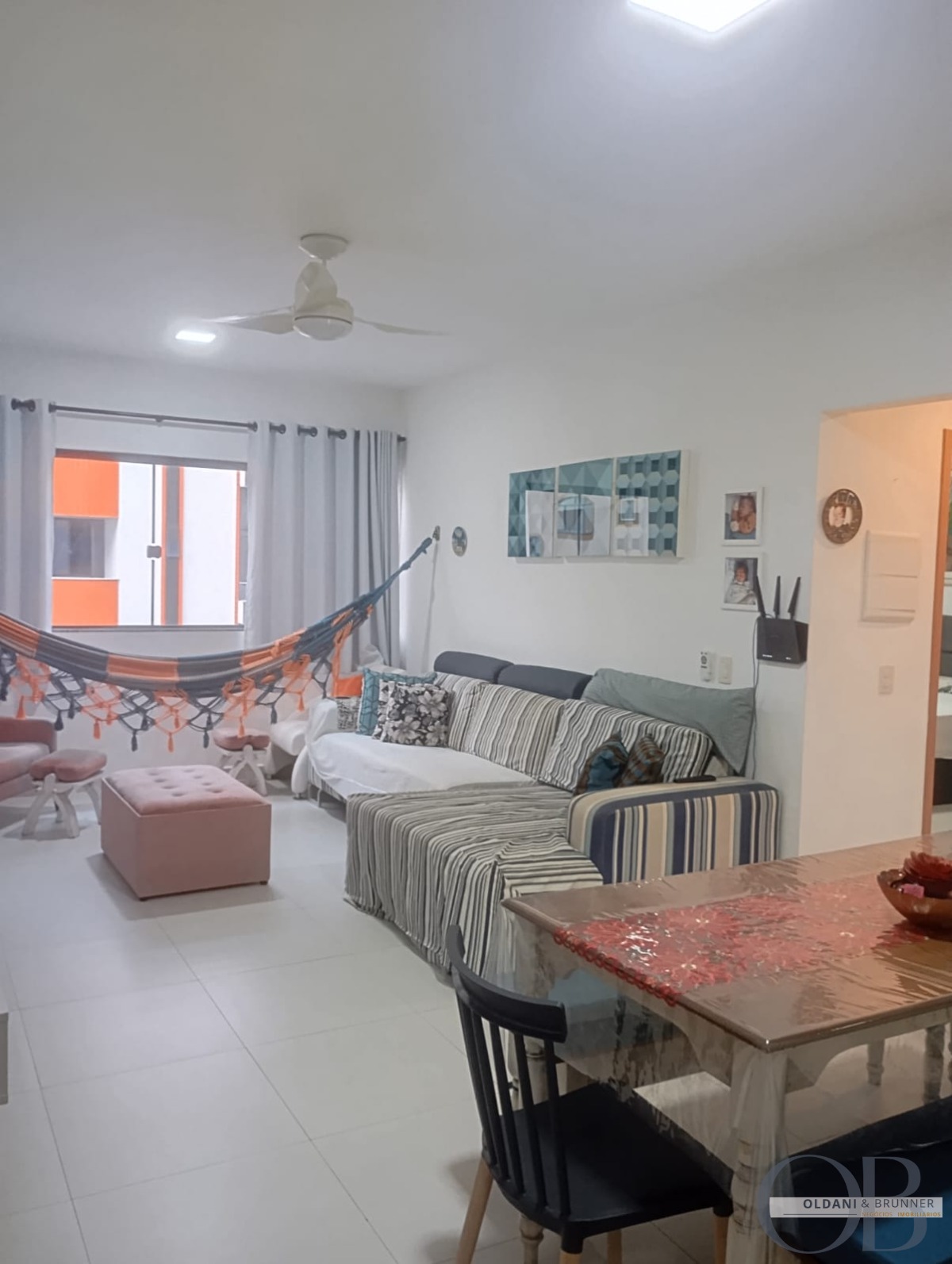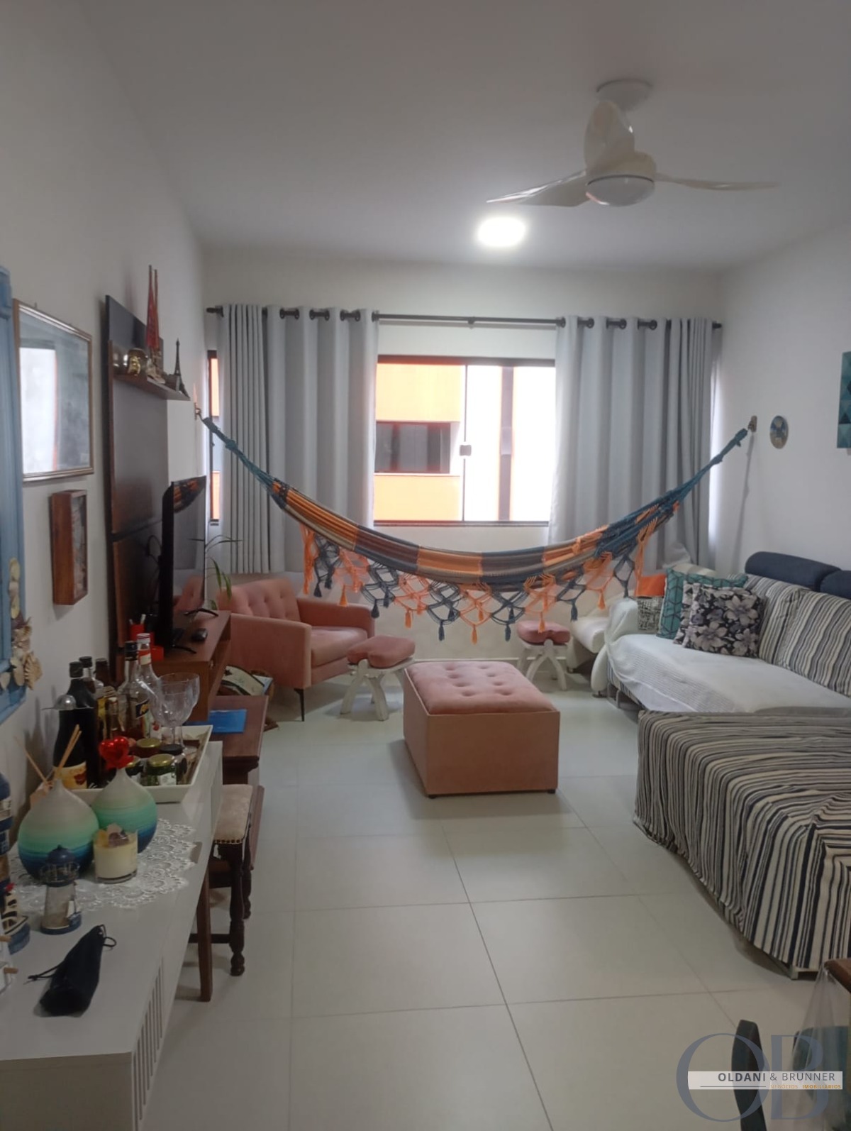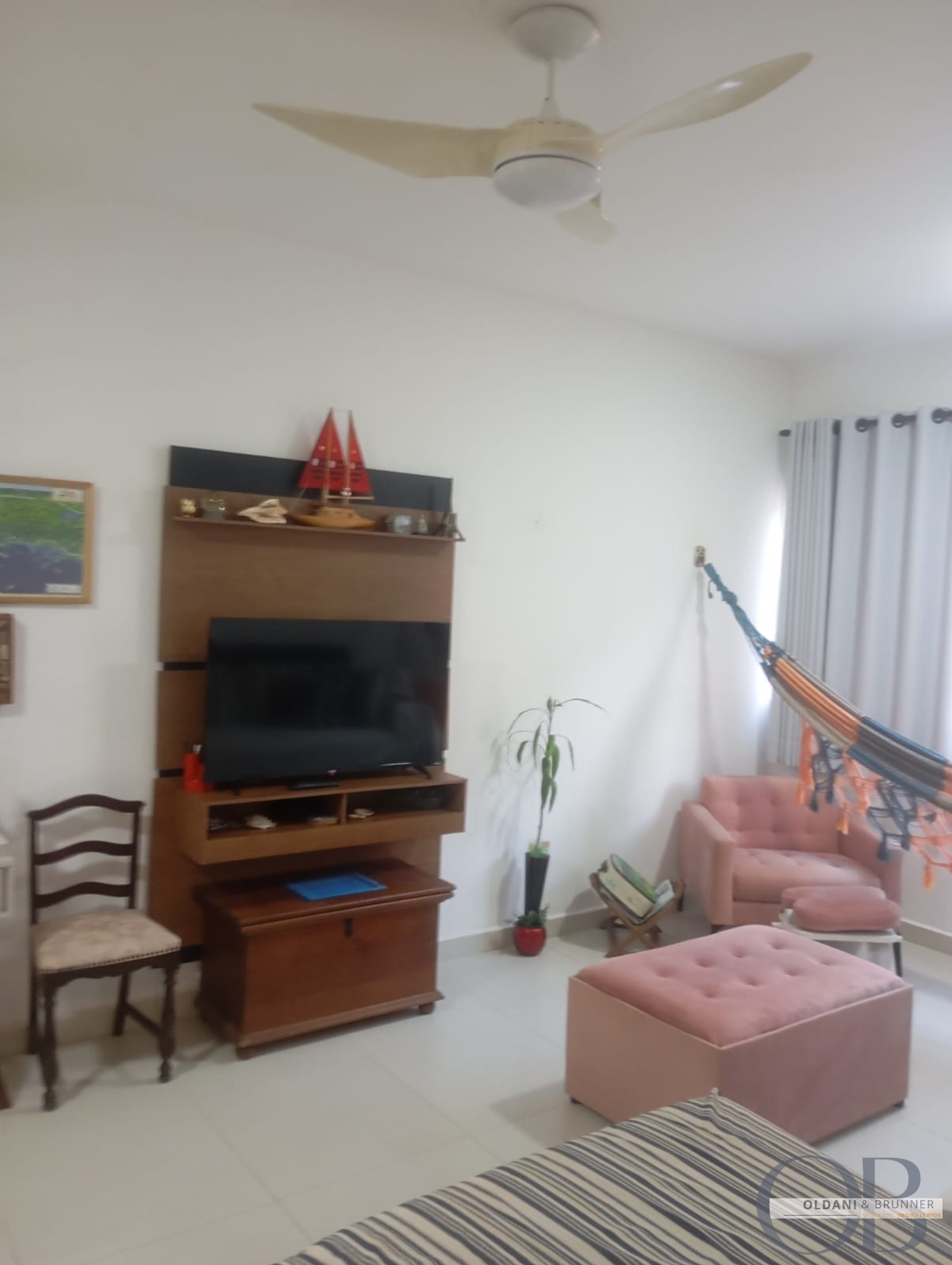 Sala aconchegante com ventilador de teto