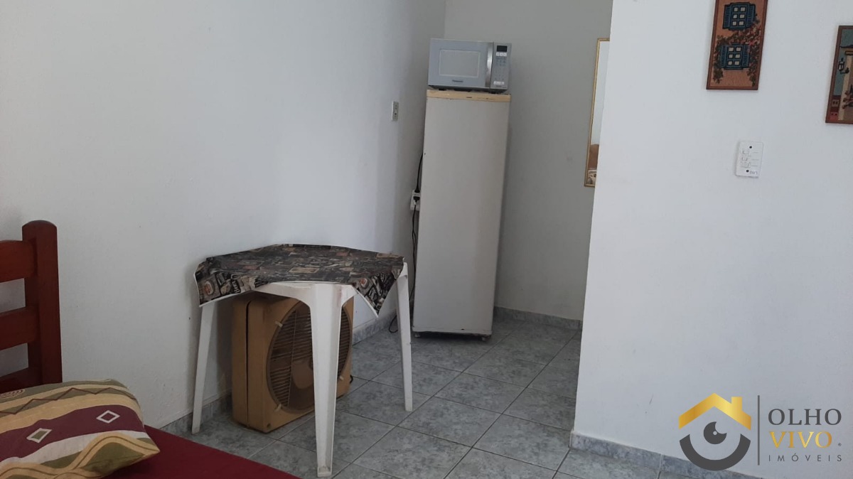 Kitnet no pavimento superior com 2 quartos, 1 banheiro, sala e cozinha integradas, além de varanda