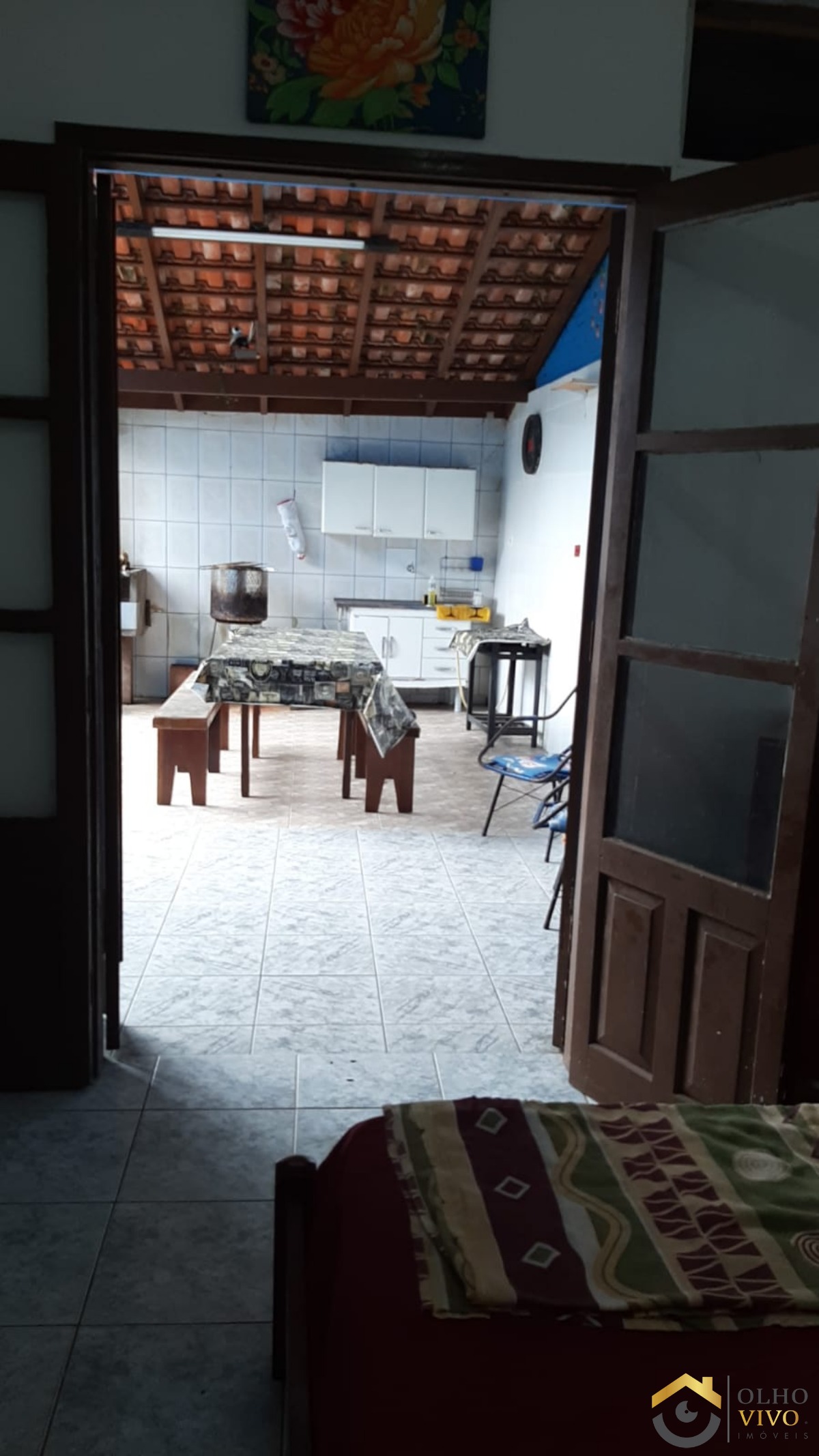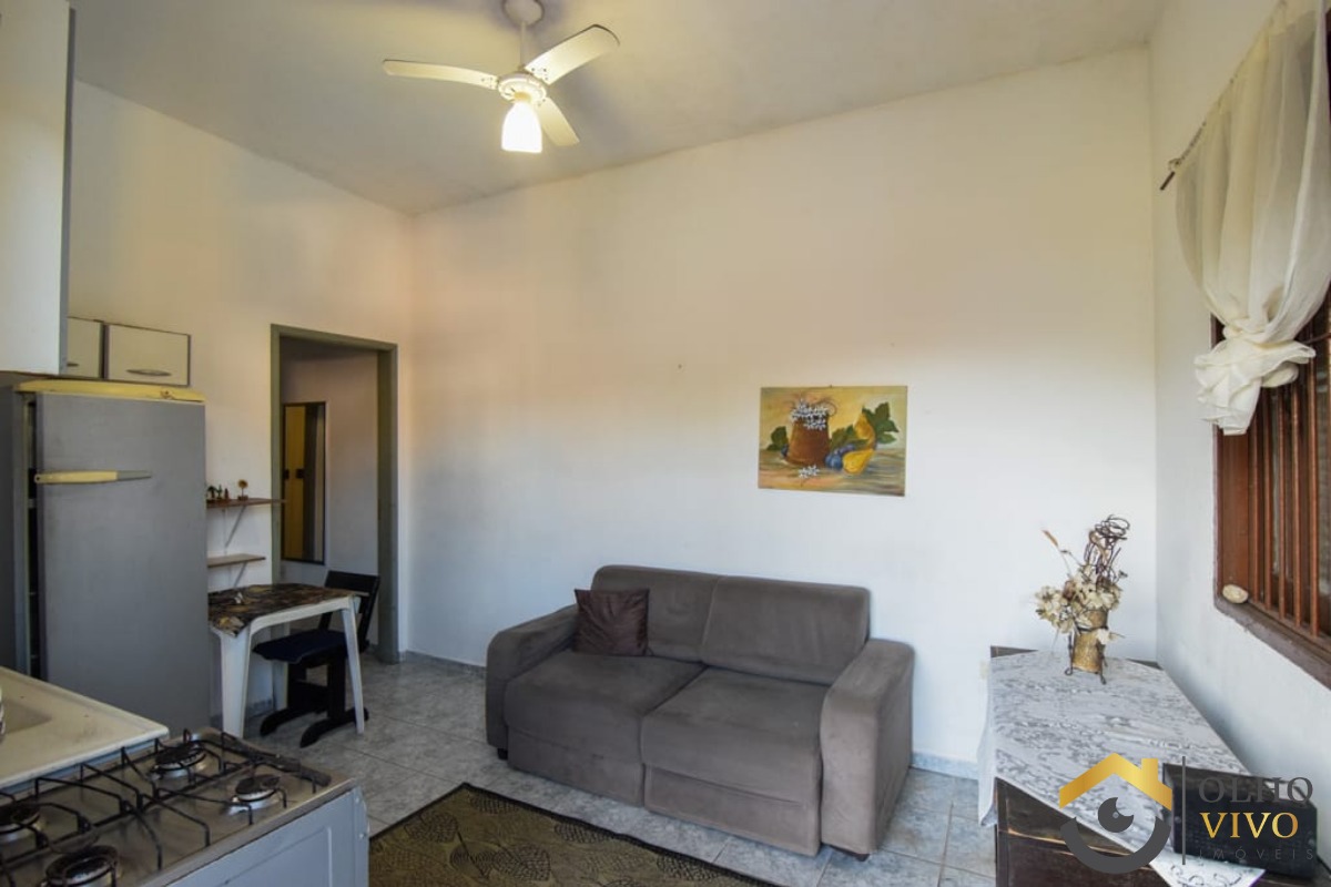 Casa principal com 3 quartos (1 suíte), sala de visitas, sala de jantar e TV conjugadas, cozinha e banheiro social